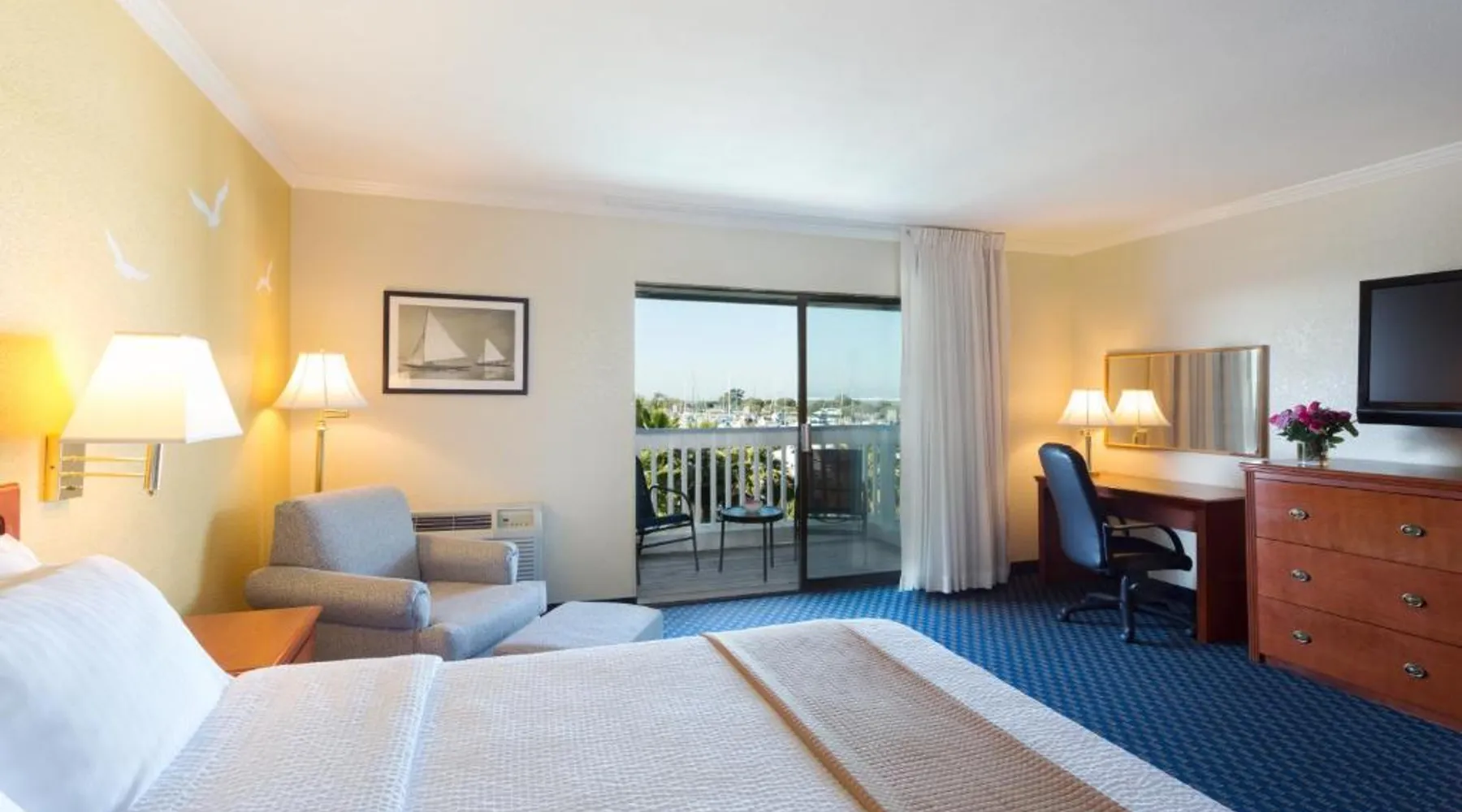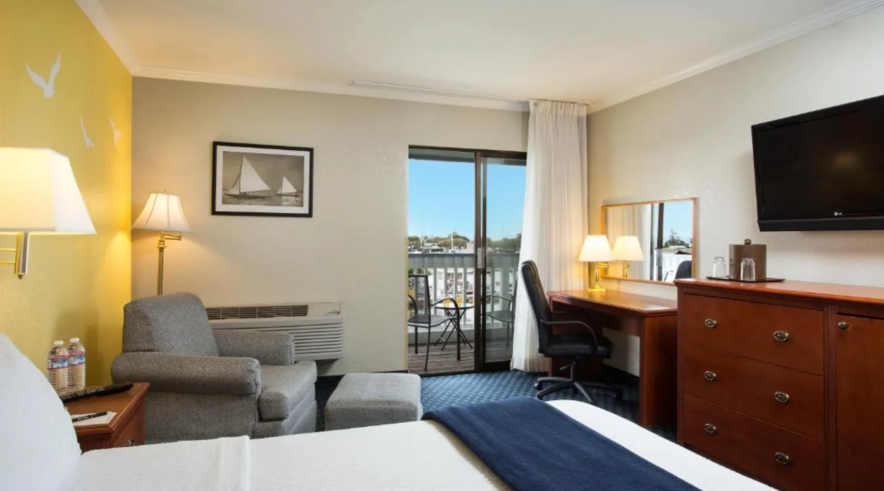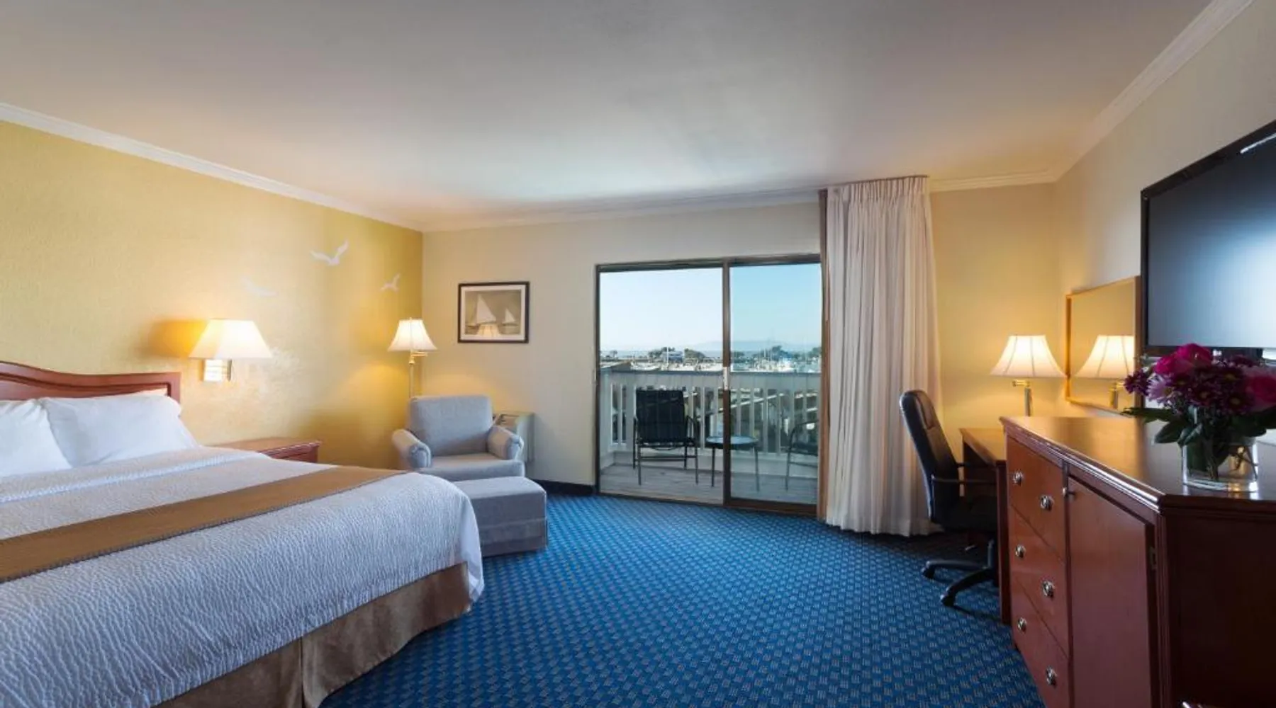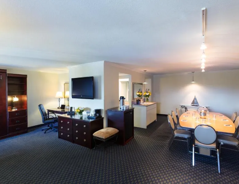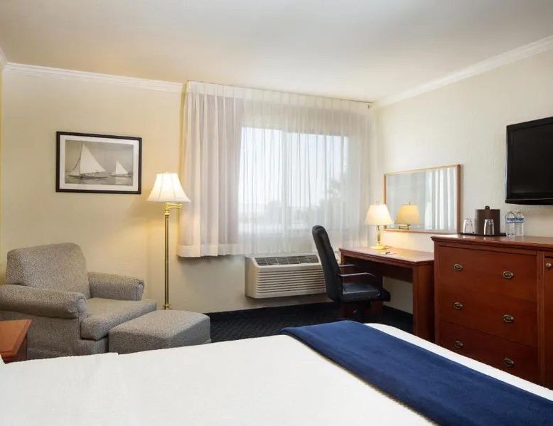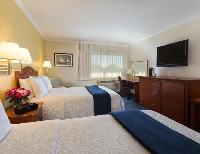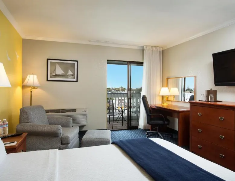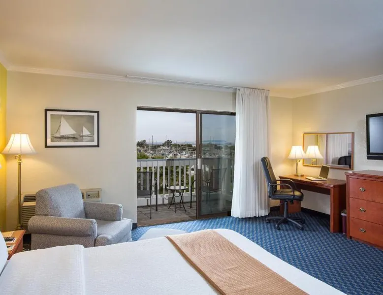 Located on the waterfront within the marina on San Francisco Bay, this San Leandro hotel offers an outdoor swimming pool and hot tub. Free WiFi access and a daily deluxe continental breakfast are included. A cable TV, microwave, and compact refrigerator are featured in each guest room at The Marina Inn on San Francisco Bay. An private bathroom with hairdryer is also provided. At The Marina Inn on San Francisco Bay you will find a fitness center and free bicycle rental. Other facilities offered at the property include meeting facilities, a children's playground and dry cleaning. An array of activities can be enjoyed on site or in the surroundings, including golfing and cycling. The Monarch Bay Golf Course is located directly across from the The Marina Inn on San Francisco Bay. San Francisco International Airport is 27 mi away. This room includes a flat-screen cable TV and a writing desk.