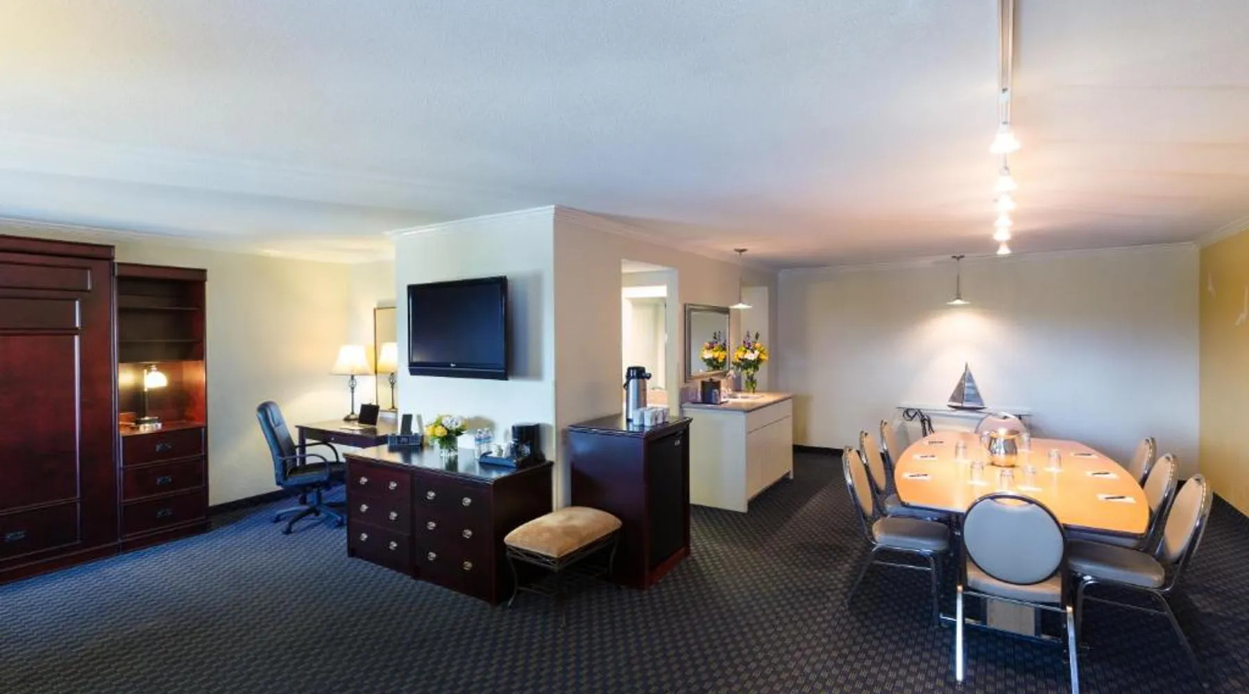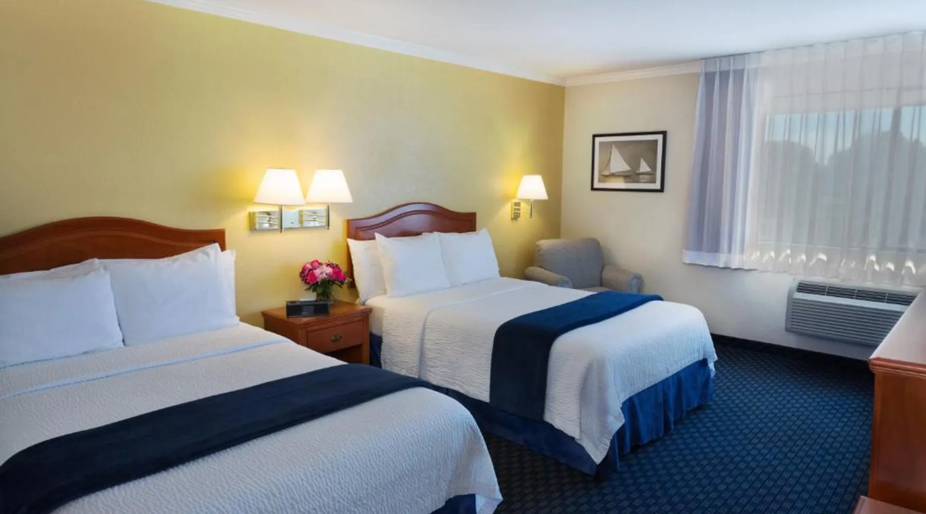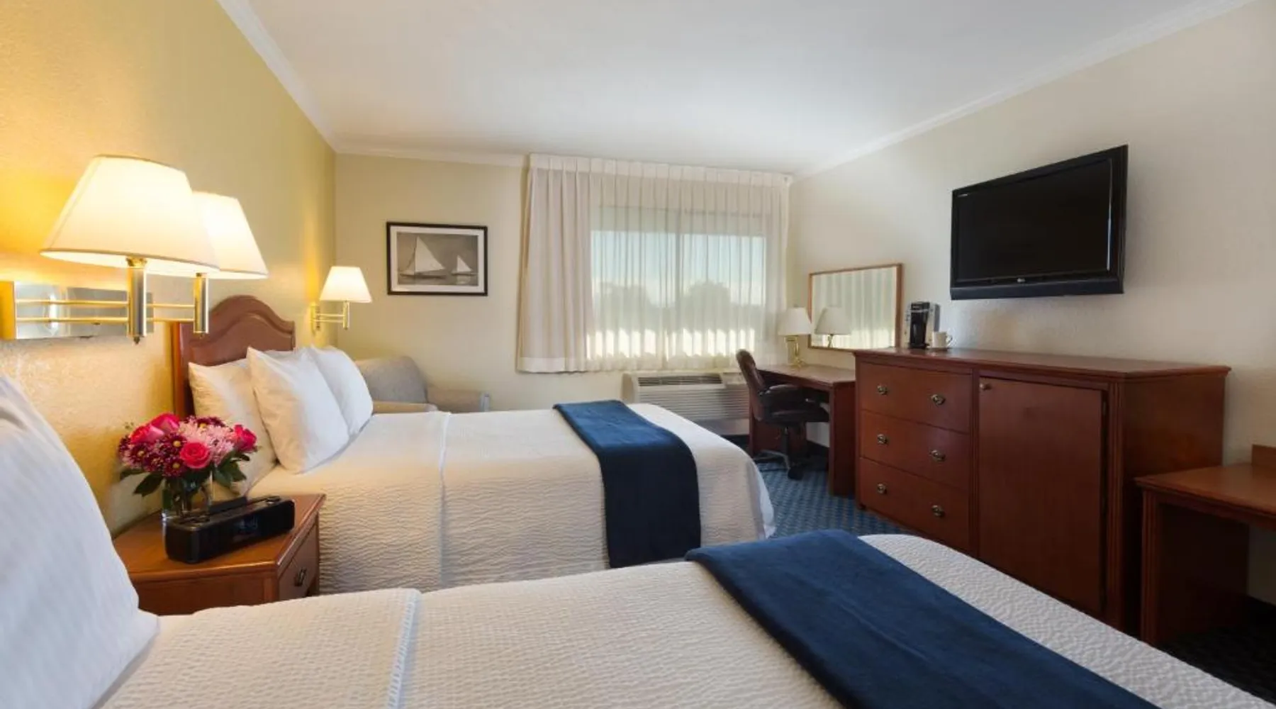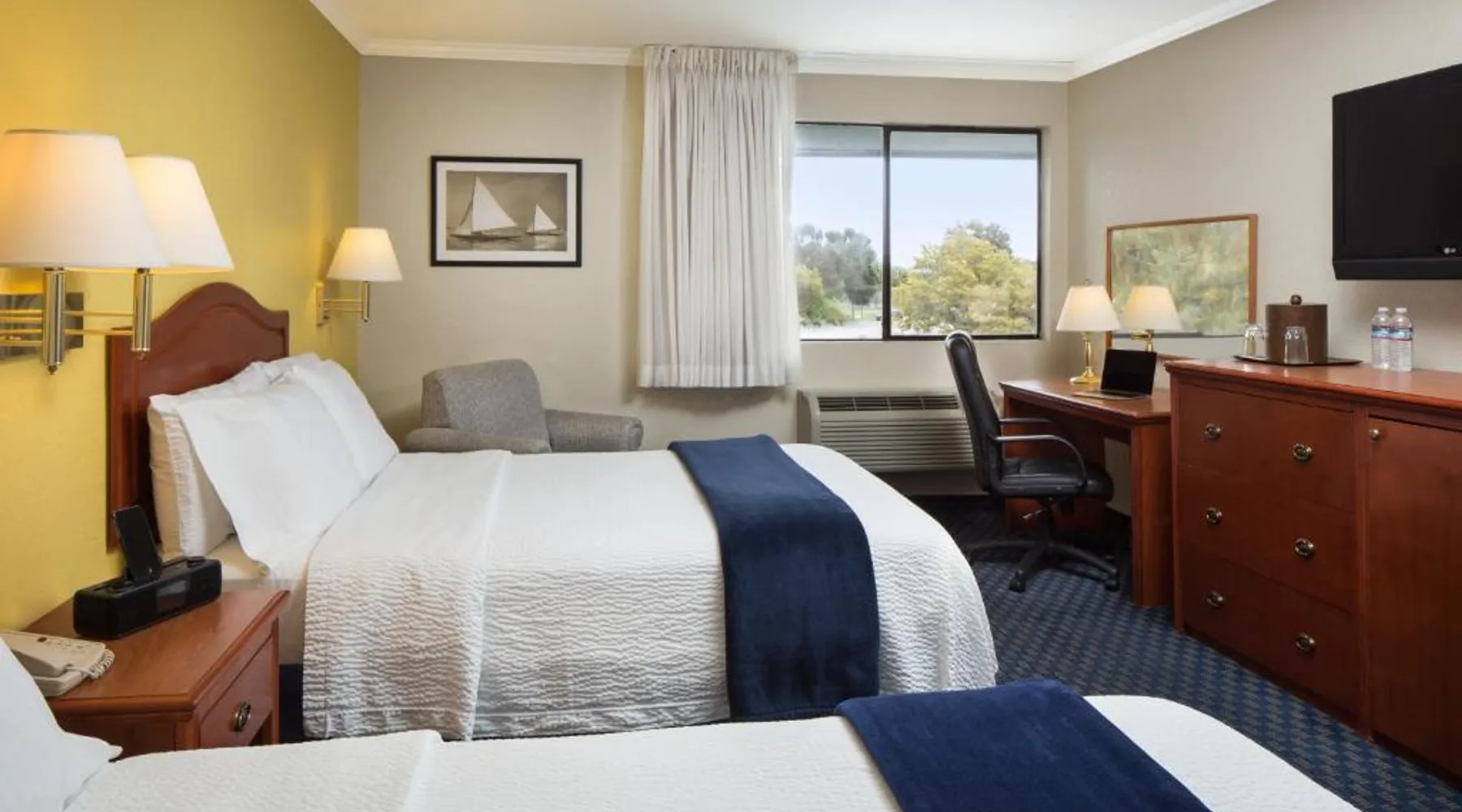 Located on the waterfront within the marina on San Francisco Bay, this San Leandro hotel offers an outdoor swimming pool and hot tub. Free WiFi access and a daily deluxe continental breakfast are included. A cable TV, microwave, and compact refrigerator are featured in each guest room at The Marina Inn on San Francisco Bay. An private bathroom with hairdryer is also provided. At The Marina Inn on San Francisco Bay you will find a fitness center and free bicycle rental. Other facilities offered at the property include meeting facilities, a children's playground and dry cleaning. An array of activities can be enjoyed on site or in the surroundings, including golfing and cycling. The Monarch Bay Golf Course is located directly across from the The Marina Inn on San Francisco Bay. San Francisco International Airport is 27 mi away. This room includes a flat-screen cable TV and a writing desk.