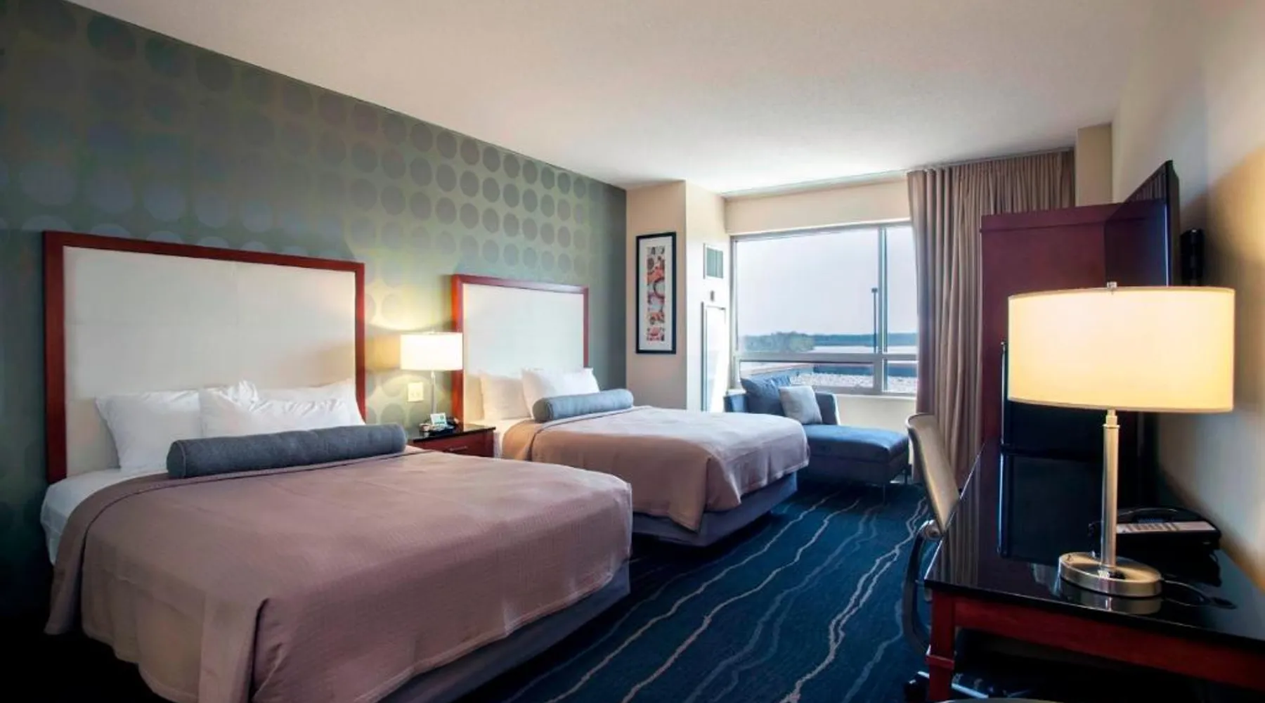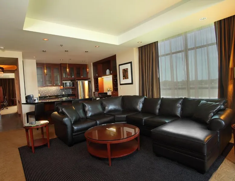 Comfortable Accommodations: Bally's Quad Cities Casino & Hotel in Rock Island offers comfortable rooms with air-conditioning, private bathrooms, and modern amenities. Each room includes a work desk, free toiletries, and a TV. Dining Experience: The modern restaurant serves brunch, lunch, and dinner with Chinese, American, Italian, Mexican, pizza, Seafood, Asian, and barbecue grill cuisines. Vegetarian, gluten-free, and dairy-free options are available. Leisure Facilities: Guests can enjoy a fitness center, indoor swimming pool, hot tub, and outdoor fireplace. The hotel also features a casino, bar, and outdoor seating area. Convenient Location: Located 5.6 mi from Quad City International Airport, the hotel is near attractions such as Black Hawk State Historic Site (5 mi) and Adler Theater (6.2 mi). Free on-site private parking is available. This suite's special features are the spa bath and the fireplace. The suite's kitchen, which features a refrigerator and a microwave, is available for cooking and storing food. The spacious suite provides air conditioning, a coffee machine, a balcony with lake views as well as a private bathroom featuring a walk-in shower. The unit offers 1 bed.