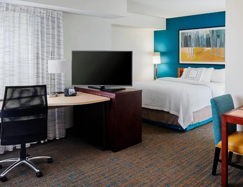 Comfortable Accommodations: Residence Inn Saint Louis Airport / Earth City in Earth City offers family rooms with air-conditioning, private bathrooms, and kitchenettes. Each room includes a work desk, seating area, and free on-site parking. Modern Amenities: Guests can enjoy amenities such as a refrigerator, microwave, dishwasher, and dining area. Additional features include a hairdryer, carpeted floors, and a dining area. Convenient Location: Located 8.7 mi from St. Louis Lambert International Airport, the hotel is near attractions like Hollywood Casino St. Louis (3.1 mi), St. Louis Gateway Arch (21 mi), and Forest Park (17 mi). Offering a cable TV and a separate living area, this studio includes a fully equipped kitchen.