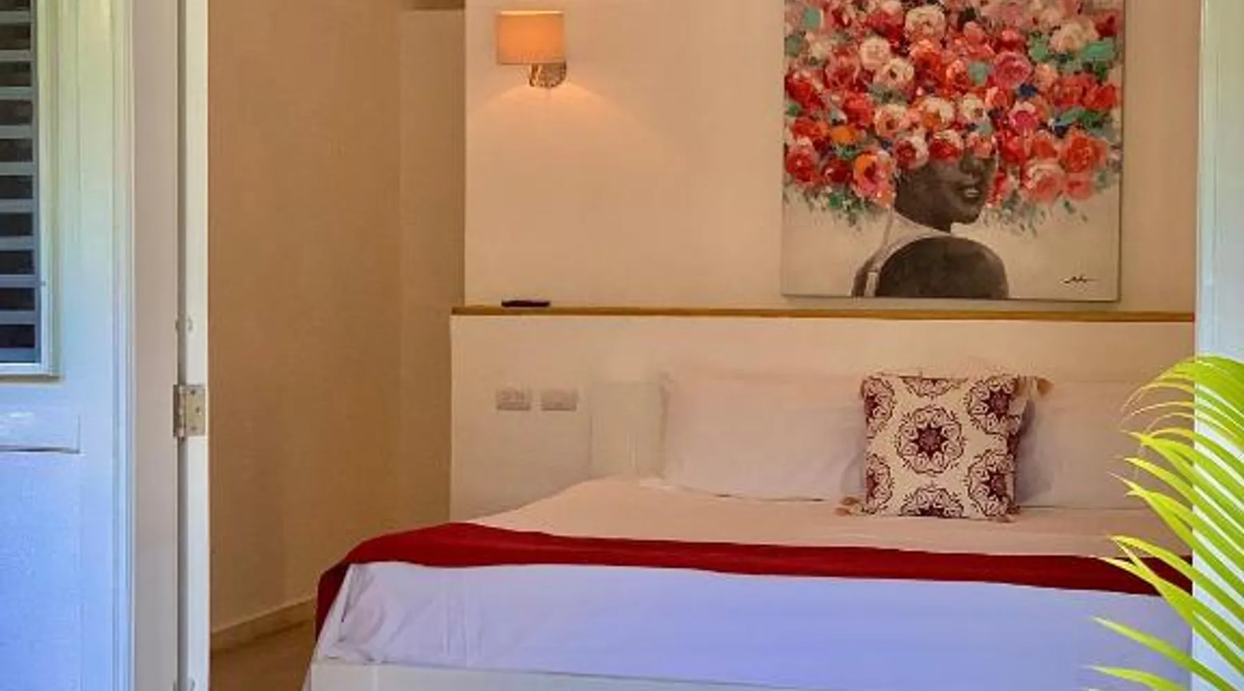Elegant Accommodations: Punta Popy Boutique Hotel in Las Terrenas offers an adults-only retreat with a lush garden, terrace, and open-air bath. Guests enjoy a year-round outdoor swimming pool, bar, and free WiFi throughout the property. Comfortable Amenities: Rooms feature air-conditioning, private bathrooms, and garden or pool views. Additional amenities include a mini-bar, coffee machine, and free toiletries. Free on-site private parking is available for guests. Dining Experience: A continental and à la carte breakfast is served daily, including warm dishes, juice, and fruits. Room service and breakfast in the room enhance the dining experience. Convenient Location: Located 20 mi from Samana El Catey International Airport, the hotel is a short walk from Punta Popy Beach and near Pueblo de los Pescadores. Scuba diving opportunities are available in the surrounding area. The spacious double room offers air conditioning, a mini-bar, a terrace with pool views as well as a private bathroom boasting a shower. The unit has 1 bed.