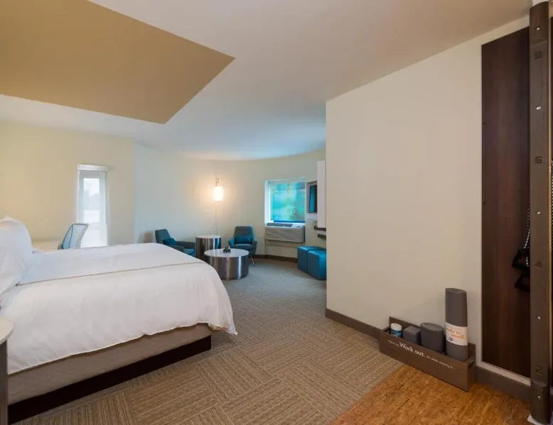 Balance Work with Life at EVEN Hotel Rockville-Washington D.C. Area Conveniently located near Washington D.C., Baltimore, Bethesda, Gaithersburg, and the Twinbrook Metro Station, EVEN Hotel Rockville-Washington D.C. Area makes getting to all the nearby excitement seamless. Start your day with a thrilling trip to Washington D.C .'s famous memorials, tour through the Smithsonian Museums to experience exotic, informative exhibits, or catch a stunning show at the John F. Kennedy Center for the Performing Arts. Stay productive with complimentary high-speed Wi-Fi and take full advantage of flexible workspaces that accommodate both sitting and standing. Business travelers will also have easy access to local businesses like Deloitte, GlaxoSmithKline and Kaiser Permanente, and the National Institute of Health. Continue your training for the Rock 'n' Roll D.C. Marathon by taking full advantage of our onsite fitness center, which is open 24/7 and features best-in-class equipment. Refuel with delicious, mindful, and fully customizable meals from our hotel's onsite restaurant,EVEN Kitchen & Bar. Lastly, rest easy at our wellness hotel in Rockville, Maryland featuring spacious and modern guest rooms with in-room fitness equipment. Our pet-friendly hotel offers a truly unique experience that makes it easier than ever to maintain a healthy routine when traveling. Featuring free toiletries, this double room includes a private bathroom with a bath or a shower and a hairdryer. The spacious air-conditioned double room features a flat-screen TV with cable channels, a tea and coffee maker, a wardrobe and tumble dryer. The unit has 1 bed.