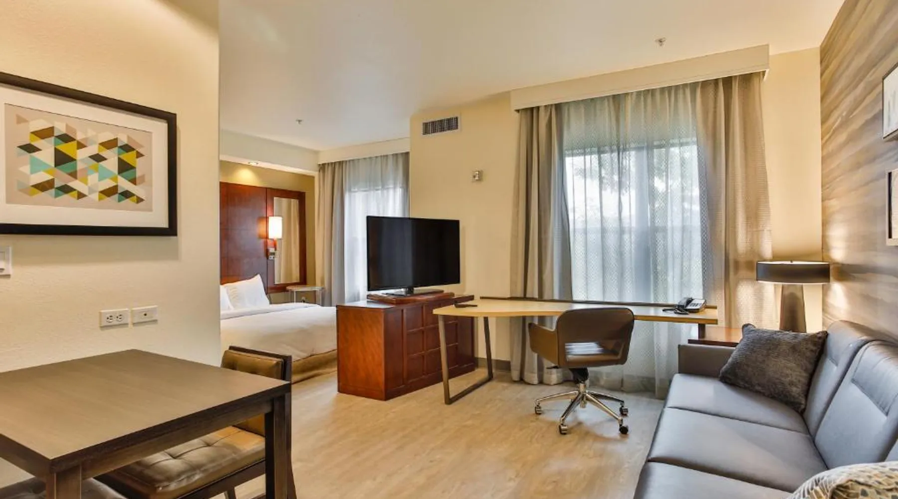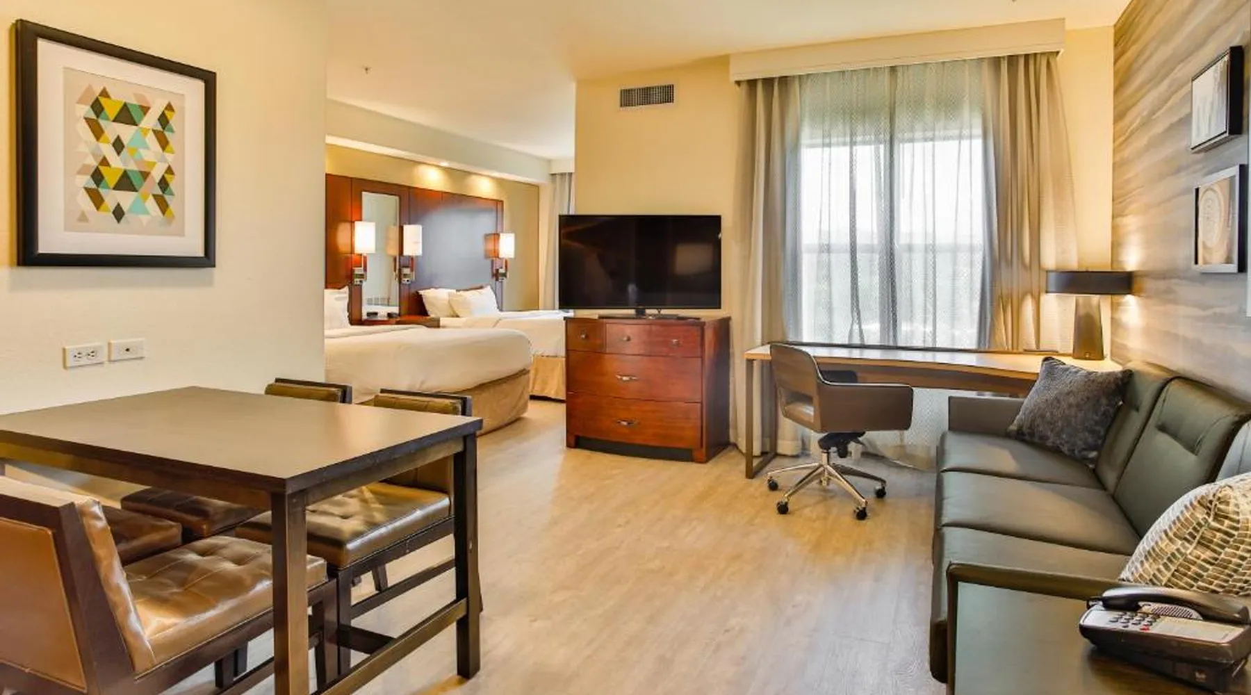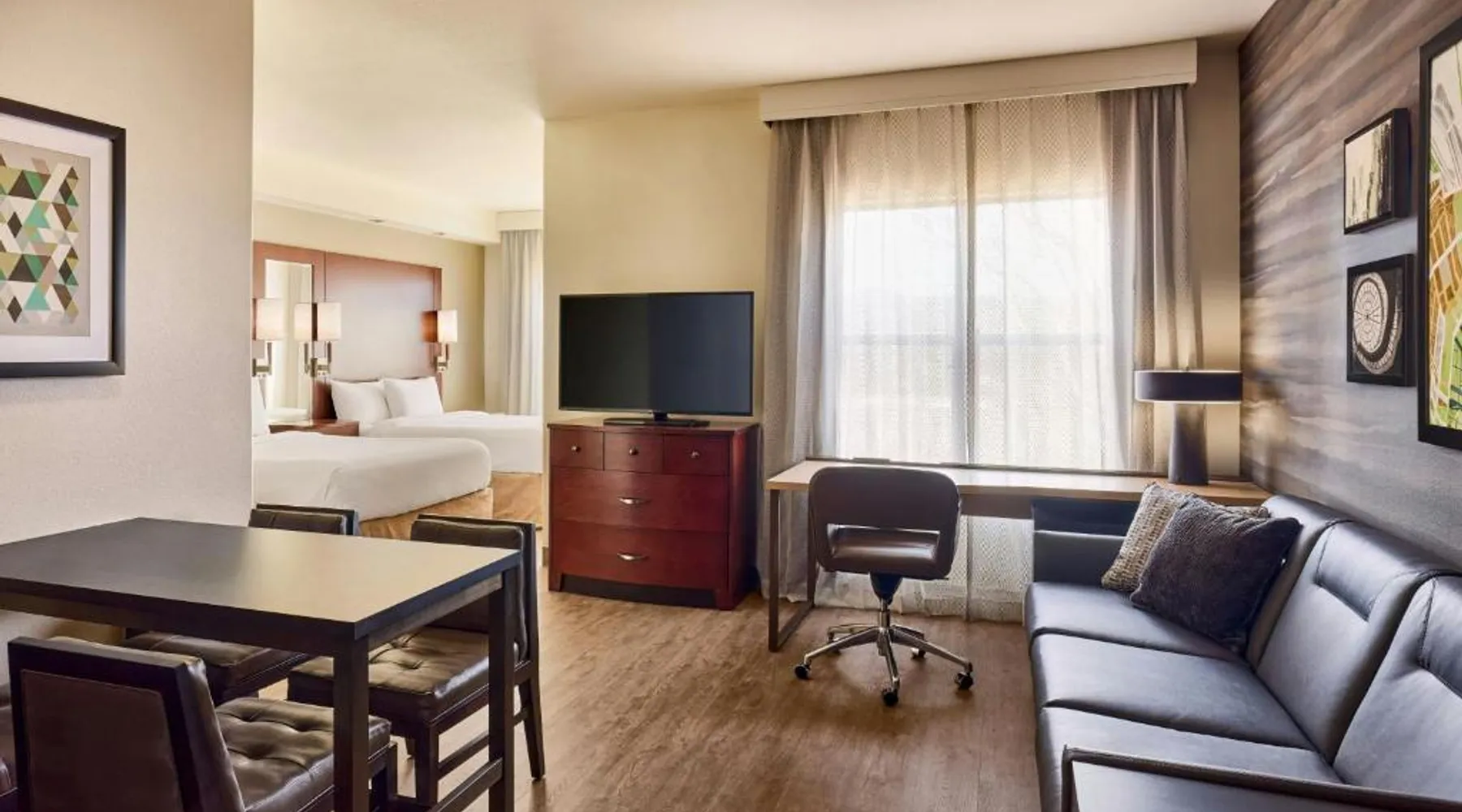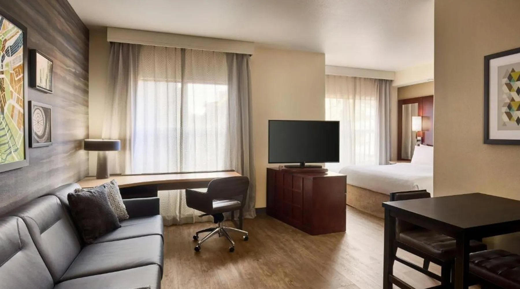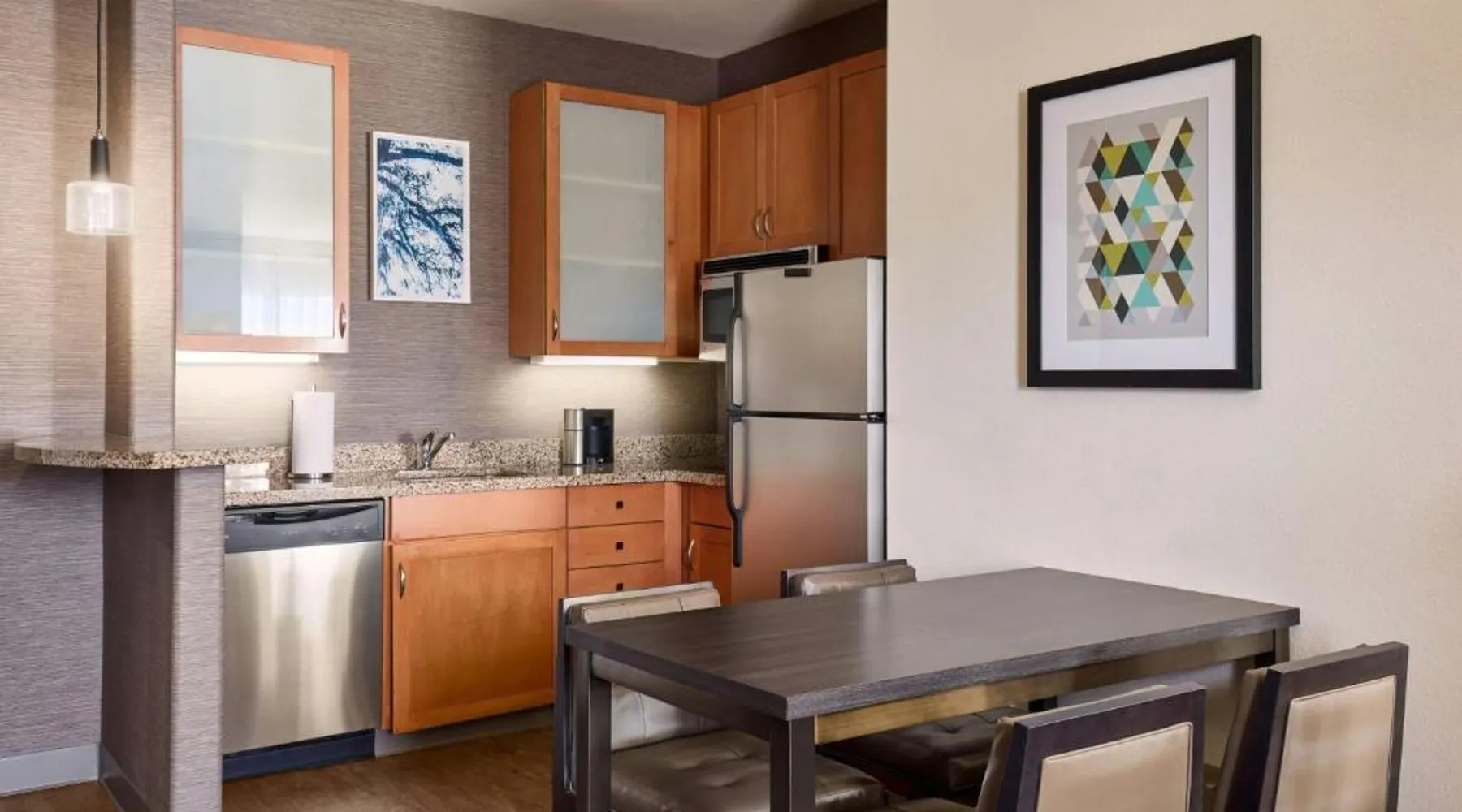 Comfortable Accommodations: Residence Inn Prescott in Prescott offers family rooms with private bathrooms, kitchenettes, and modern amenities. Each room includes air-conditioning, a work desk, and free WiFi. Leisure Facilities: Guests can enjoy a sun terrace, outdoor swimming pool, tennis court, and free bicycles. Additional amenities include a fitness room, hot tub, and outdoor fireplace. Dining Options: A continental and American breakfast is served daily, featuring warm dishes, fresh pastries, and a variety of beverages. Convenient Location: Located 9.3 mi from Ernest A Love Field and 5 mi from Prescott College, the hotel provides easy access to local attractions. Hiking enthusiasts will appreciate the nearby trails. The pool with a view and fireplace are the standout features of this double room. Featuring free toiletries, this double room includes a private bathroom with a bath, a shower and a hairdryer. The fully equipped kitchen has a stovetop, a refrigerator, a dishwasher and kitchenware. The spacious air-conditioned double room features a flat-screen TV with streaming services, soundproof walls, a tea and coffee maker, a seating area as well as pool views.