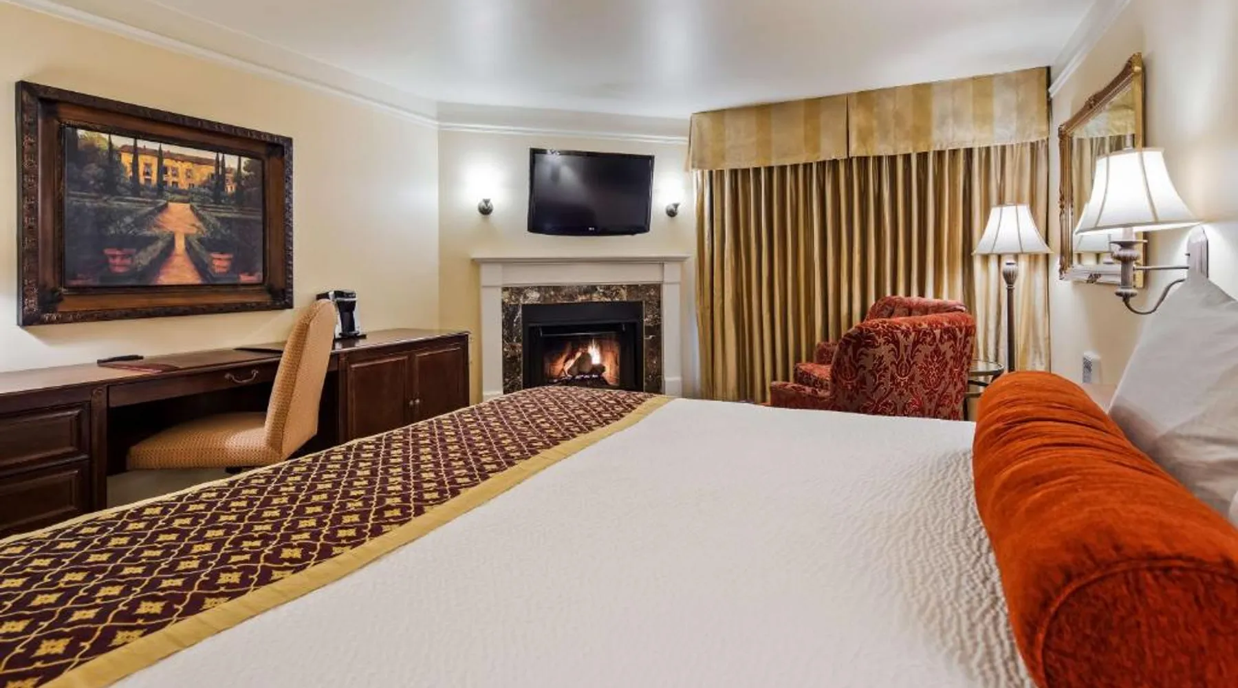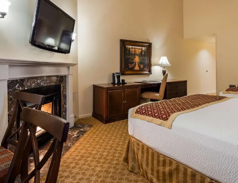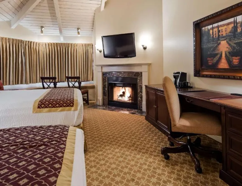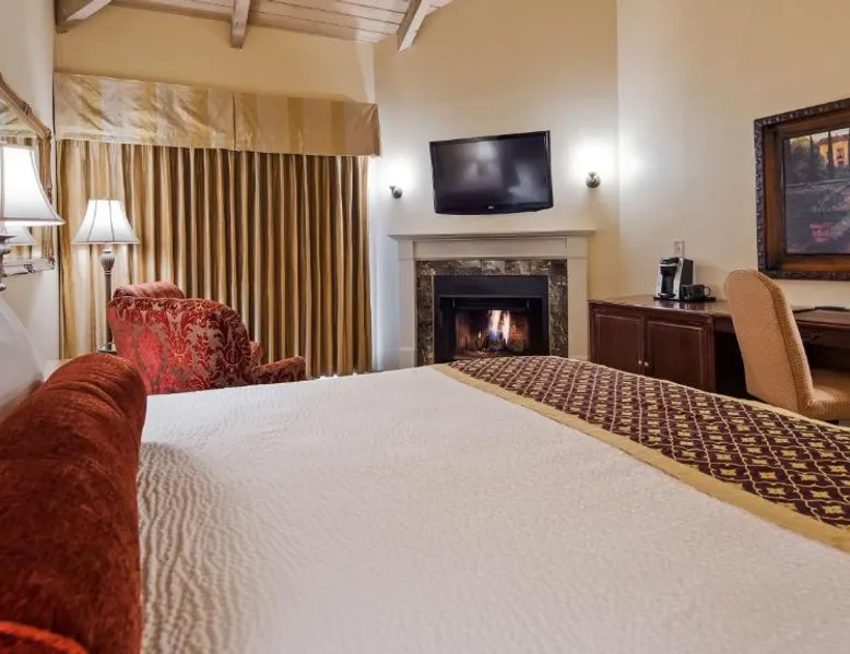 Combining elegant Victorian charm with many of today's modern conveniences, this hotel is ideally located in the heart of Cannery Row, within walking distance to Monterey Bay and many area attractions. Free WiFi is available throughout the property. Each room offers a fireplace, a flat-screen TV with cable channels, a seating area, a coffee machine, a refrigerator, a work desk, and a patio or balcony. The bathroom includes a hairdryer and free toiletries. Guests can enjoy a daily complimentary continental breakfast. Wine and Cheese hour is offered from 5 pm till 6 pm. The Monterey Bay Aquarium and San Carlos Beach are steps away from Victorian Inn. Mineta San José International Airport is 75 mi away. This double room has a fireplace.