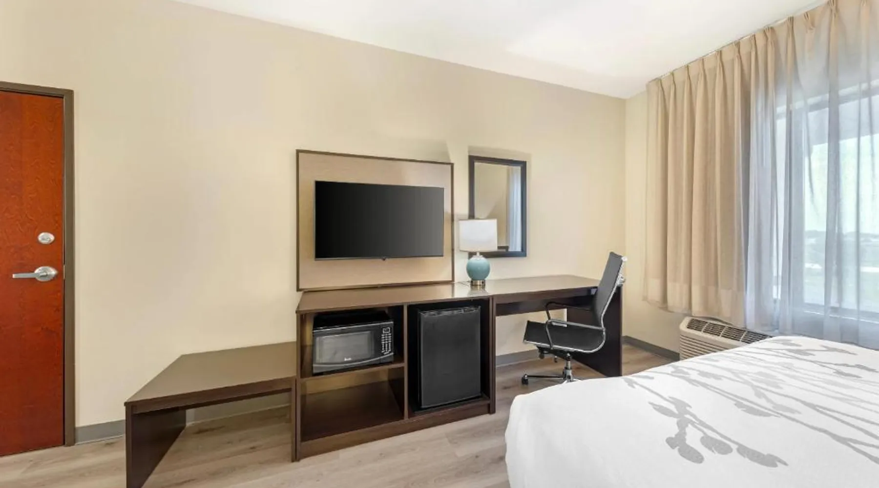 The Sleep Inn & Suites hotel is perfect for business and leisure travelers who want warm and inviting accommodations coupled with all the amenities of home. This hotel is located just off Interstate 35 and is just four miles from the University of Oklahoma. Additional points of interest nearby include:Will Rogers World Airport, Oklahoma Motorsports Complex, Thunder Valley Raceway Park, Little River Zoo and Thunderbird Casino. Free transportation is offered to the nearby Riverwind Casino. From lively entertainment venues to fascinating cultural events, the city of Norman features a variety of things to see and do. Several parks, golf courses, retailers and shopping centers are close by. There are many restaurants in the vicinity. Guests can enjoy hotel features like: Free Morning Medley Hot Breakfast featuring scrambled eggs, sausage patties, pastries, cereals, juice, coffee and much more, free newspaper, free wired and wireless high-speed Internet access, seasonal outdoor pool and exercise room open from 6 a.m. to 10 p.m. This hotel provides business travelers with conveniences like an on-site meeting room, and access to copy and fax service. Our front desk has basic toiletries available 24 hours a day for added guest convenience. Our well-appointed and spacious guest rooms are equipped with coffee makers with free coffee, microwaves, refrigerators, work desks, curved shower rods, hair dryers, 32-inch flat-screen televisions, irons, ironing boards, pillow-top mattresses and satellite television. This room features a TV with cable channels. A coffee machine, a microwave and a refrigerator are provided.