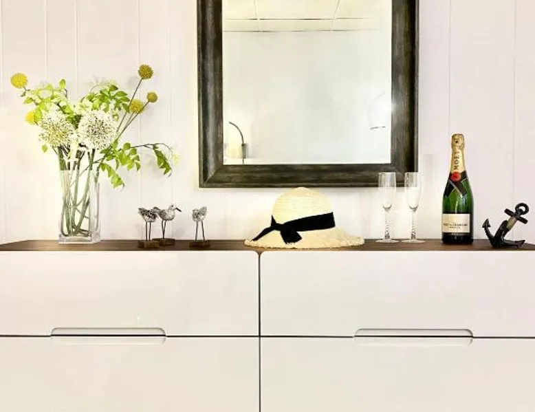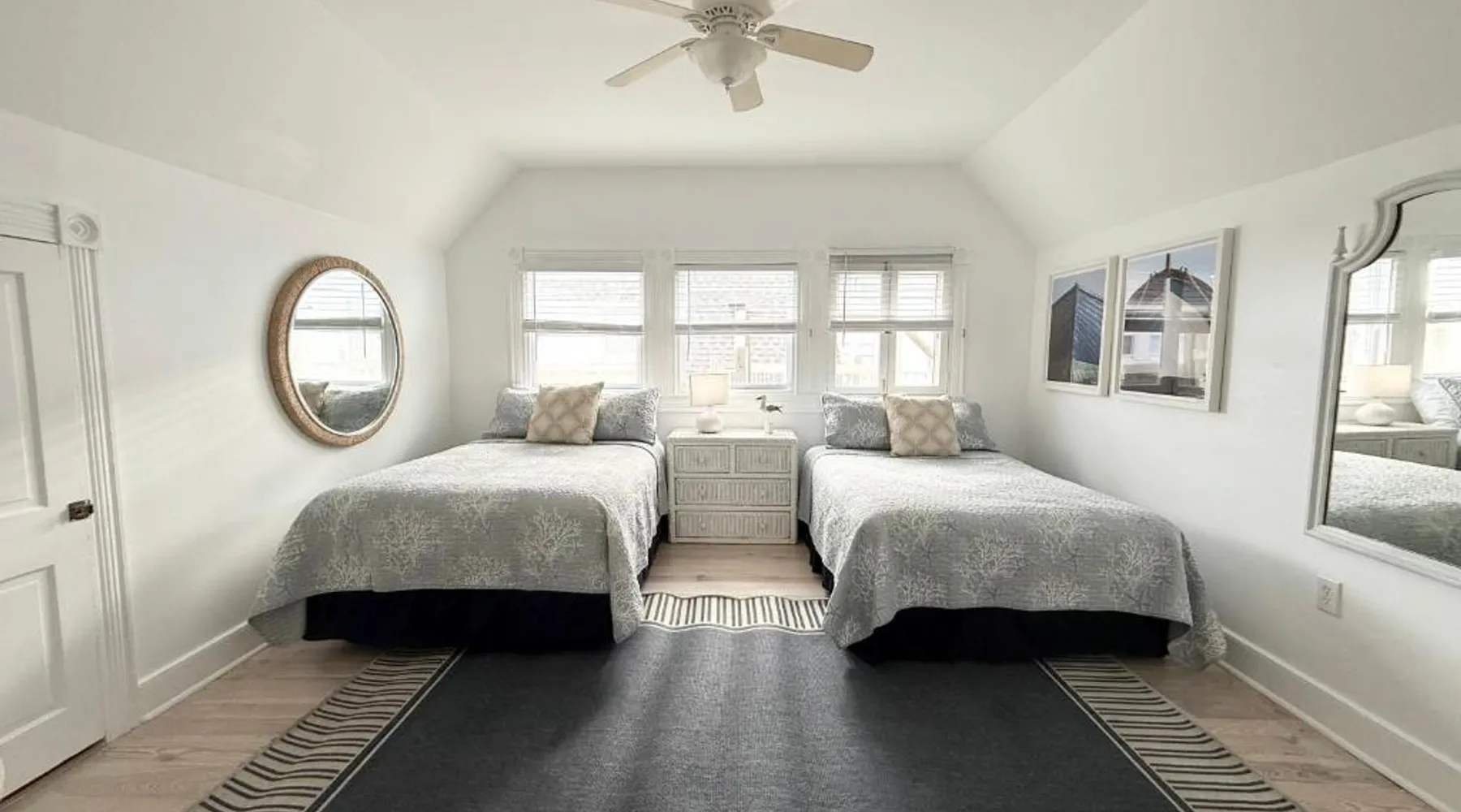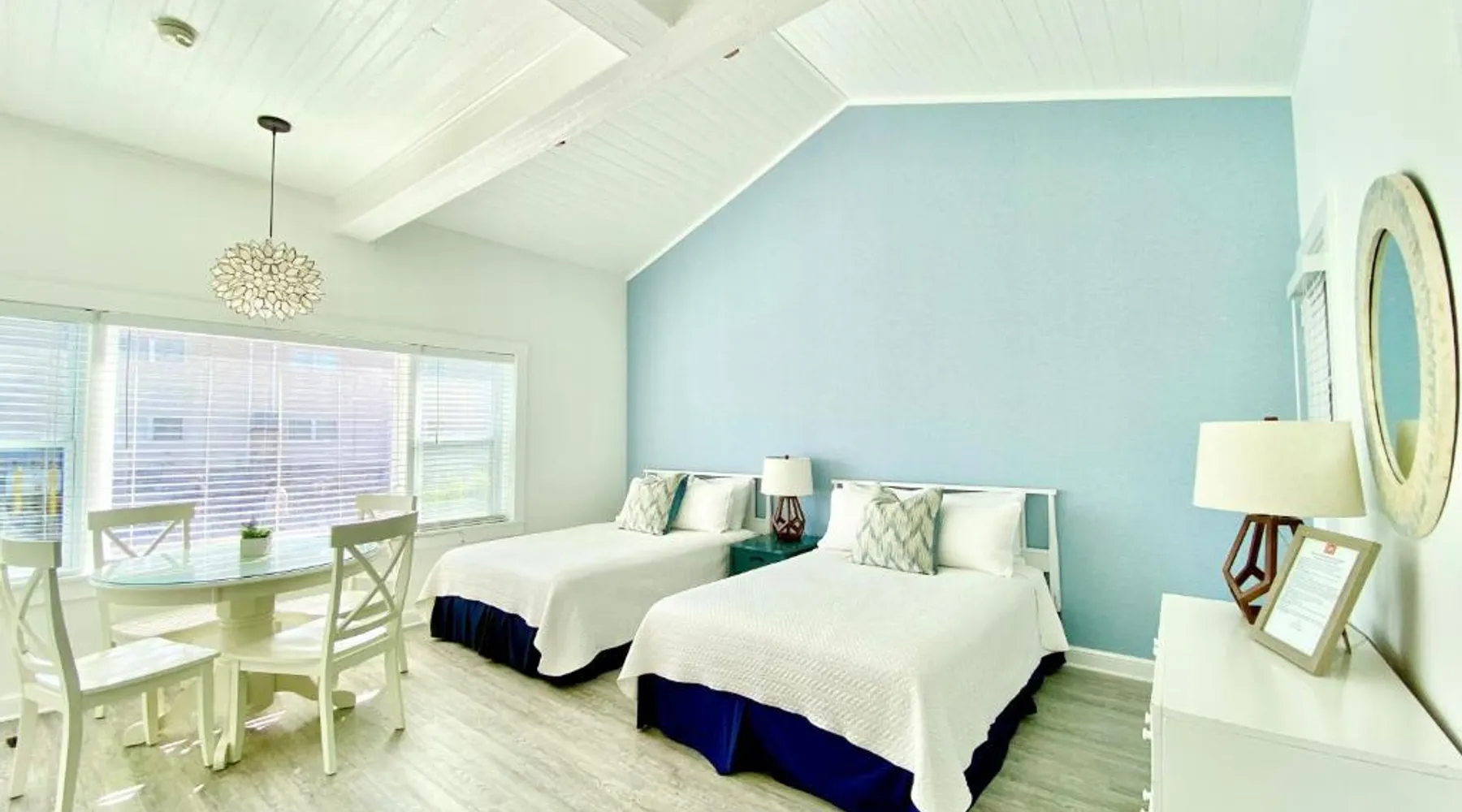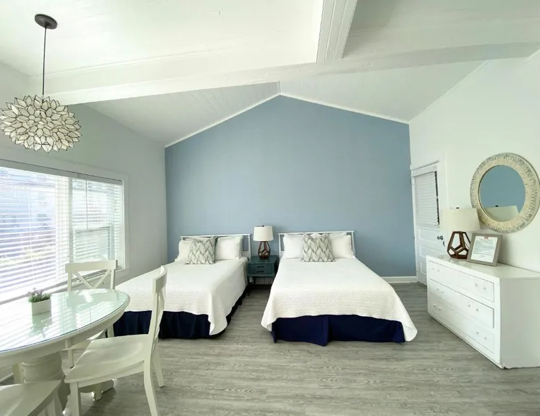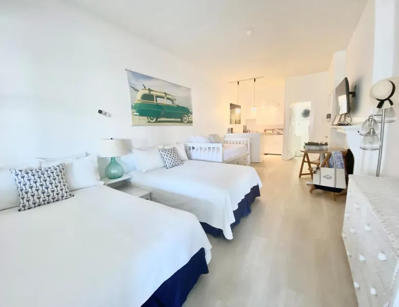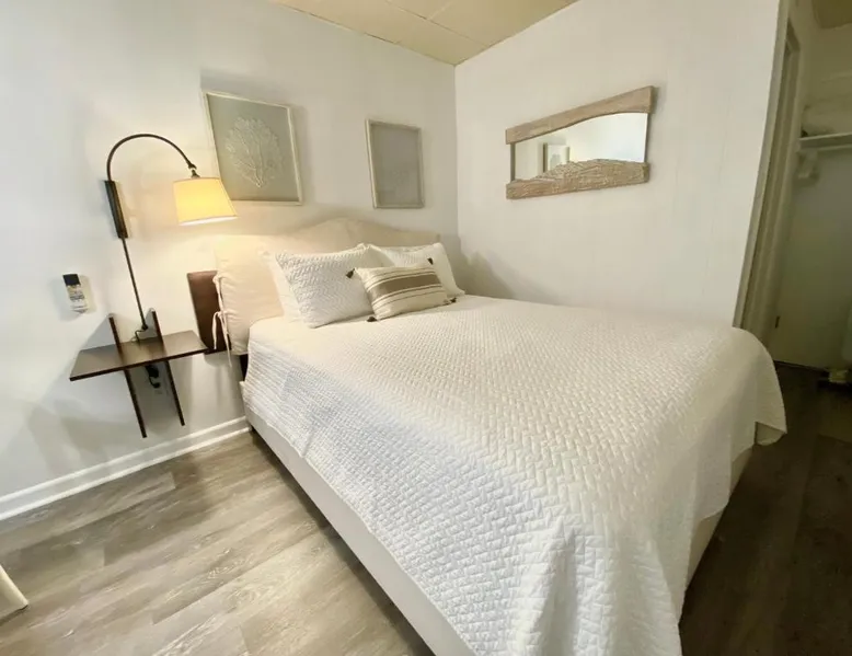 Historic Setting: Windward at the Beach in Beach Haven offers a 3-star inn experience housed in a historic building. The property features family rooms and a concierge service, ensuring a comfortable stay. Comfortable Amenities: Guests enjoy free WiFi, air-conditioning, private bathrooms with free toiletries, and amenities such as a refrigerator, microwave, TV, and a seating area. Additional features include a kitchenette with a dining table, oven, stovetop, and toaster. Free off-site parking is available, and the inn provides a ground-floor unit with carpeted floors. Prime Location: Located 39 mi from Atlantic City International Airport, the inn is a short walk from Beach Haven Dog-Friendly Beach (16-minute walk), Fantasy Island Amusement Park (0.6 mi), Earth Sea Sky (16-minute walk), and Saint Mary's Church (17 mi). Boating is available in the surrounding area. Guest Satisfaction: Highly rated for its beach access, room cleanliness, and convenient location. This studio is on the 2nd floor and features a queen bed, plus a twin day bed with trundle, a private bathroom, flat-screen TV, and a bay window seating area.
