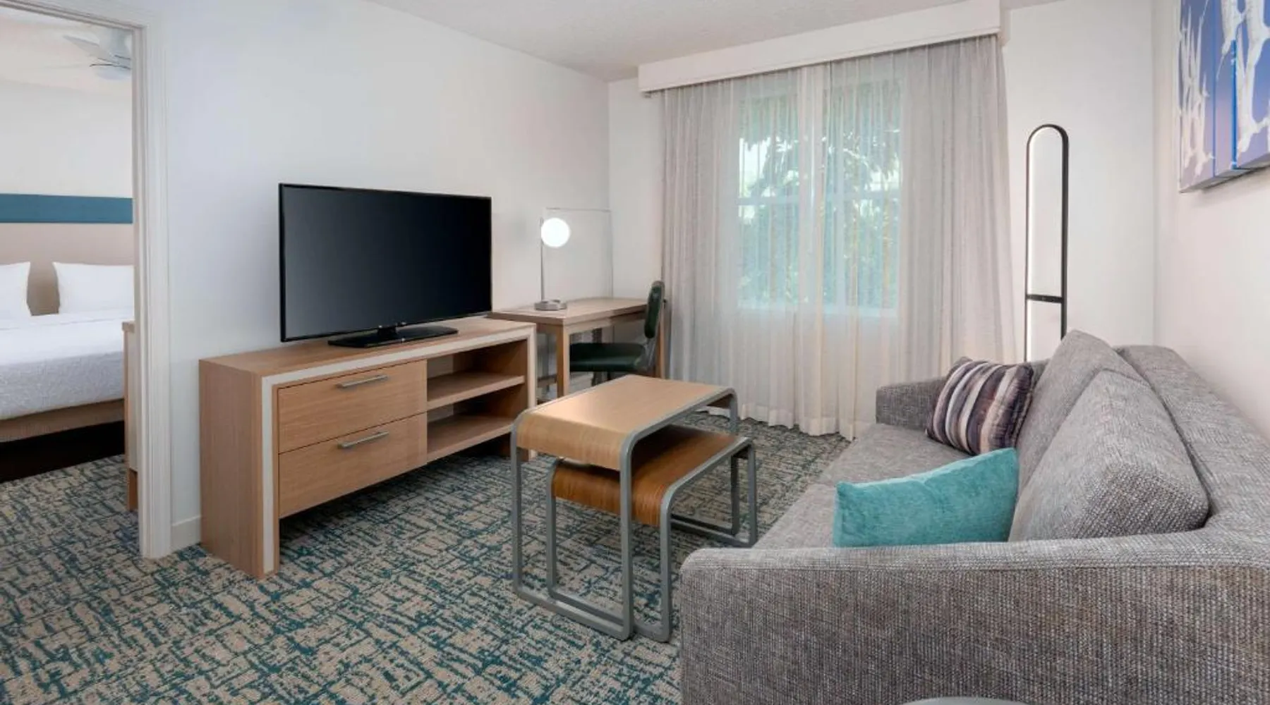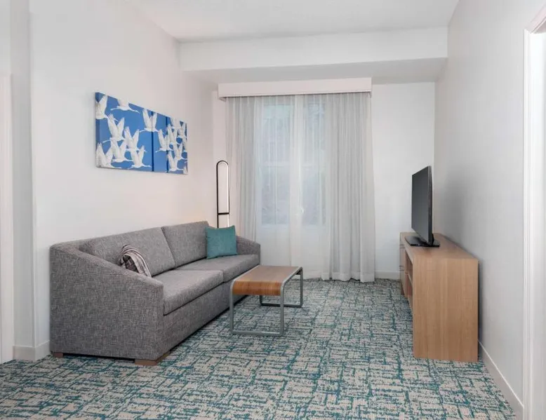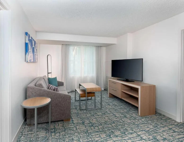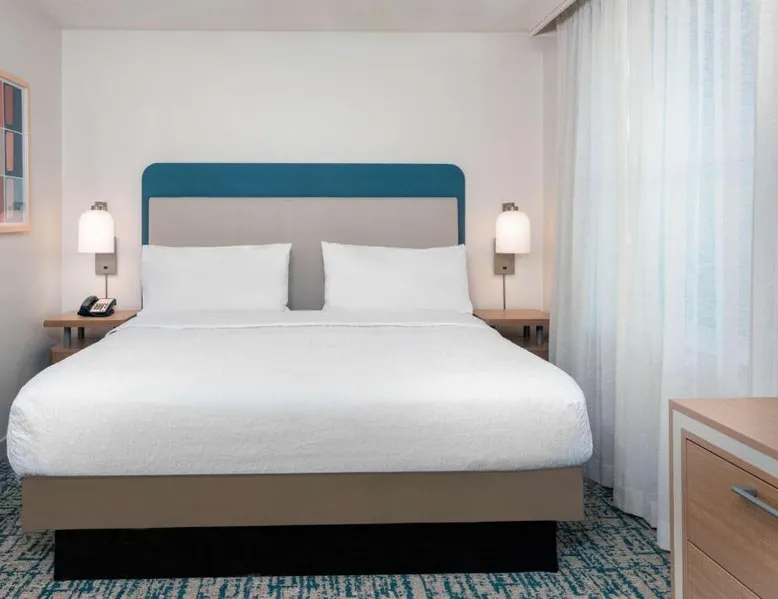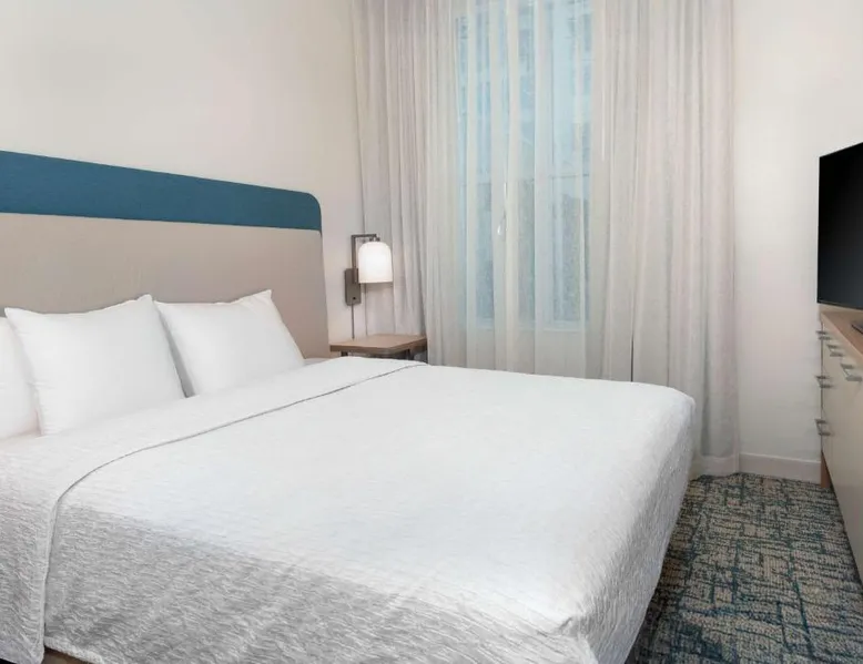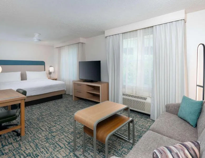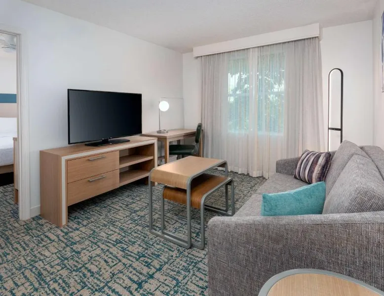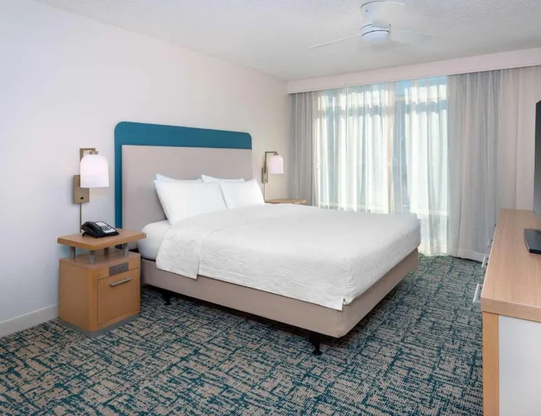 Located in the Westshore Business District, just minutes from Tampa International Airport, this all-suite hotel offers spacious accommodations and amenities such as free airport shuttle service. Homewood Suites by Hilton Tampa Airport - Westshore offers one and 2-bedroom suites with free high-speed internet access. The fully equipped kitchens offer a full-size refrigerator, stove, microwave and dishwasher. Guests can relax at the end of the day while watching a DVD on the 32-inch LCD TV. A free hot breakfast is served daily at the Tampa Airport Homewood Suites. After a busy day, guests will enjoy free beverages and a full meal at the Welcome Home reception on evenings Monday through Thursday. The hotel also offers a sports court, an outdoor pool and well-equipped fitness center. This suite features a separate bedroom and living area with a sofa bed.