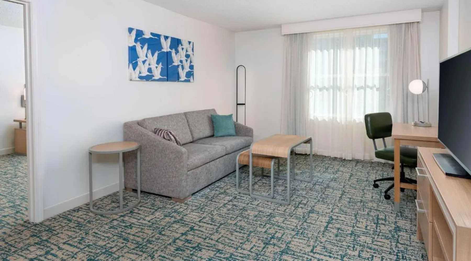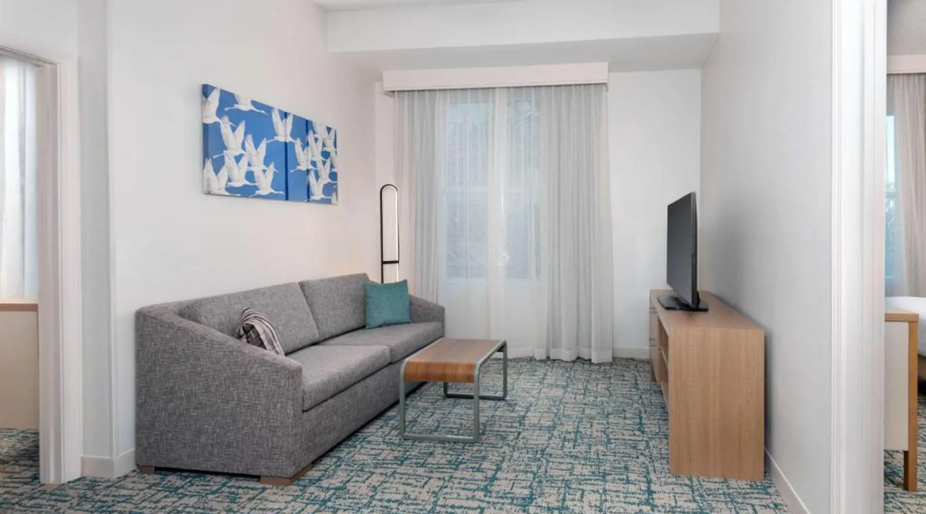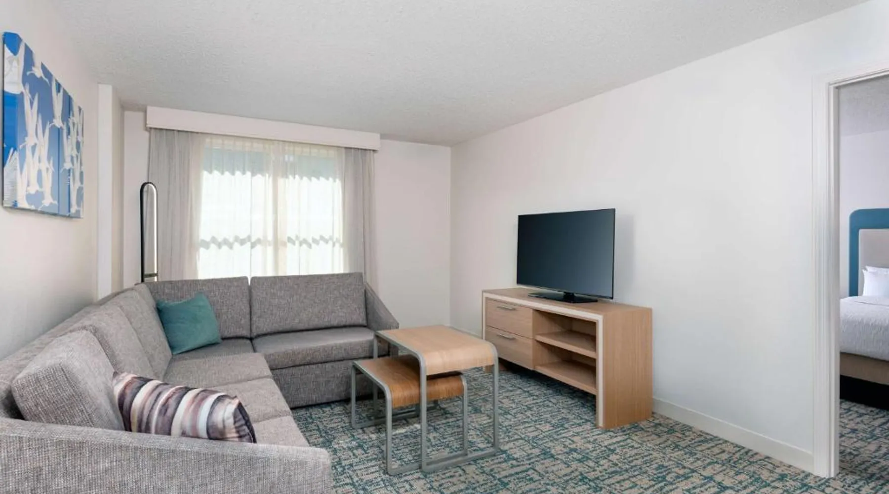 Located in the Westshore Business District, just minutes from Tampa International Airport, this all-suite hotel offers spacious accommodations and amenities such as free airport shuttle service. Homewood Suites by Hilton Tampa Airport - Westshore offers one and 2-bedroom suites with free high-speed internet access. The fully equipped kitchens offer a full-size refrigerator, stove, microwave and dishwasher. Guests can relax at the end of the day while watching a DVD on the 32-inch LCD TV. A free hot breakfast is served daily at the Tampa Airport Homewood Suites. After a busy day, guests will enjoy free beverages and a full meal at the Welcome Home reception on evenings Monday through Thursday. The hotel also offers a sports court, an outdoor pool and well-equipped fitness center. This suite features a separate bedroom and living area with a sofa bed.