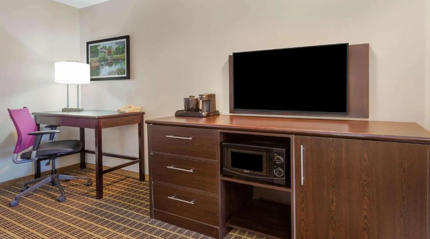 La Quinta Inn & Suites Rockford is ideally located one block from the junction of Interstate 90 and State Street, just minutes from Illinois' two Sportscore complexes. Free WiFi access is available. All suites at this Illinois hotel feature refrigerators, microwaves, coffee makers, hair dryers, irons, ironing boards, sofa sleepers and expanded cable. Guests of this all-suite pet-friendly hotel can enjoy free breakfast, an indoor heated pool and fitness center. Other amenities offered include guest laundry facilities, an on-site convenience store and free newspaper. Universal plugs are available at the hotel lobby. La Quinta Inn & Suites Rockford is less than 10 miles from: Magic Waters Waterpark, MetroCentre arena, CherryVale Mall, Rockford College and Coronado Performing Arts Center. Offering free Wi-Fi and a cable TV, this room includes a microwave, refrigerator and tea and coffee-making facilities.