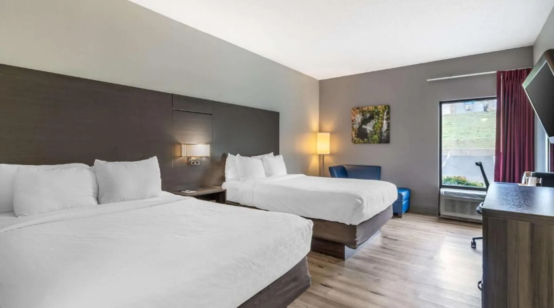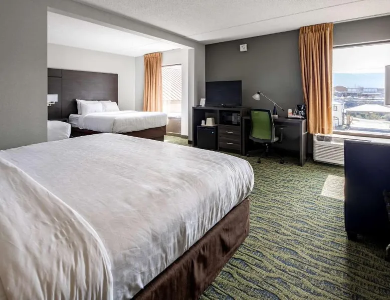 Discover the beauty and spectacular scenery of Lookout Mountain and Chattanooga, TN with your stay at the Clarion Inn. Get together and connect with friends, family or business associates while in Chattanooga and enjoy the many attractions in close proximity to our hotel. All rooms feature high-definition, flat-screen cable television, a hair dryer, coffee maker, iron and ironing board. Some rooms offer a sofa sleeper and desk. Business travelers will welcome the Clarion Inn’s meeting room as well as additional conveniences like access to copy and fax services. Ample parking is provided. Guests of the Clarion Inn hotel will appreciate an exercise room and outdoor seasonal pool. Additional amenities include: Free breakfast; Free wireless high-speed Internet access; Free local calls Take a drive up beautiful Lookout Mountain to visit Ruby Falls, Rock City, Battles for Chattanooga and the Incline Railway. Leave time for the downtown attractions nearby. Only six miles away is the Tennessee Aquarium and attractions like: Tennessee Aquarium IMAX 3D Theater; Creative Discovery Museum; Murder Mystery Dinner Theater; Southern Belle Riverboat This air-conditioned twin/double room includes a TV with cable channels and a private bathroom. The unit offers 2 beds.