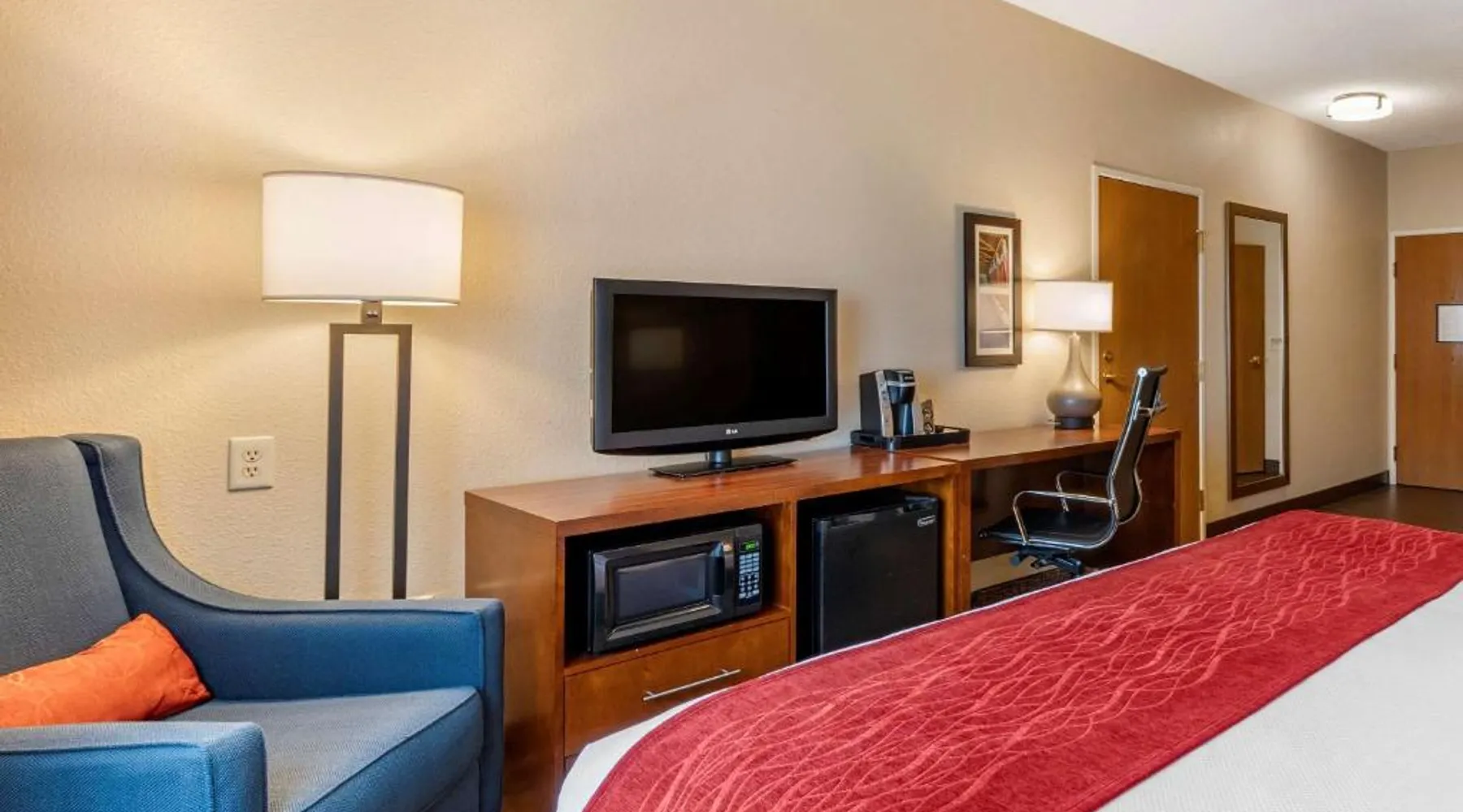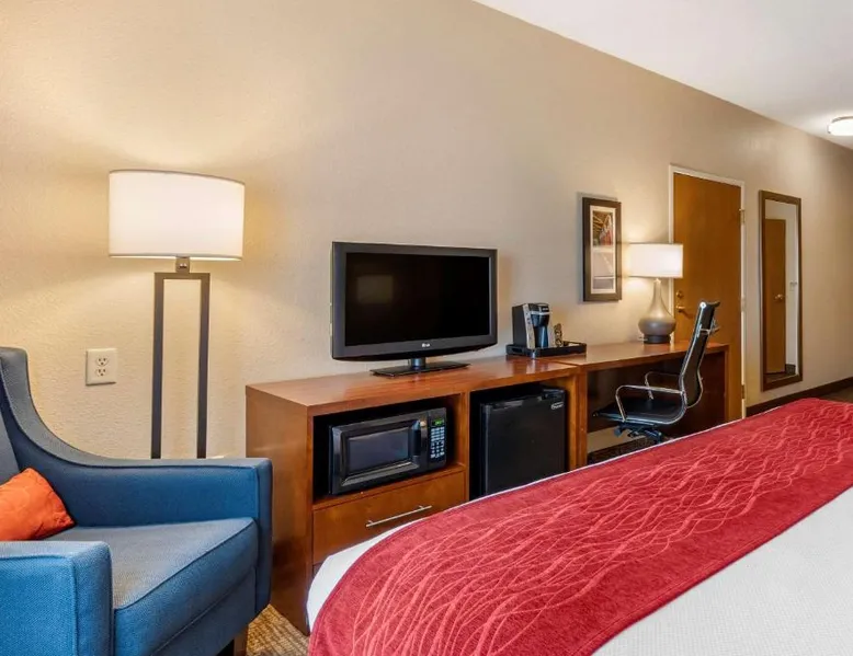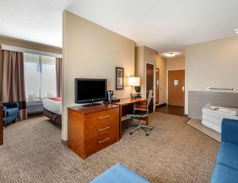 Comfortable Accommodations: Comfort Inn La Porte in La Porte offers clean rooms with free WiFi, air-conditioning, and modern amenities. Guests enjoy a fitness center, indoor swimming pool, and a 24-hour front desk. Comprehensive Facilities: The inn features a fitness room, elevator, business area, coffee shop, picnic area, room service, and barbecue facilities. Free on-site parking is available, along with a continental, American, or buffet breakfast with juice, fresh pastries, cheese, and fruits. Convenient Location: Located 30 mi from South Bend Regional Airport, the property is near attractions such as Valparaiso University Brauer Museum Of Art (24 mi), Studebaker National Museum (27 mi), and Century Center Convention Center (27 mi). Highly rated for room cleanliness, staff support, and breakfast. The spacious double room provides a tea and coffee maker, a seating area, heating and a TV with cable channels. The unit offers 1 bed.