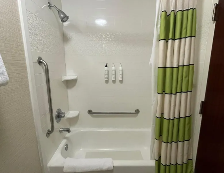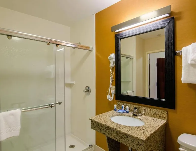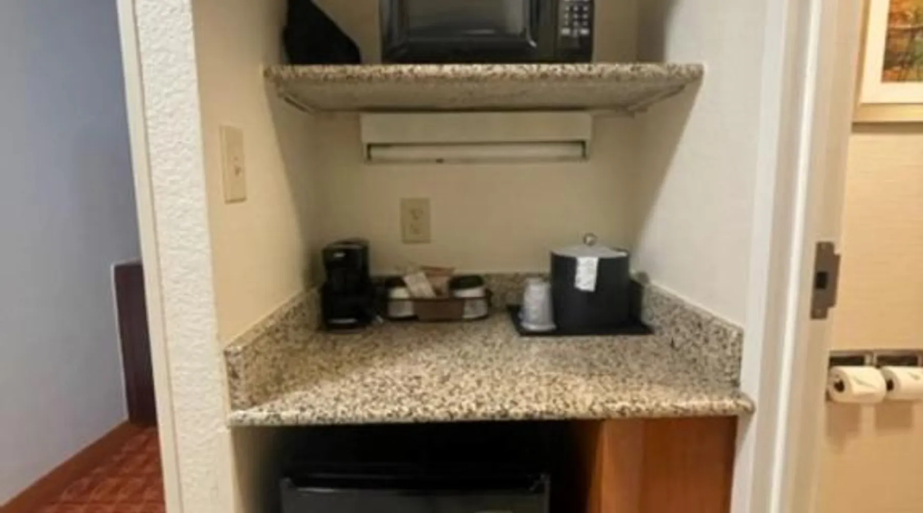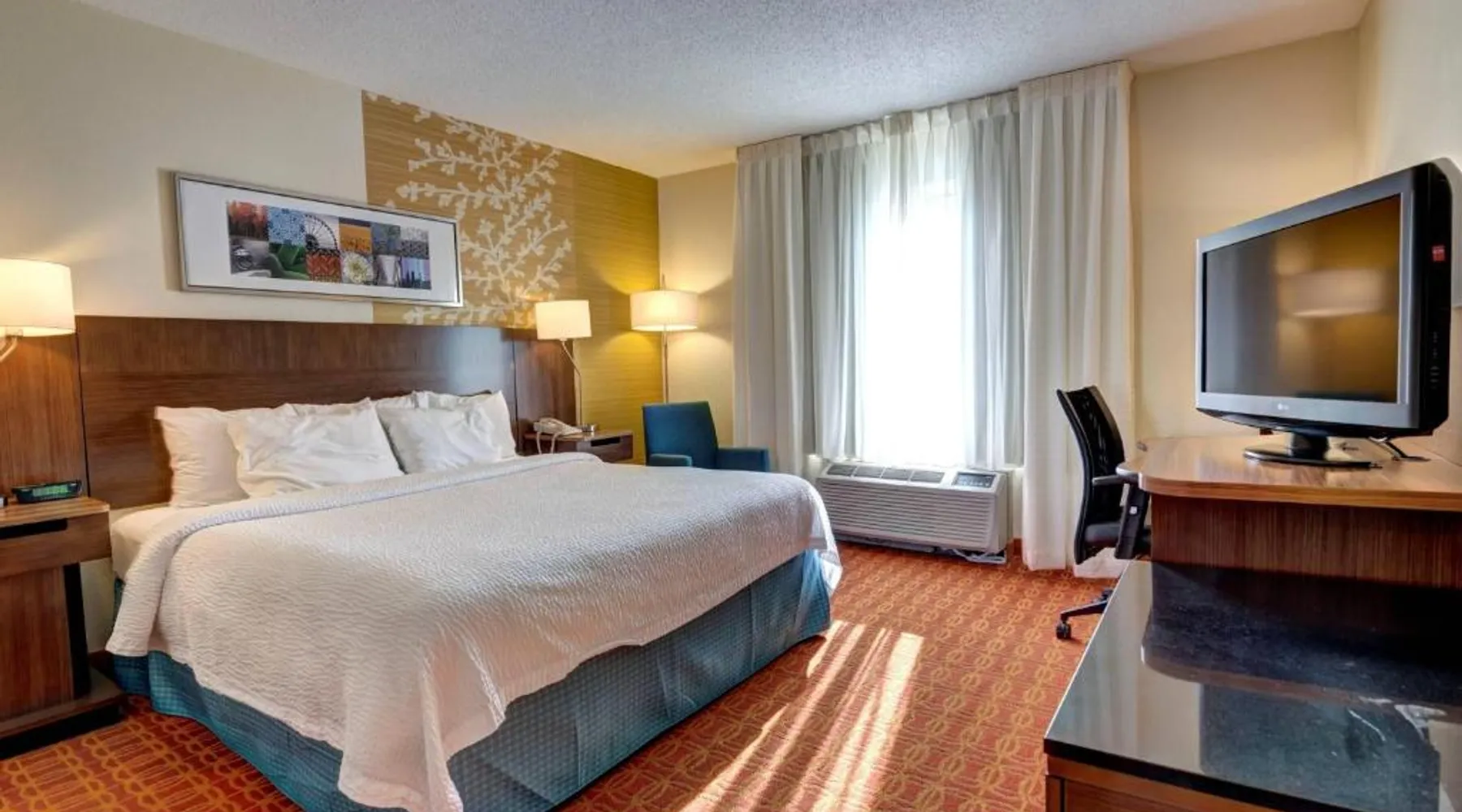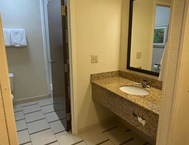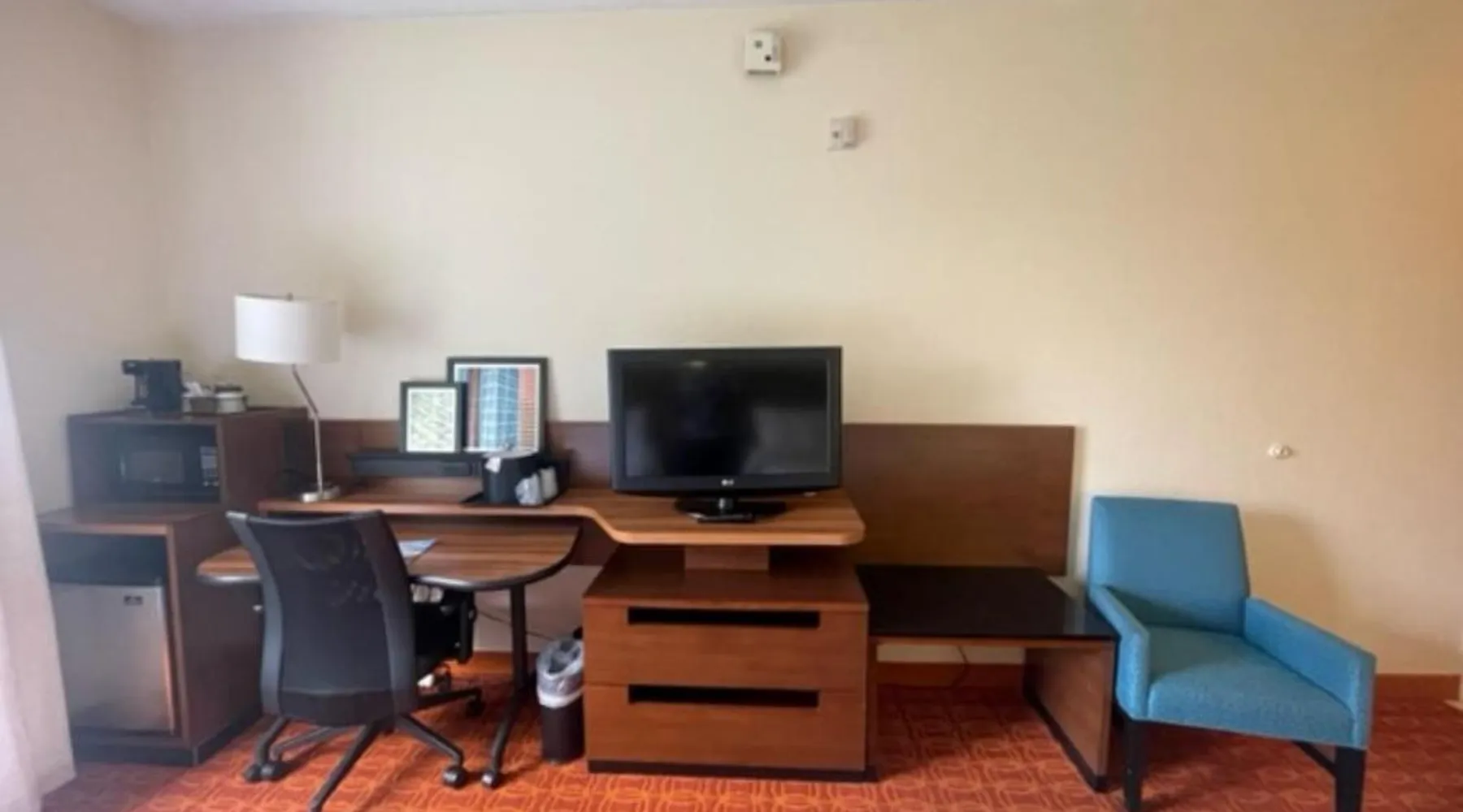 Comfortable Accommodations: Fairfield Inn and Suites by Marriott Potomac Mills Woodbridge in Woodbridge offers comfortable rooms with air-conditioning, private bathrooms, and modern amenities. Each room includes a work desk, sofa bed, and free WiFi. Exceptional Facilities: Guests can enjoy an indoor swimming pool, fitness room, and outdoor seating area. Additional facilities include a picnic area, room service, and free on-site parking. Convenient Location: Located 24 mi from Ronald Reagan Washington National Airport, the hotel is near attractions such as Occoquan National Wildlife Refuge (4.3 mi) and Lake Ridge Golf Park And Marina (4.3 mi). Guests appreciate the convenient location and room comfort. This suite features a refrigerator, microwave, seating area and flat-screen TV.
