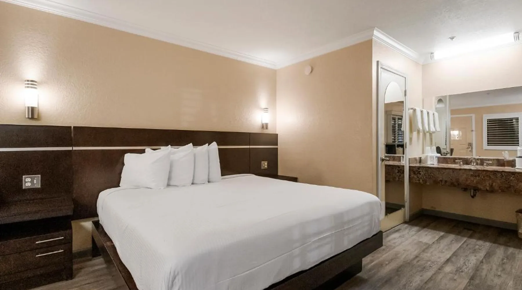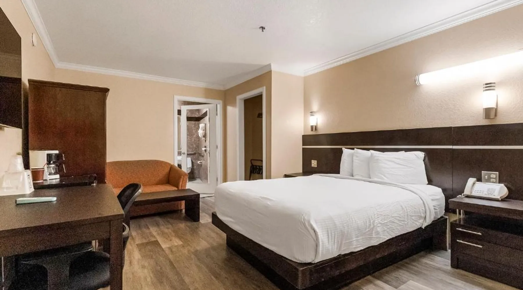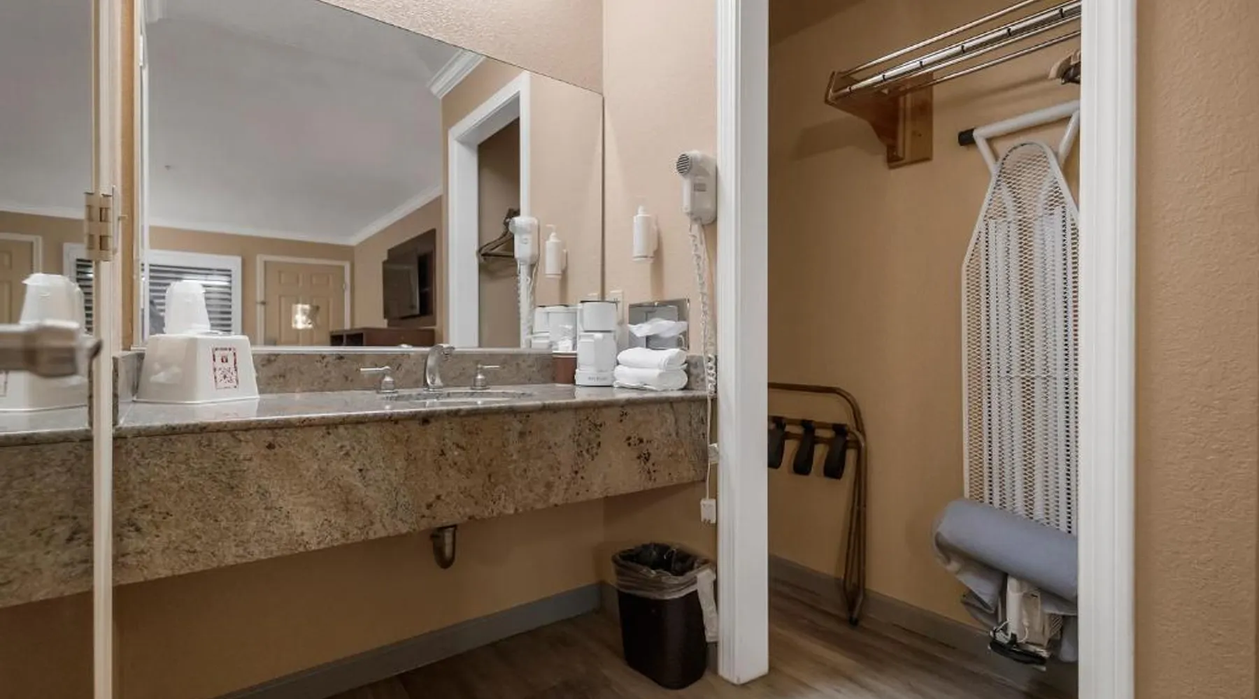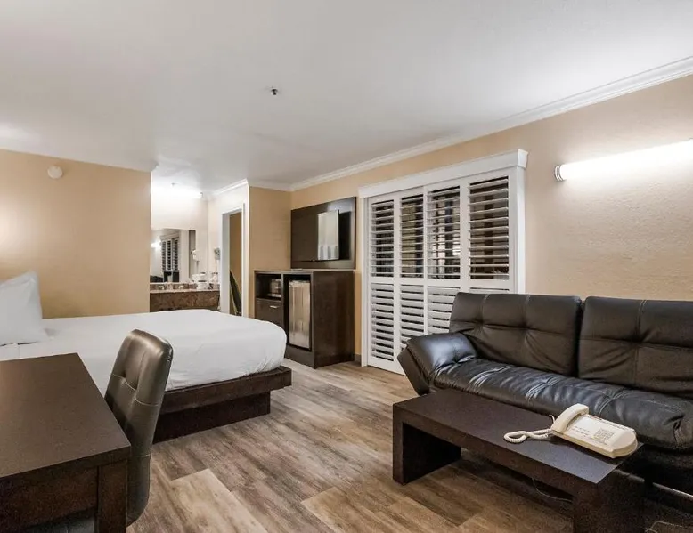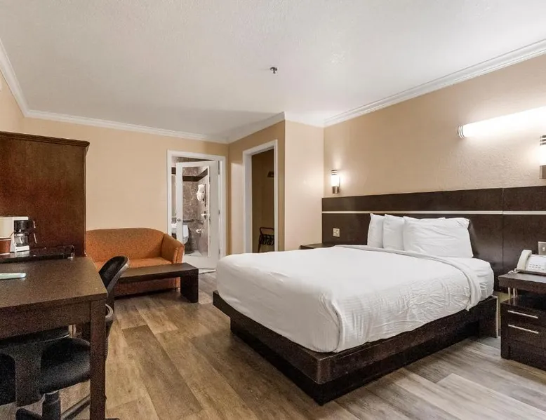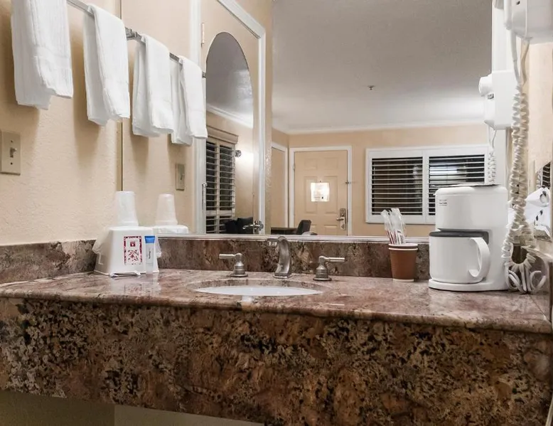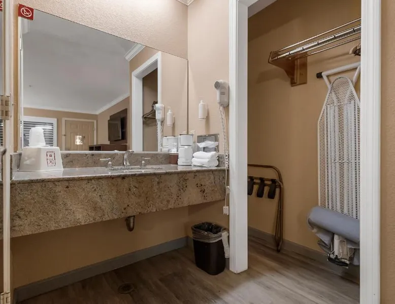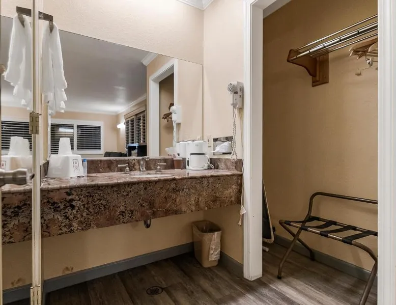 Between Sonora and Jamestown on the main Hwy 108, Hotel Country Inn Sonora is 1 mi from Central Sonora. The hotel offers seasonal outdoor pool and free WiFi in all guest rooms and the public areas. Each room at Country Inn Sonora features a 50" flat screen TV with cable channels. Comfortably furnished, all rooms include a work desk. A coffee machine is included. A 24-hour reception and a sun terrace are offered at Sonora Country Inn. Vending machines featuring snacks and drinks are located on site. Restaurants and breakfast dining are all nearby and within minutes away from the hotel. Black Oak Casino is 9.9 mi from this hotel. Yosemite National Park is 70 mi away. Country Inn has ample parking for work trucks. Featuring a flat-screen cable TV, this room with attached bathroom is equipped with coffee making facilities.