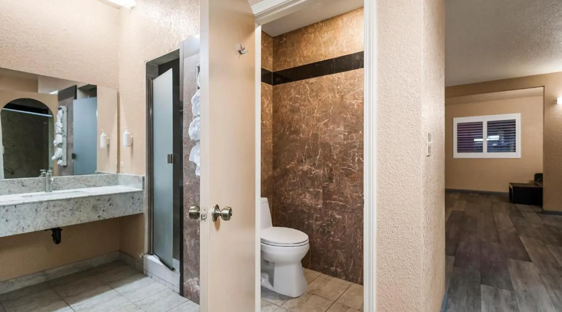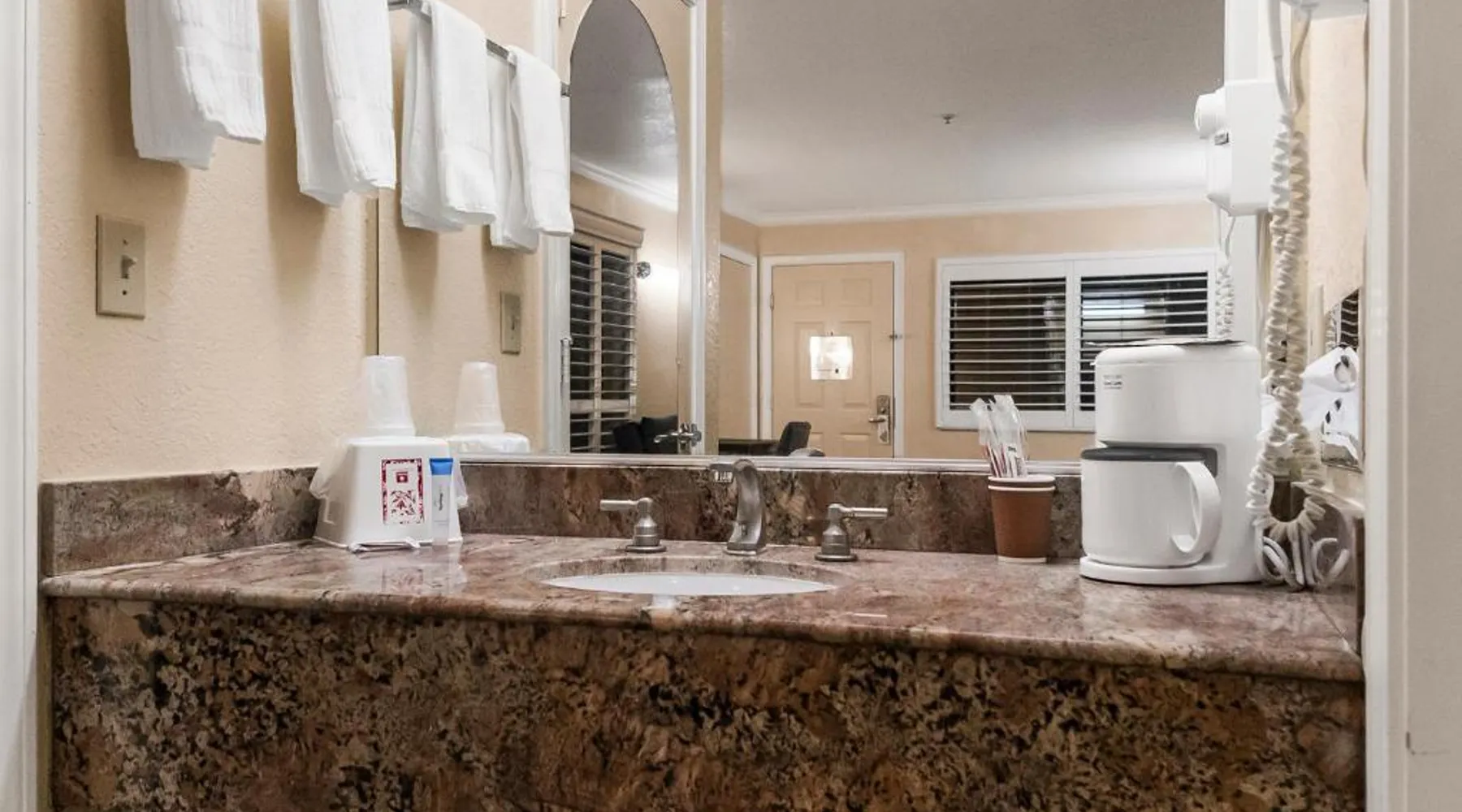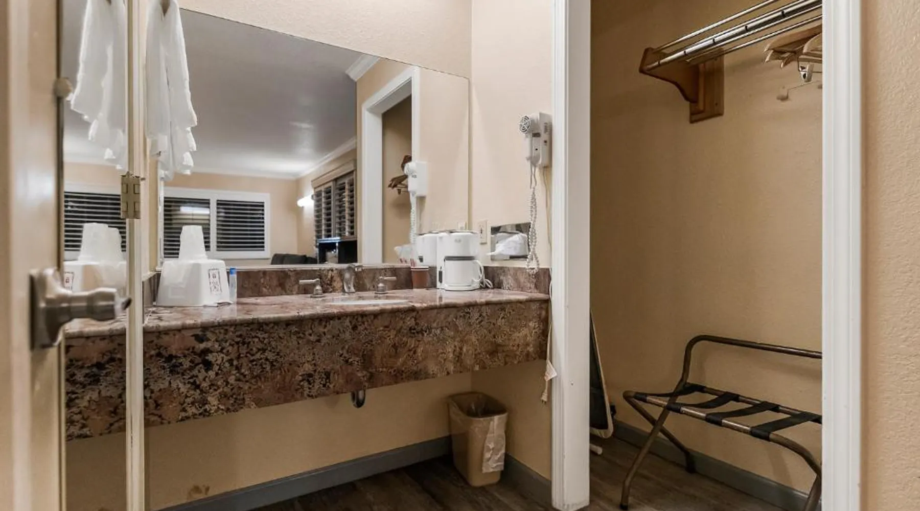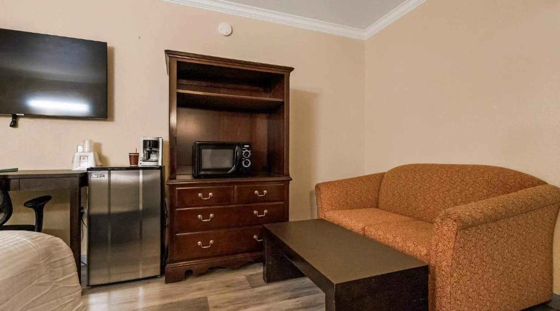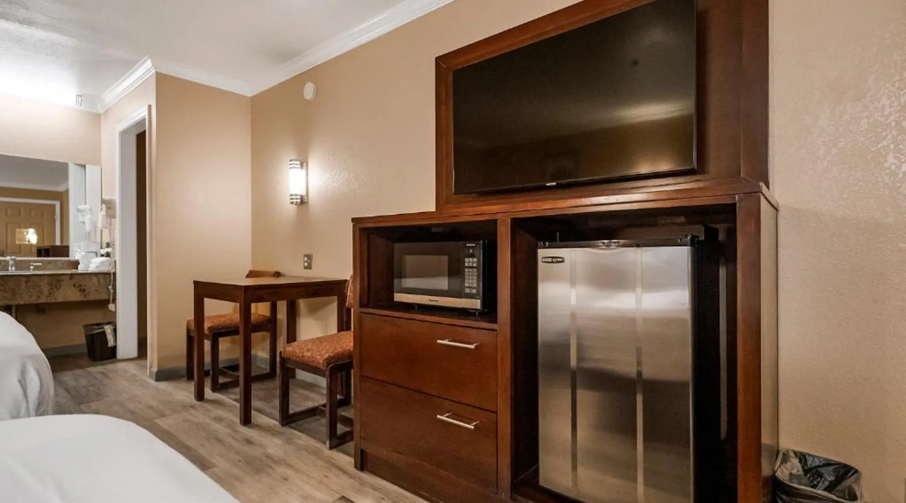 Between Sonora and Jamestown on the main Hwy 108, Hotel Country Inn Sonora is 1 mi from Central Sonora. The hotel offers seasonal outdoor pool and free WiFi in all guest rooms and the public areas. Each room at Country Inn Sonora features a 50" flat screen TV with cable channels. Comfortably furnished, all rooms include a work desk. A coffee machine is included. A 24-hour reception and a sun terrace are offered at Sonora Country Inn. Vending machines featuring snacks and drinks are located on site. Restaurants and breakfast dining are all nearby and within minutes away from the hotel. Black Oak Casino is 9.9 mi from this hotel. Yosemite National Park is 70 mi away. Country Inn has ample parking for work trucks. Featuring a flat-screen cable TV, this room with attached bathroom is equipped with coffee making facilities.