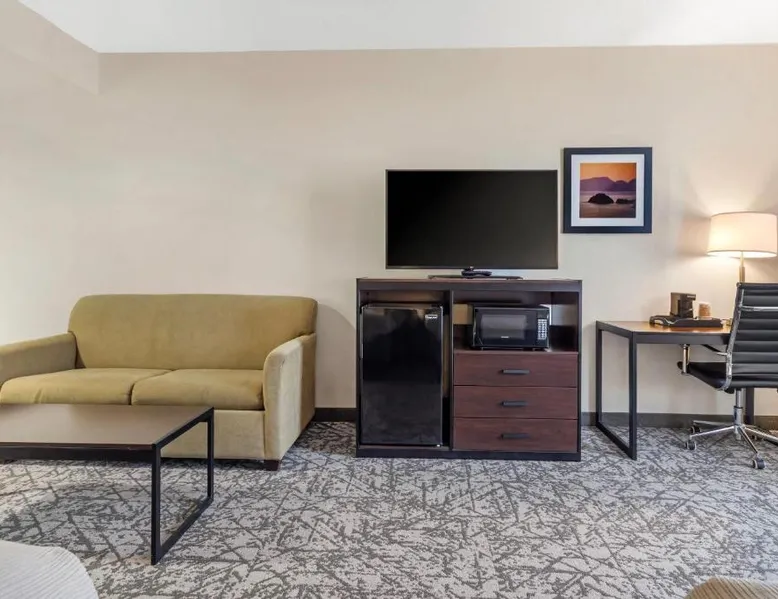 Conveniently accessible from Route 1, the Quality Inn & Suites NJ State Capital Area is surrounded by popular attractions, including Sesame Place theme park, Six Flags Great Adventure, the beautiful villages and antique shops of Peddler's Village and New Hope, and historic Washington Crossing State Park. Downtown Philadelphia, Pennsylvania is just 30 miles away. Guests will enjoy many amenities, such as free wireless high-speed Internet access, free local calls and on-site laundry facilities. Enjoy our free hot breakfast, featuring fresh waffles, every morning! Guests will appreciate the free business center, which includes Internet access and a printer. Copy and fax services are available. Free parking is provided and can accommodate most vehicles. Enjoy a peaceful stay in one of our spacious guest rooms at this 100 percent nonsmoking hotel. All guest rooms are equipped with a 37-inch high-definition television with Showtime, microwave, refrigerator, safe, iron, ironing board, coffee maker and hair dryer. This room has a sofa bed, 37-inch flat-screen TV, microwave, and refrigerator.