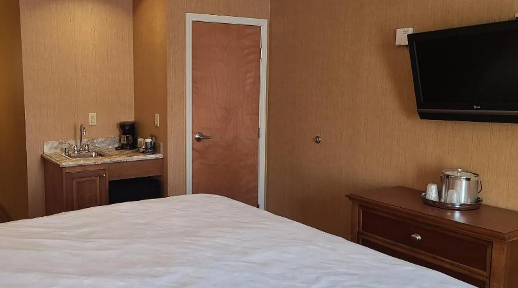 Boasting a casino and an on-site restaurant, this Deadwood, South Dakota hotel is conveniently located off Highway 14. It offers free valet parking and a business center. Adams Museum is 656 feet away. A flat-screen cable TV is provided in each room at Mineral Palace Hotel & Gaming. The simply styled rooms also include coffee-making facilities and a private bathroom. Guests at Hotel Mineral Palace can enjoy meals at Gem Steakhouse & Saloon. The restaurant serves a variety of hand-cut, aged steaks and fine wine. This hotel is within 20 minutes’ drive of Terry Peak Skiing and Spearfish Canyon Country Club. Mount Rushmore is about 1 hours’ drive away. The nearest airport is Rapid City Regional Airport, 40 mi from the accommodations. This room features a flat-screen cable TV and coffee-making facilities.