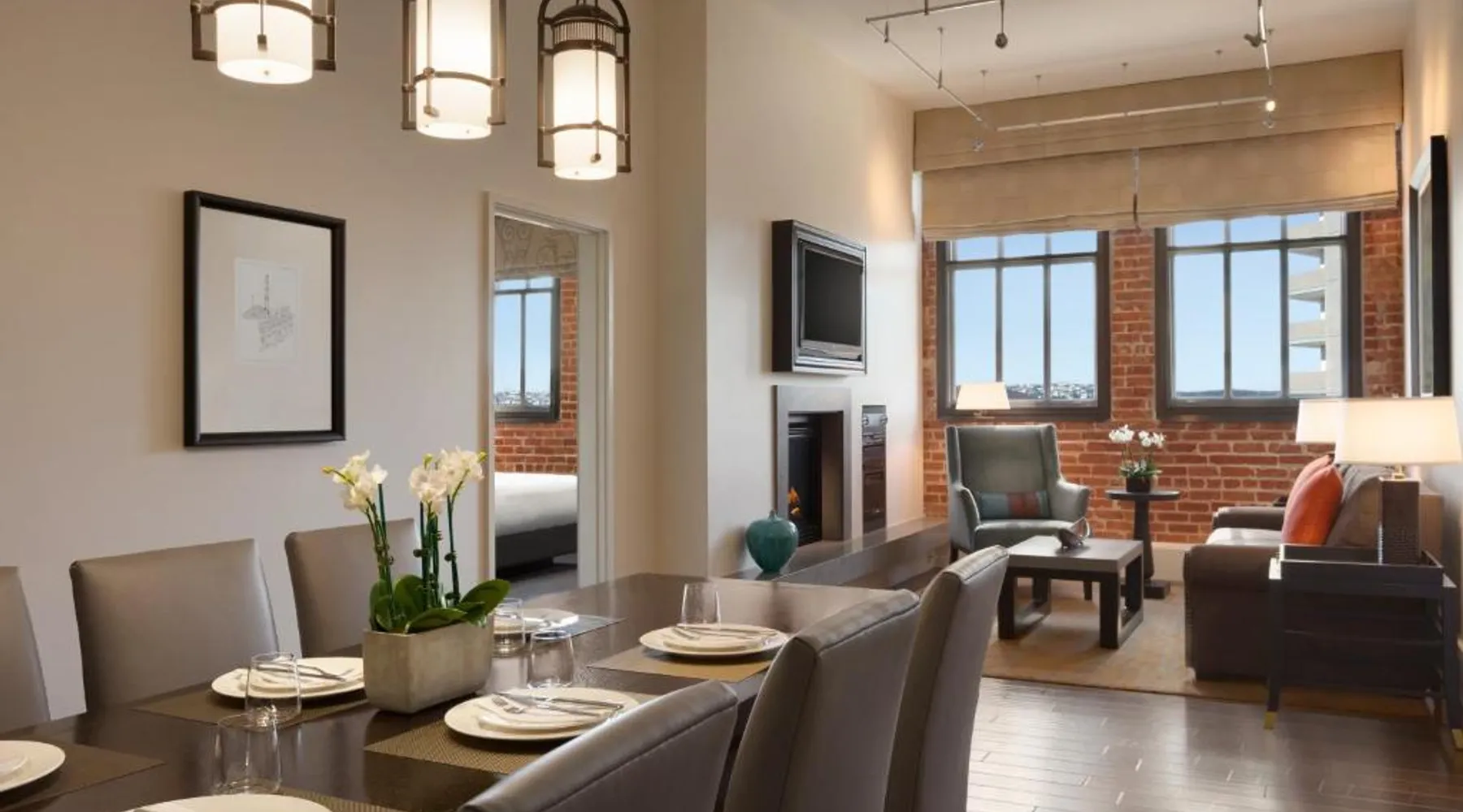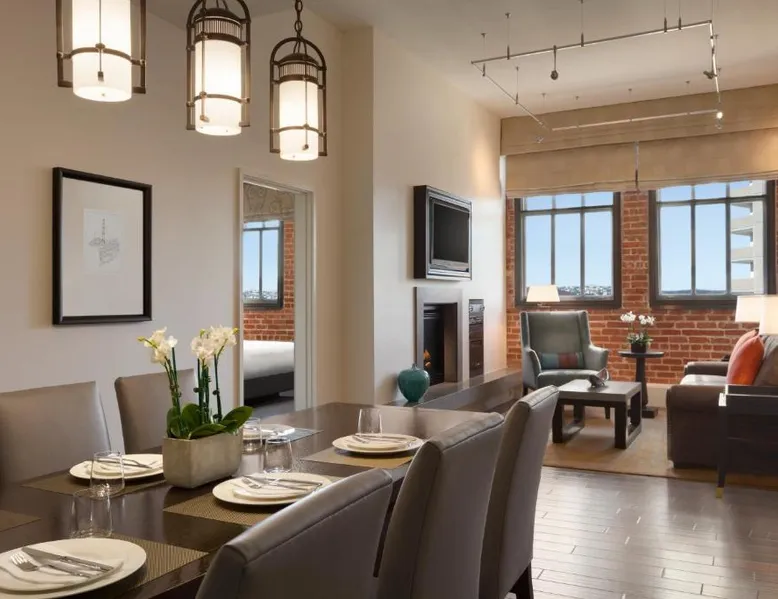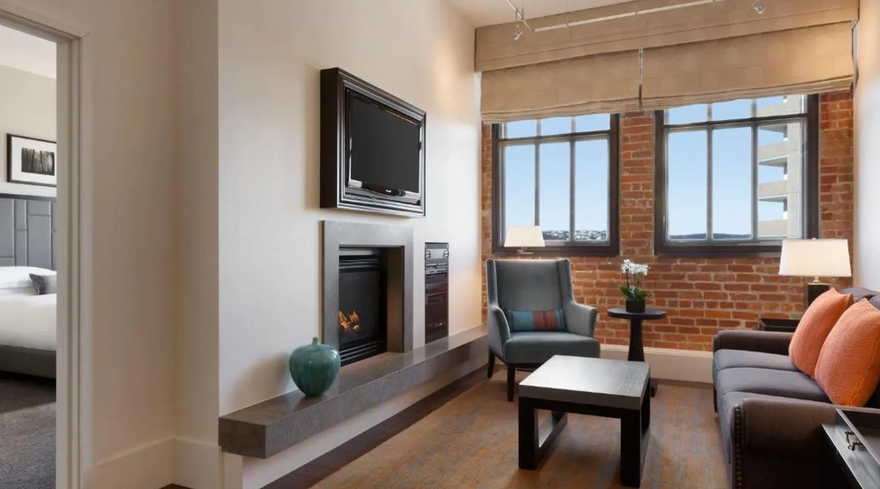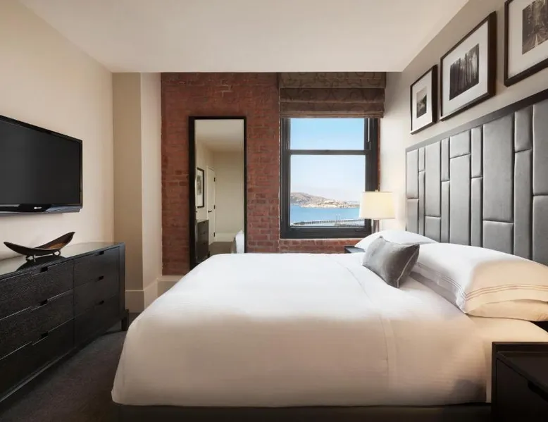 Built high atop Ghirardelli Square with San Francisco Bay views, this urban San Francisco resort features luxurious apartments with free WiFi and fully equipped gourmet kitchens. Sweeping terraces with fire pits are featured on-site. All spacious apartments at The Fairmont Heritage Place Ghirardelli Square include a fireplace and a high-end entertainment system. All bedrooms are designed with an enclosed glass shower in the private bathroom. Exposed brick walls in all apartments offer natural soundproofing and a preserved element of the original Ghirardelli Square façade. An in-unit washer and dryer are tucked away in a closet for guest use. Select apartments feature bay views. Grocery shopping and chef services can be arranged before guests’ arrive or during their stay through the 24-hour concierge and butler. Room service from Palette, San Francisco Brewing Company, and McCormick & Kuleto's Seafood Restaurant is offered daily. The Fairmont Heritage elevators open directly to Ghirardelli Ice Cream and Chocolate Shop, local San Francisco boutiques and restaurants on Ghirardelli Square. All elevators and entrances are accessed securely by only guest key card access. San Francisco Maritime National Museum and Fisherman’s Wharf is 2 minutes’ walk away. Located at the foot of Golden Gate Bridge, the dog-friendly Crissy Field is 15 minutes’ bike ride away from The Fairmont Heritage Place Ghirardelli Square. All Residence Reservations include Two complimentary Valet Parking spots. This apartment offers a fireplace, a high-end entertainment system and a fully equipped gourmet kitchen. All bedrooms are designed with a glass enclosed shower in an private bathroom. Three flat-screen TVs are featured throughout the living room and 2 bedrooms. Exposed brick walls offer natural soundproofing and a preserved element of the original Ghirardelli Square facade. Free WiFi and an in-unit washer and dryer are tucked away in a closet for guest use. Bedrooms may offer 1 king bed or twin beds. Bed type is subject to availability.