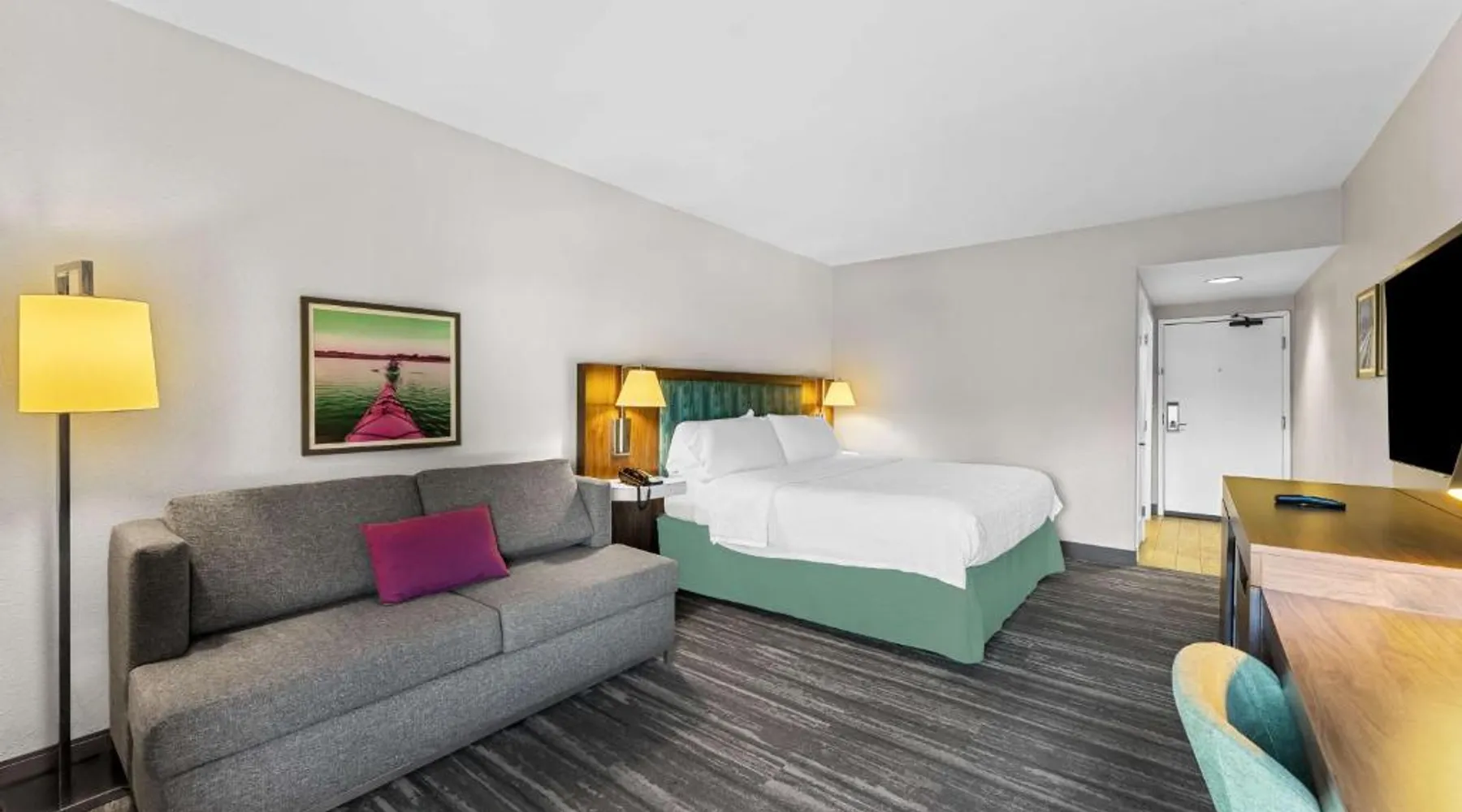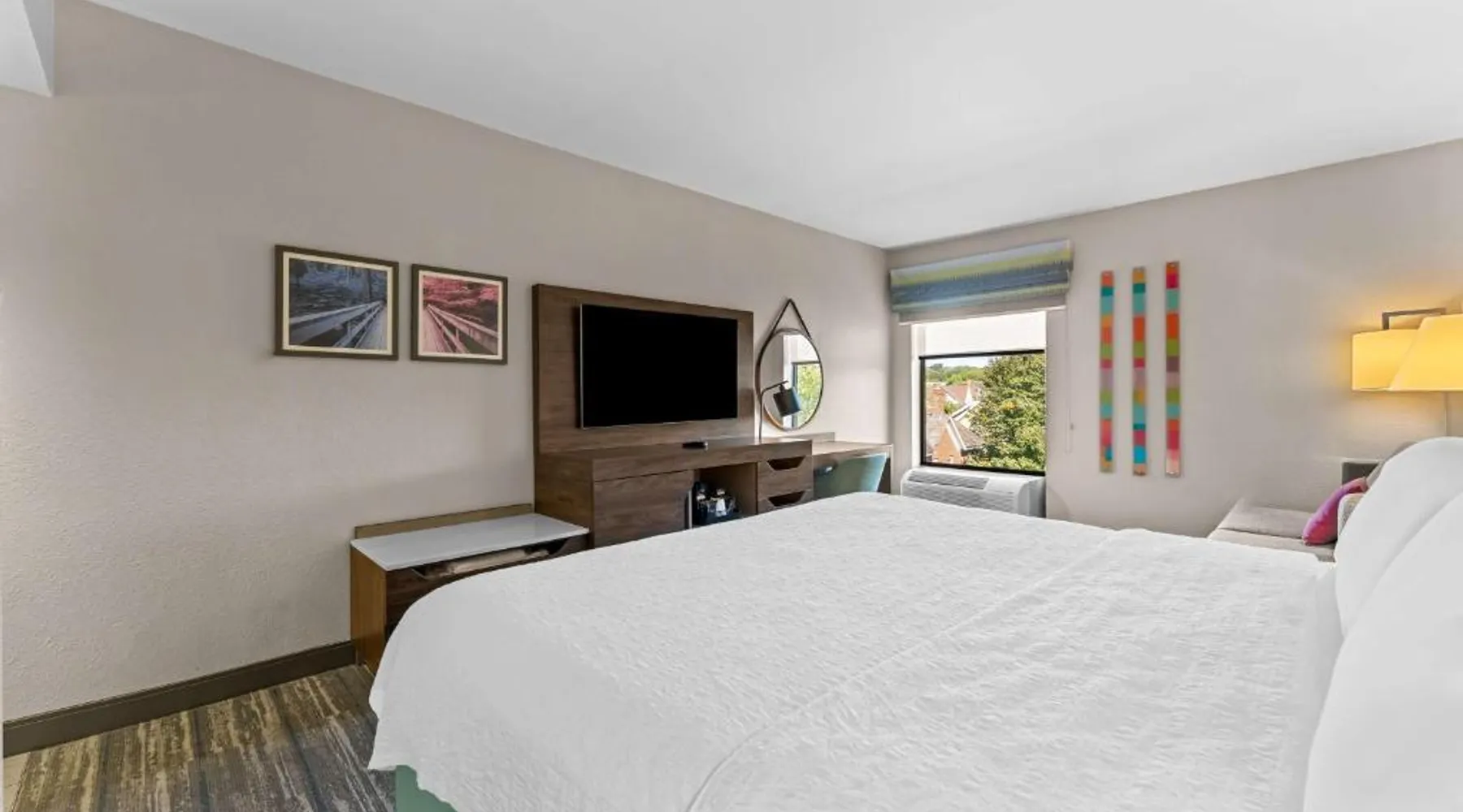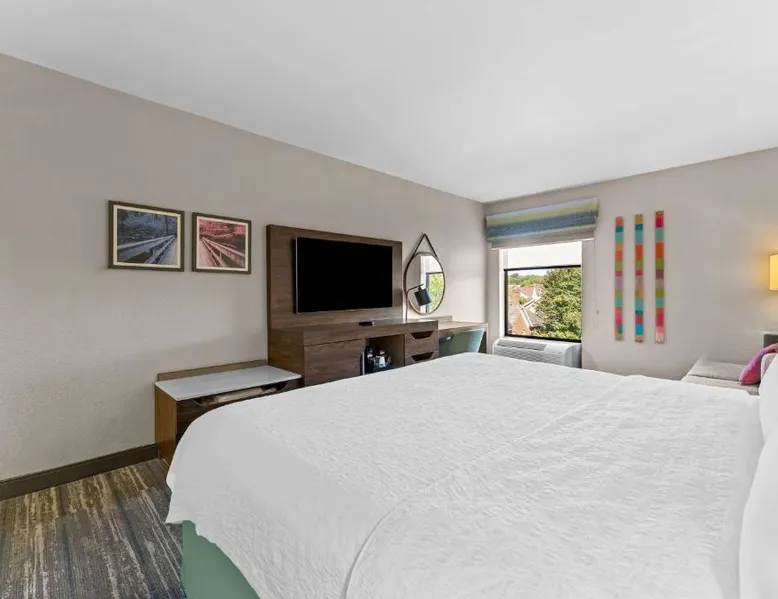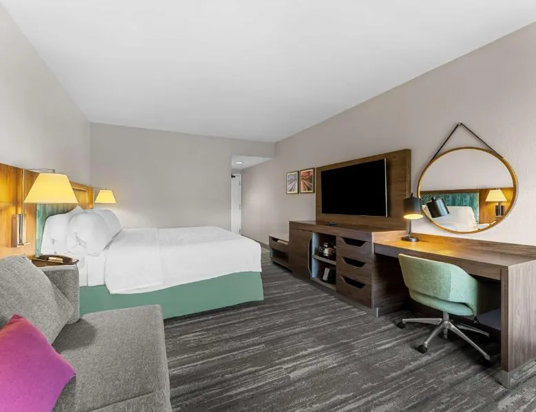 Comfortable Accommodations: Hampton Inn Stroudsburg Poconos in Stroudsburg offers family rooms with free WiFi, a fitness center, indoor swimming pool, and a 24-hour front desk. Modern Amenities: Guests enjoy a fitness room, elevator, luggage storage, and free on-site parking. Each room includes a tea and coffee maker, hairdryer, sofa bed, free toiletries, shower, and TV. Convenient Location: Located 31 mi from Lehigh Valley International Airport, the hotel is near Delaware Water Gap National Recreation Area (5 mi), Great Wolf Lodge Pocono Mountains (9.9 mi), and Pocono Raceway (22 mi). Guest Favorites: Guests appreciate the breakfast provided by the property, convenient location, and room cleanliness. This spacious studio features a seating area with sofa bed.