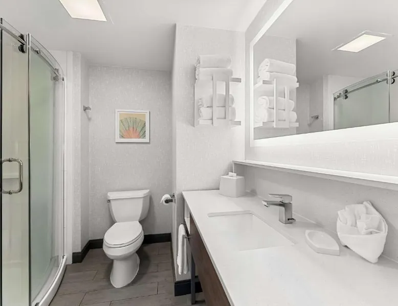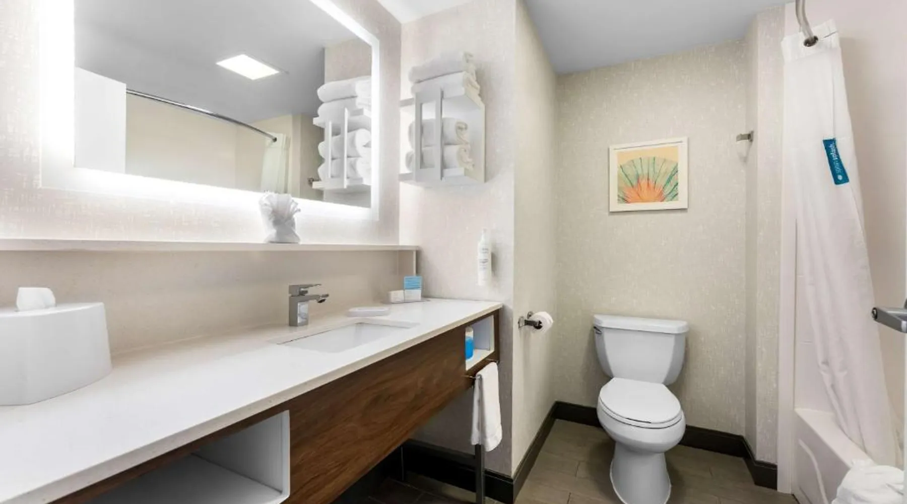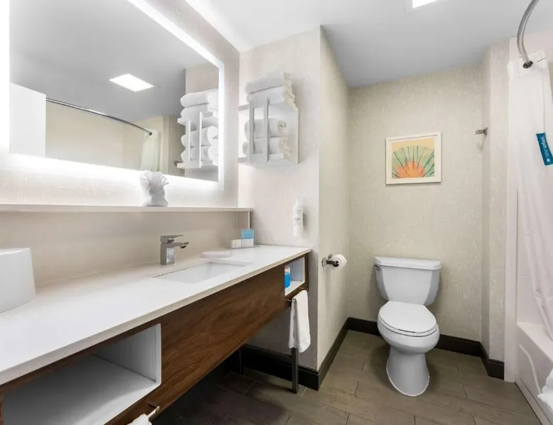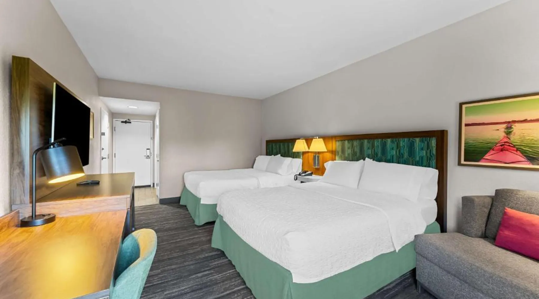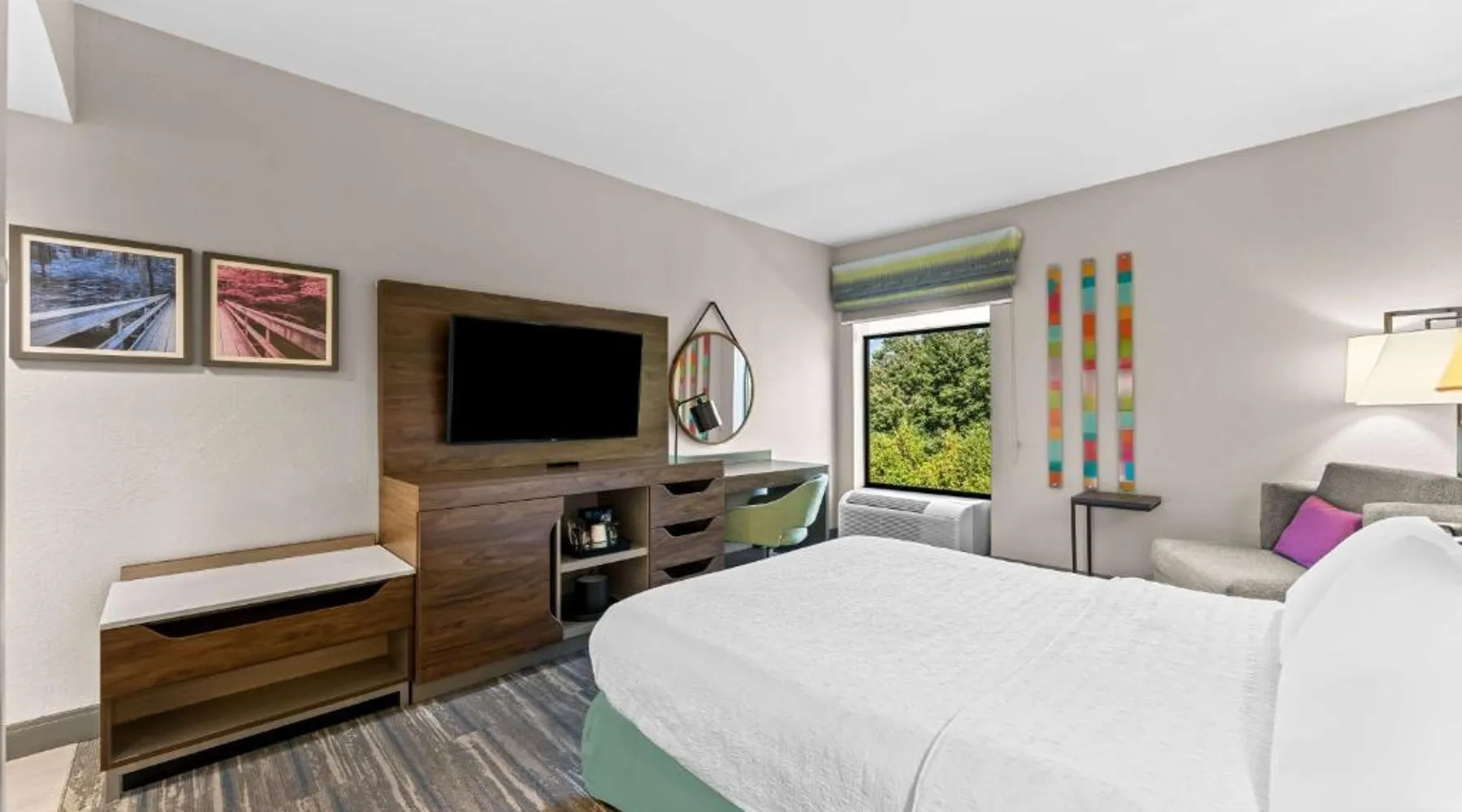 Comfortable Accommodations: Hampton Inn Stroudsburg Poconos in Stroudsburg offers family rooms with free WiFi, a fitness center, indoor swimming pool, and a 24-hour front desk. Modern Amenities: Guests enjoy a fitness room, elevator, luggage storage, and free on-site parking. Each room includes a tea and coffee maker, hairdryer, sofa bed, free toiletries, shower, and TV. Convenient Location: Located 31 mi from Lehigh Valley International Airport, the hotel is near Delaware Water Gap National Recreation Area (5 mi), Great Wolf Lodge Pocono Mountains (9.9 mi), and Pocono Raceway (22 mi). Guest Favorites: Guests appreciate the breakfast provided by the property, convenient location, and room cleanliness. This spacious studio features a seating area with sofa bed.