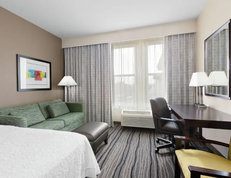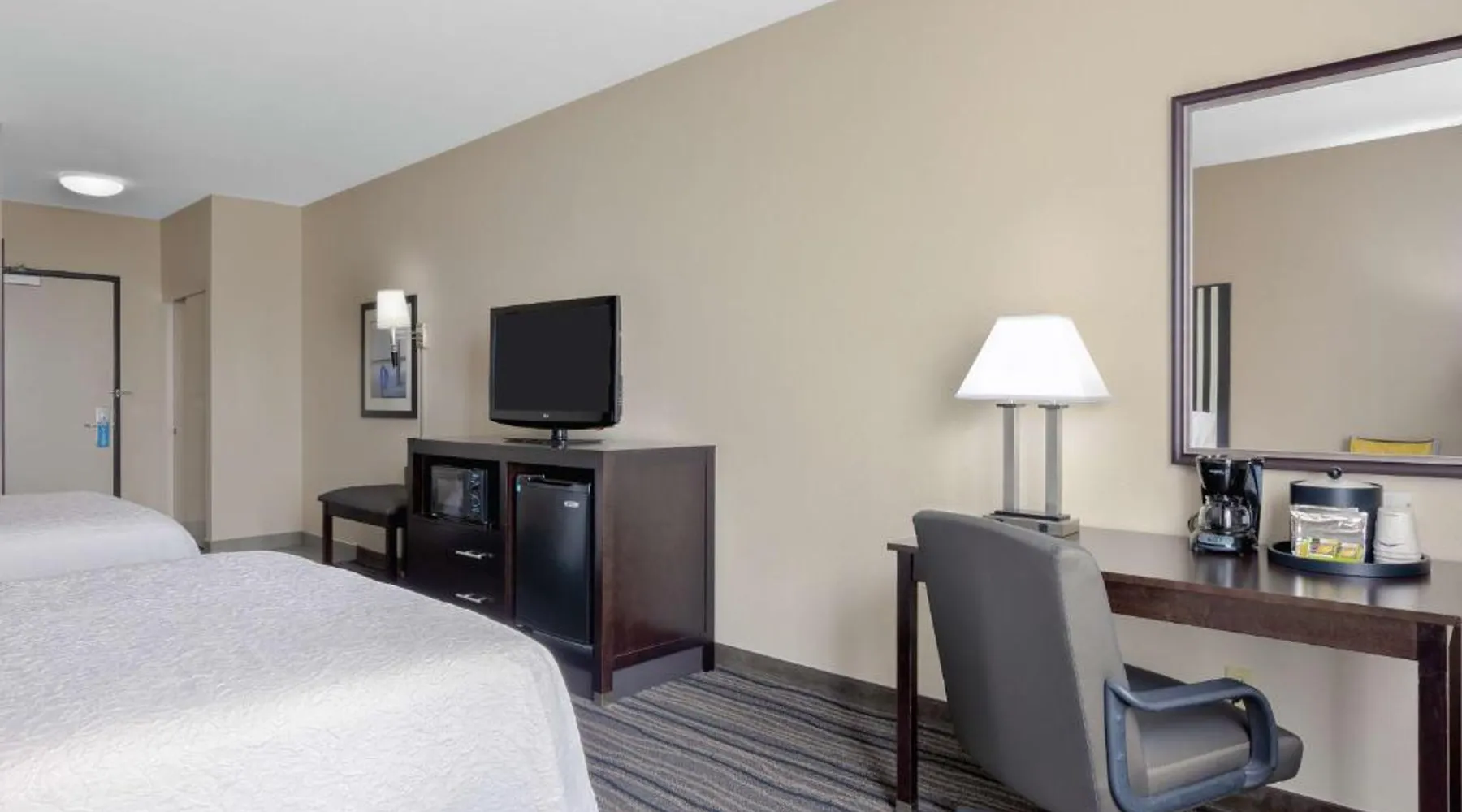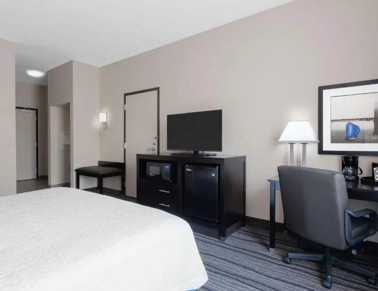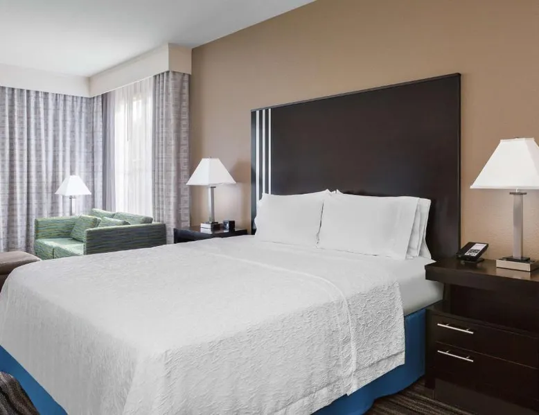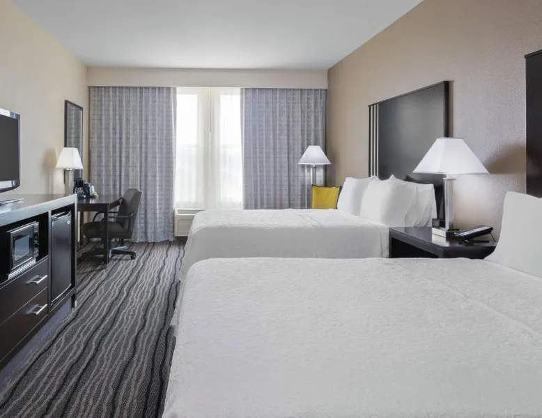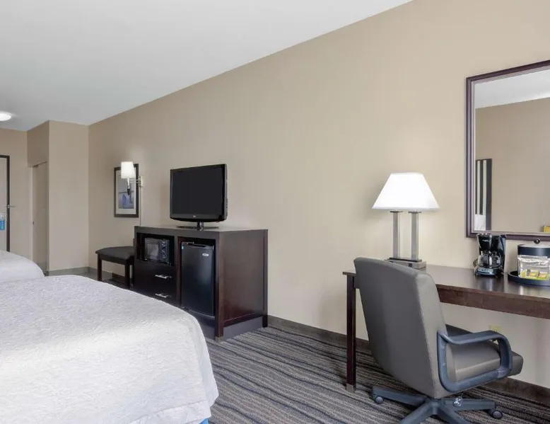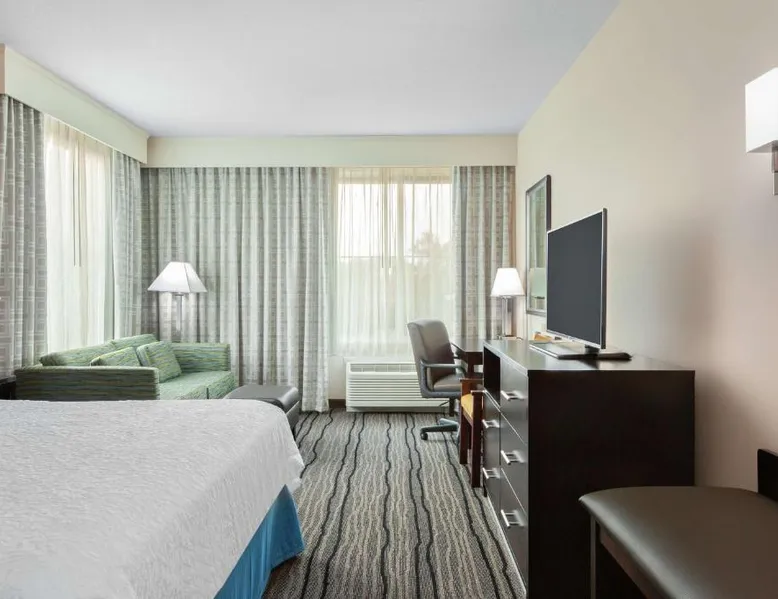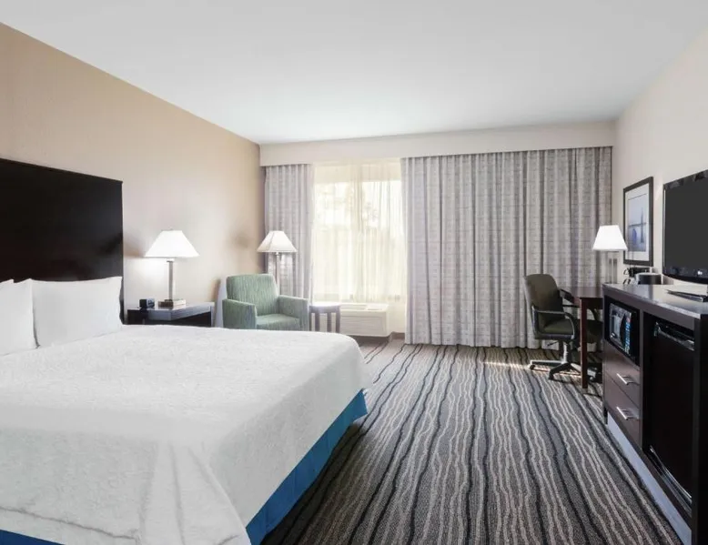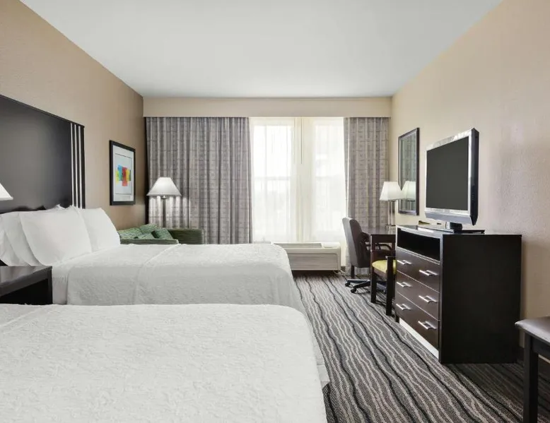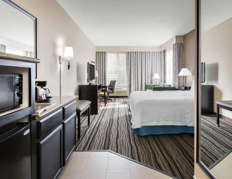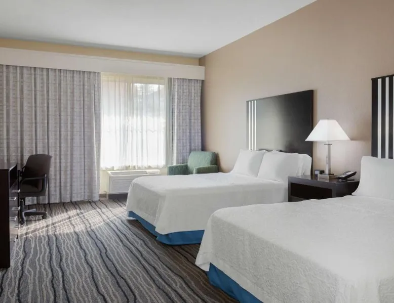 Located in downtown Mountain View, California, this hotel is 2 miles from Bayshore Sunnyvale Golf Course. It features a daily buffet breakfast and spacious rooms with free Wi-Fi. A microwave, refrigerator and coffee maker are furnished in every room at the Hampton Inn and Suites Mountain View. All rooms are warmly decorated with carpeted floors and include a cable TV and work desk. Free access to the gym and hot tub is provided to all guests of the Mountain View Hampton Inn. A business center and free on-site parking are also available. Stanford University and Paramount Great America theme park are both 7 miles from the hotel. San Jose International Airport is 11 miles away. This studio features a tea and coffee maker and a flat-screen TV. The unit has 2 beds.