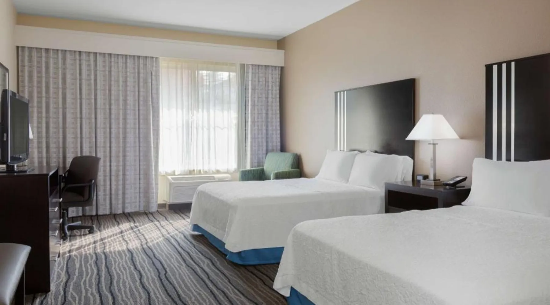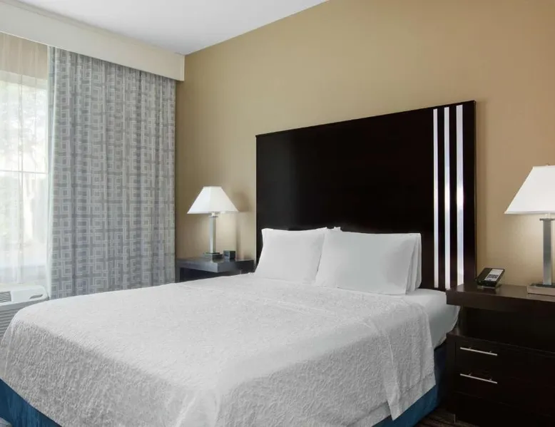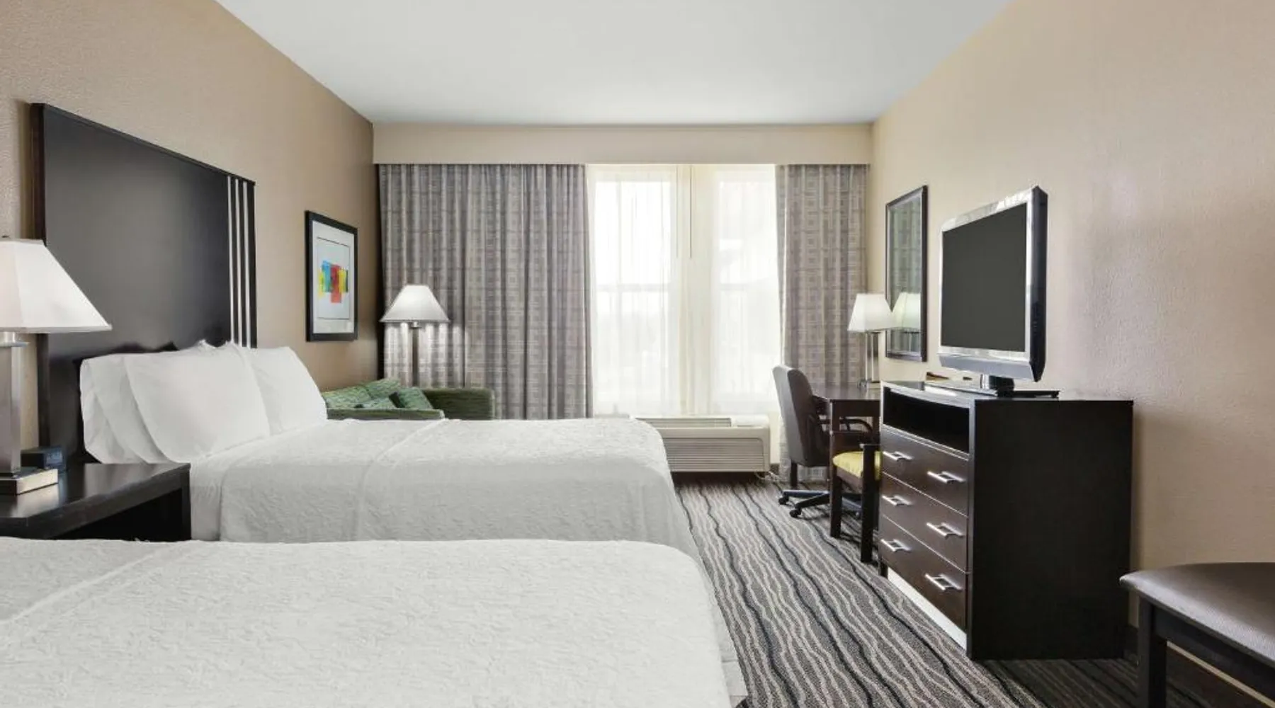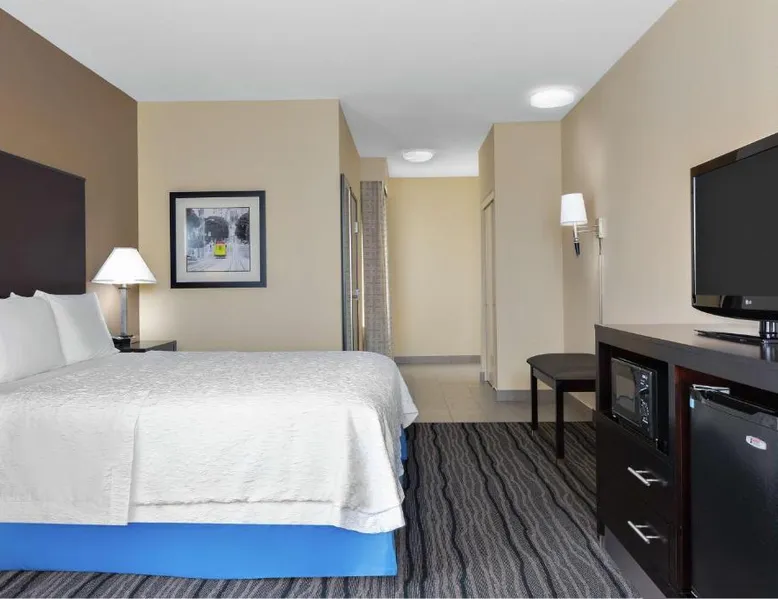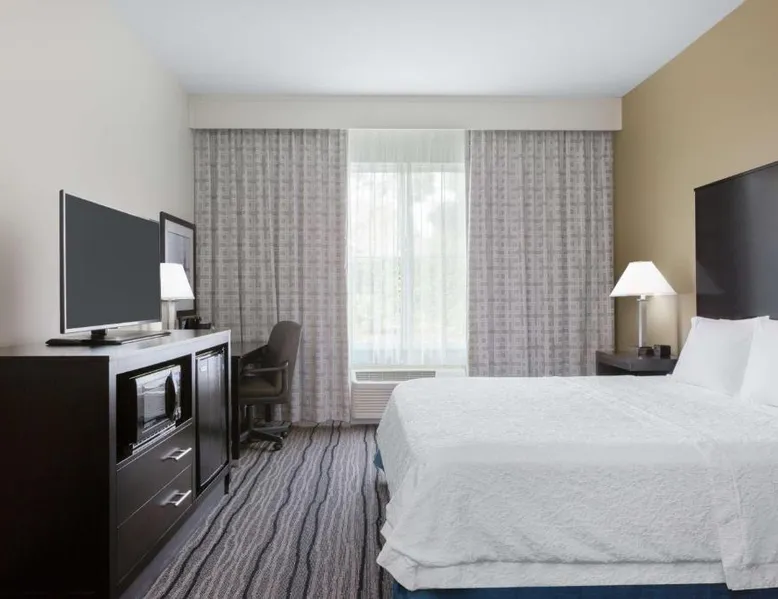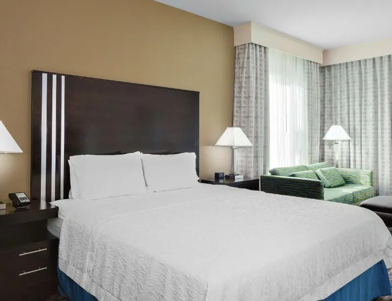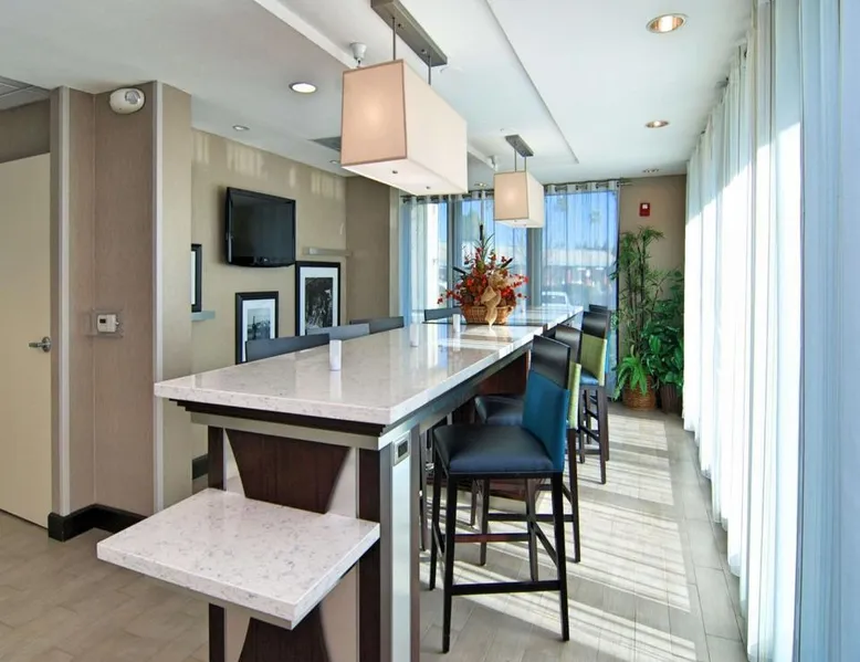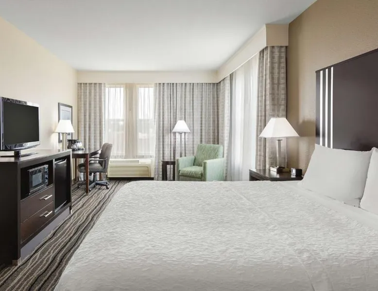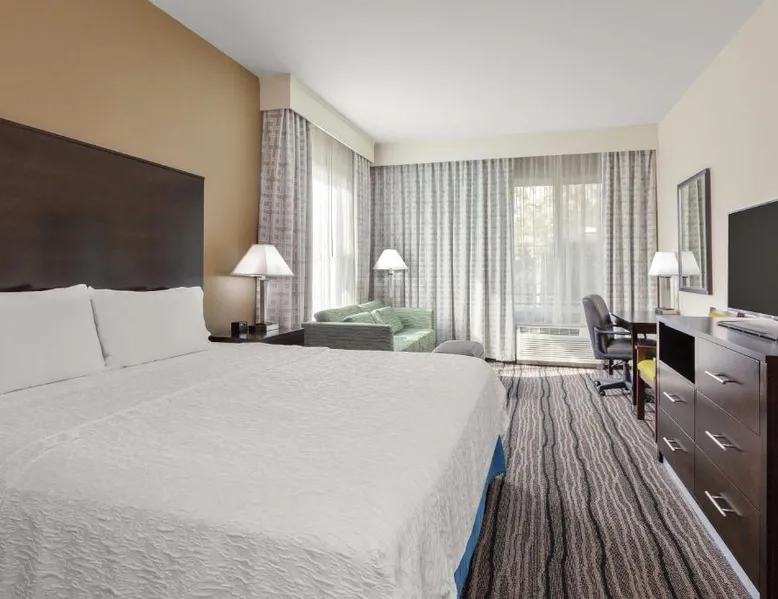 Located in downtown Mountain View, California, this hotel is 2 miles from Bayshore Sunnyvale Golf Course. It features a daily buffet breakfast and spacious rooms with free Wi-Fi. A microwave, refrigerator and coffee maker are furnished in every room at the Hampton Inn and Suites Mountain View. All rooms are warmly decorated with carpeted floors and include a cable TV and work desk. Free access to the gym and hot tub is provided to all guests of the Mountain View Hampton Inn. A business center and free on-site parking are also available. Stanford University and Paramount Great America theme park are both 7 miles from the hotel. San Jose International Airport is 11 miles away. This studio features a tea and coffee maker and a flat-screen TV. The unit has 2 beds.