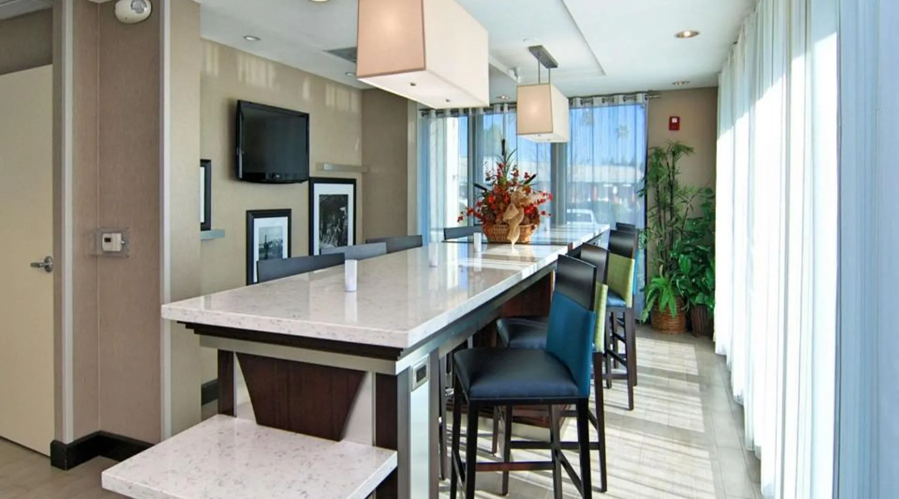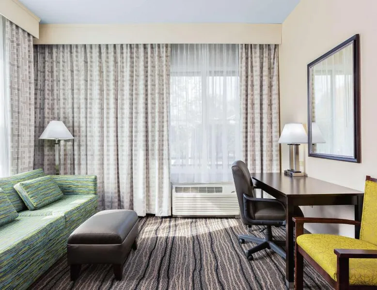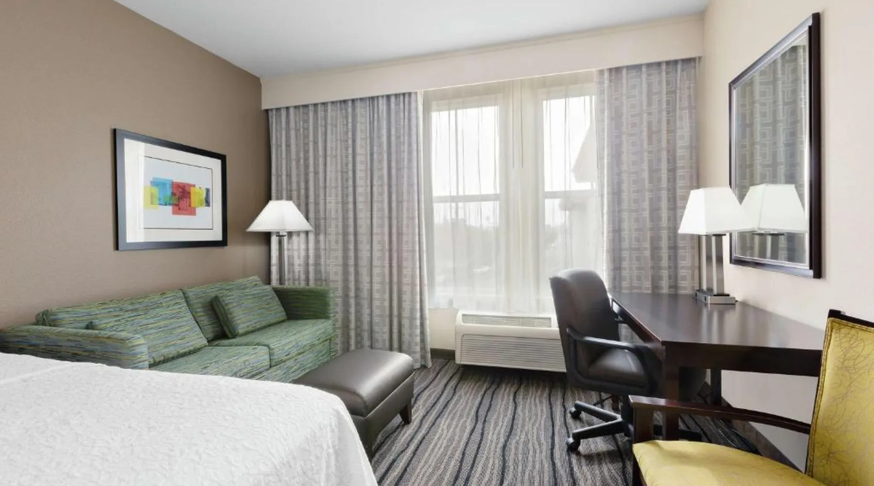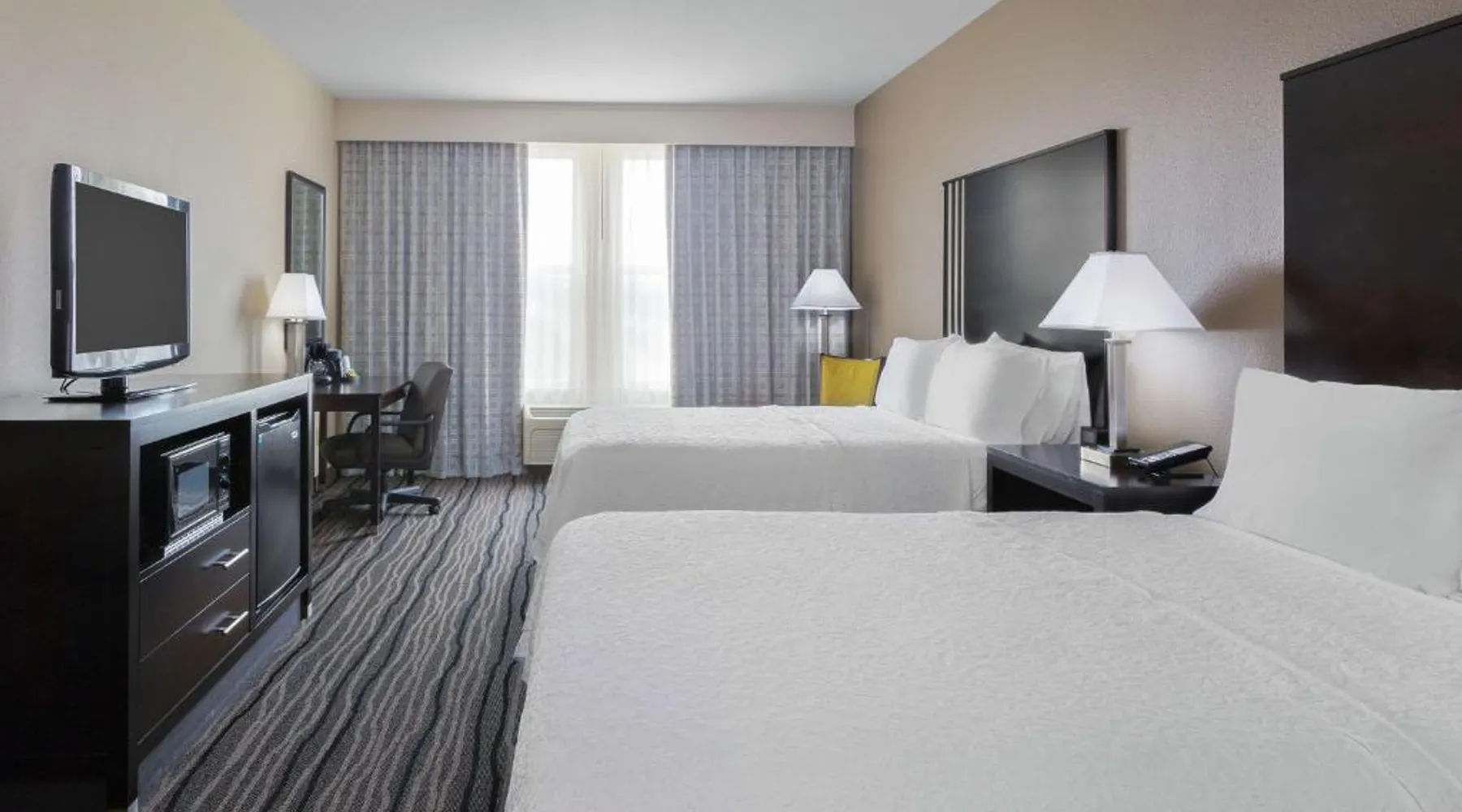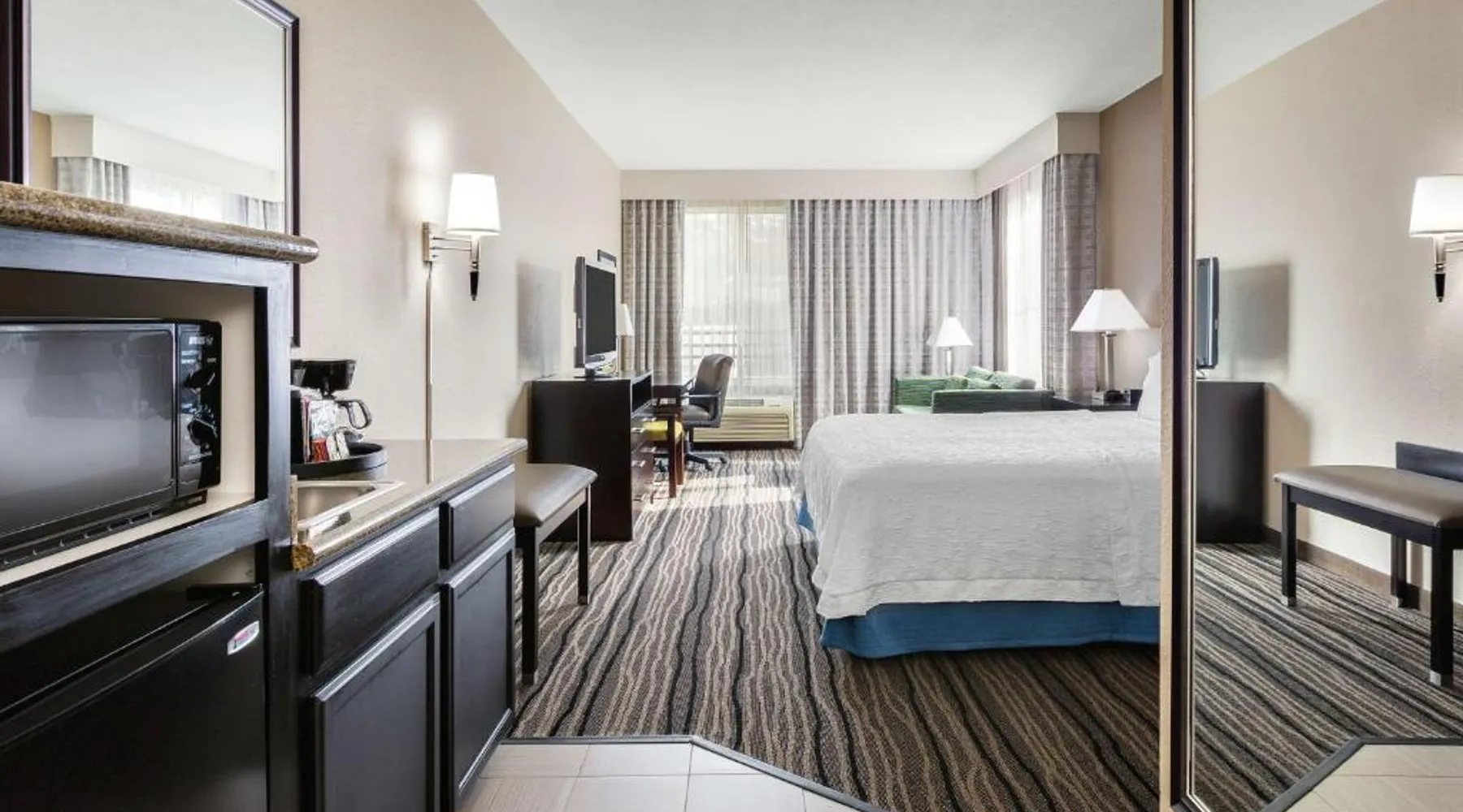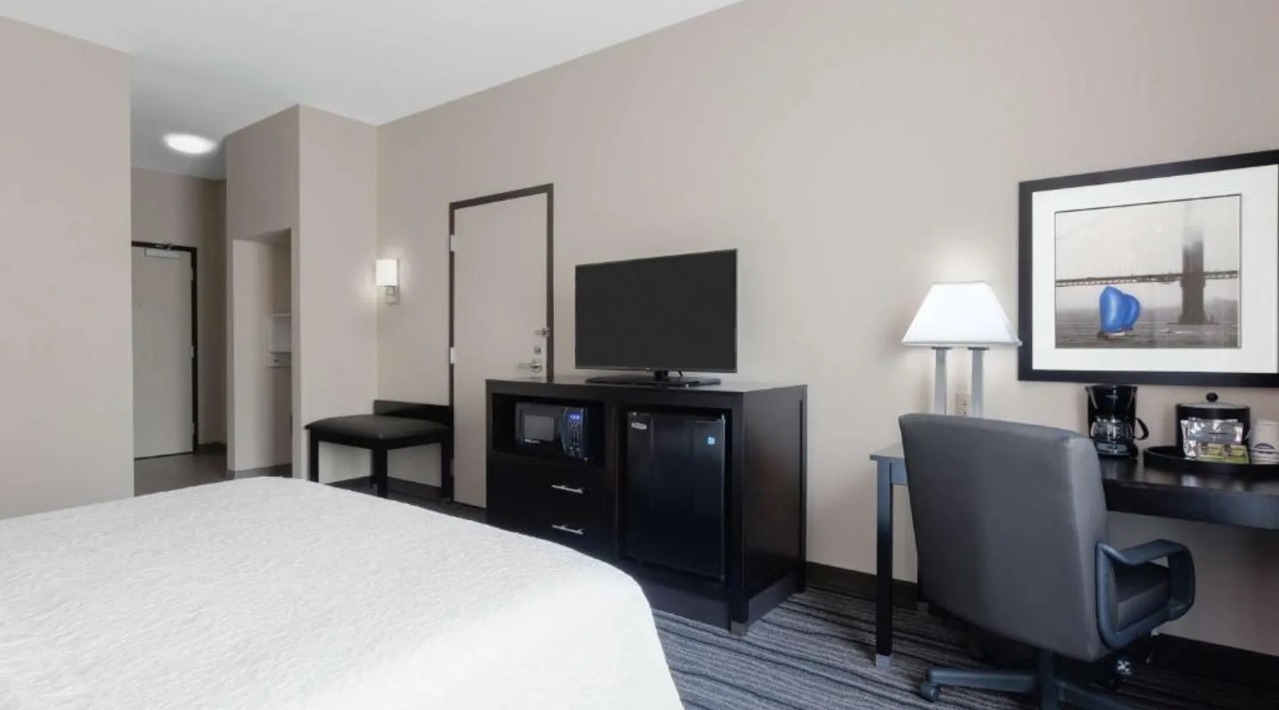 Located in downtown Mountain View, California, this hotel is 2 miles from Bayshore Sunnyvale Golf Course. It features a daily buffet breakfast and spacious rooms with free Wi-Fi. A microwave, refrigerator and coffee maker are furnished in every room at the Hampton Inn and Suites Mountain View. All rooms are warmly decorated with carpeted floors and include a cable TV and work desk. Free access to the gym and hot tub is provided to all guests of the Mountain View Hampton Inn. A business center and free on-site parking are also available. Stanford University and Paramount Great America theme park are both 7 miles from the hotel. San Jose International Airport is 11 miles away. This studio features a tea and coffee maker and a flat-screen TV. The unit has 2 beds.