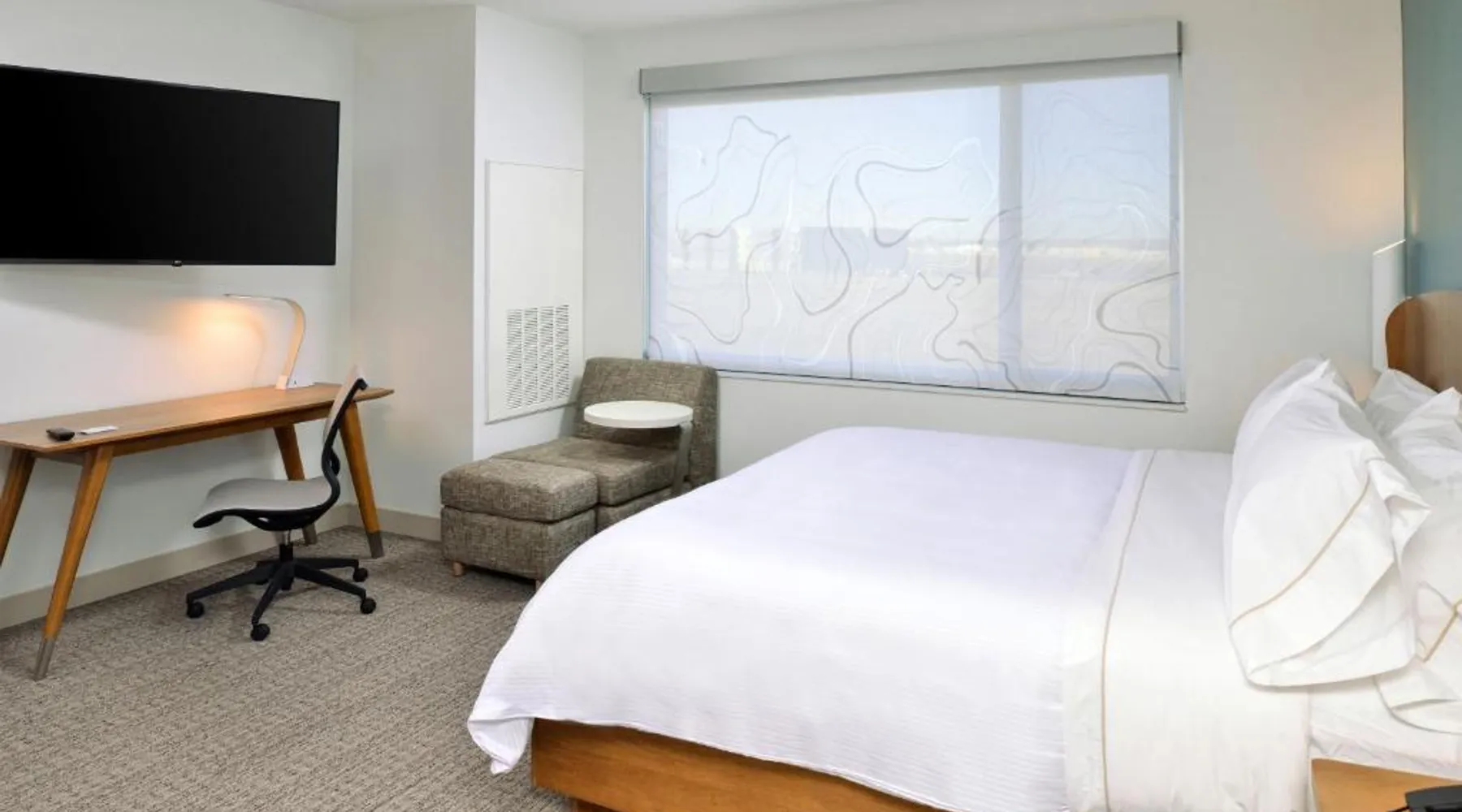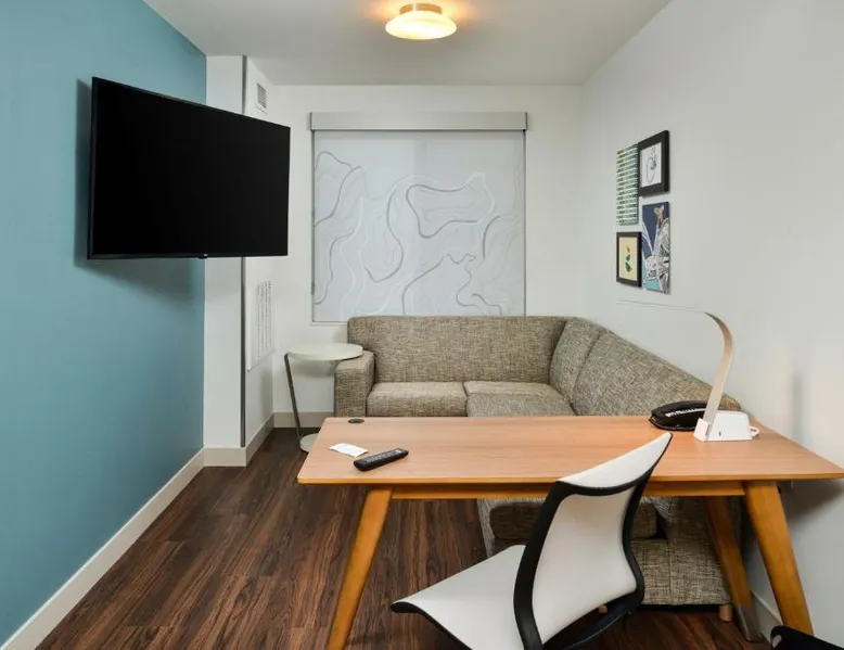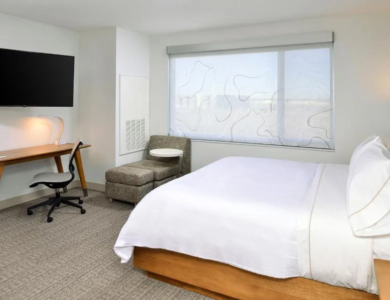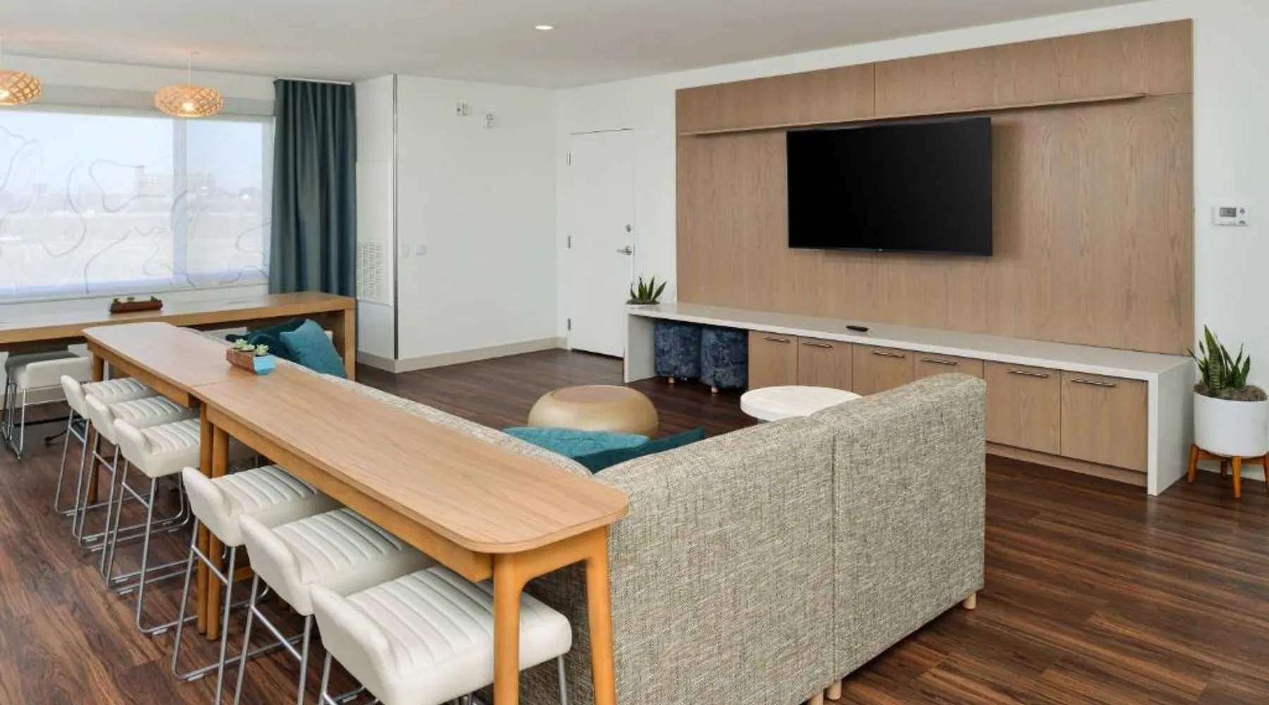 Comfortable Accommodations: Element North Kansas City in North Kansas City offers comfortable rooms with free WiFi, ensuring a pleasant stay. Exceptional Facilities: Guests can enjoy a fitness center, bar, indoor swimming pool, and free on-site parking. Additional amenities include a elevator, 24-hour front desk, and electric vehicle charging station. Convenient Location: Located 14 mi from Kansas City International Airport, the hotel is close to attractions such as T-Mobile Center (3.7 mi) and Union Station Kansas City (5 mi). Guest Satisfaction: Highly rated for its attentive staff, room cleanliness, and breakfast provided by the property. The unit offers 1 bed.