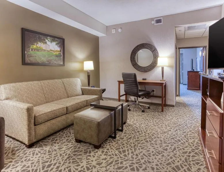 Comfortable Accommodations: Drury Inn & Suites Cincinnati Northeast Mason in Mason offers family rooms with air-conditioning, private bathrooms, and free WiFi. Each room includes a work desk, TV, and free toiletries. Exceptional Facilities: Guests can enjoy an indoor swimming pool, fitness center, and hot tub. Additional amenities include a fitness room, elevator, 24-hour front desk, housekeeping service, and a business area. Delicious Breakfast: A buffet breakfast is provided each morning, highly praised by guests for its quality and variety. Prime Location: Located 5 mi from Kings Island and 14 mi from Cincinnati Observatory Center, the hotel is near attractions such as Cincinnati Zoo and Botanical Garden and Great American Ball Park. This air-conditioned quadruple room is consisted of of a flat-screen TV with cable channels and a private bathroom. The unit has 2 beds.