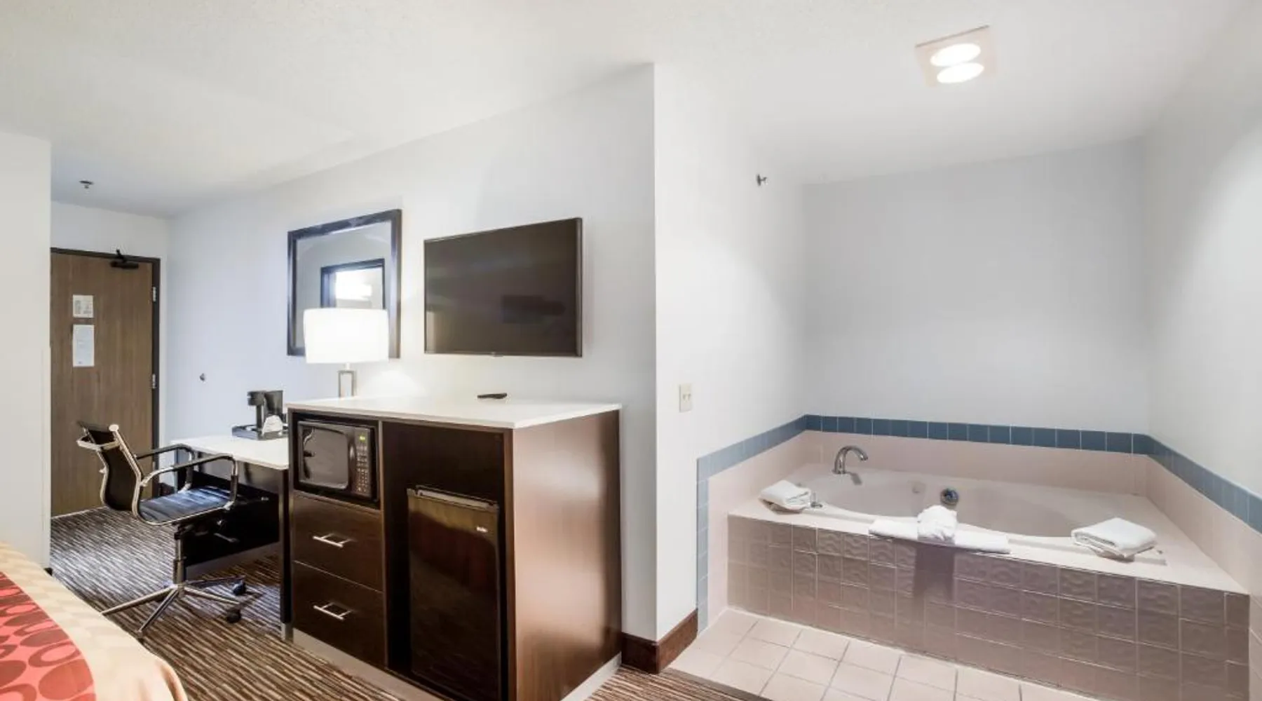 Comfortable Accommodations: Americas Best Value Inn Charlotte in Charlotte offers air-conditioned rooms with private bathrooms, free WiFi, and essential amenities including a work desk, TV, and free toiletries. Convenient Facilities: Guests enjoy a lounge, 24-hour front desk, housekeeping service, and free on-site parking. Additional features include a hot tub, spa bath, and ground-floor units. Delicious Breakfast: A continental buffet breakfast with juice is served daily, providing a pleasant start to the day. Prime Location: Located 24 mi from Capital Region International Airport, the inn is near attractions such as Michigan State University (25 mi) and Firekeepers Casino (27 mi). Guests appreciate the friendly staff and excellent service. Offering free Wi-Fi and a TV with premium cable channels, this room includes tea and coffee-making facilities.