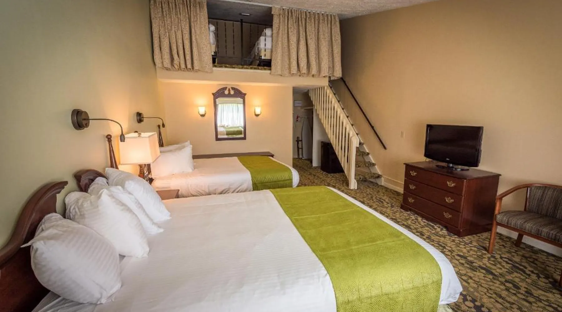 Set in North Conway, Fox Ridge Resort offers accommodations with a restaurant, free private parking, a seasonal outdoor swimming pool and a garden. Featuring family rooms, this property also provides guests with a children's playground. The accommodations features an indoor pool, free WiFi throughout the property and a 24-hour front desk. The units come with air conditioning, a flat-screen TV with cable channels, a fridge, a coffee machine, a shower, a hairdryer and a desk. All rooms come with a private bathroom with a bath and free toiletries. At the resort, all rooms include a seating area. The accommodations offers 3-star accommodations with a hot tub and sun terrace. Guests at Fox Ridge Resort will be able to enjoy activities in and around North Conway, like hiking, skiing and cycling. A business center and vending machines with drinks and snacks are available on site at the resort. Mount Cranmore is less than 0.6 mi from Fox Ridge Resort, while Merriman State Forest is 3.1 mi away. The nearest airport is Portland International Jetport Airport, 66 mi from the accommodations. This spacious room is furnished with 2 queen beds and a full bath on the main level and 2 twin beds in the loft area.
