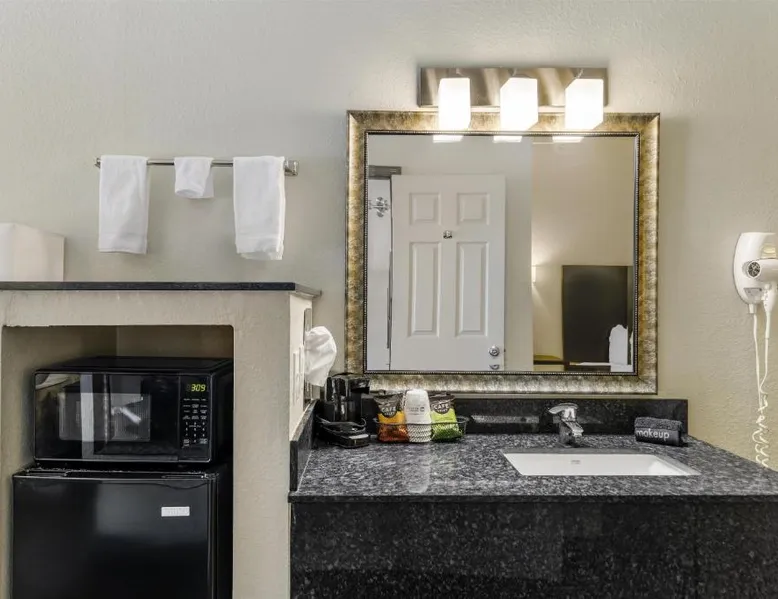 Comfortable Accommodations: Best Western West Monroe Inn in West Monroe offers family rooms with free WiFi, air-conditioning, and modern amenities. Each room includes a tea and coffee maker, hairdryer, refrigerator, and microwave. Relaxing Facilities: Guests can enjoy a saltwater swimming pool, sun terrace, and hot tub. The property features a lounge, outdoor seating area, and a business area. Free on-site parking is available. Dining Experience: A complimentary American breakfast is served daily. Additional services include room service, express check-in and check-out, and a 24-hour front desk. Convenient Location: Located 8.1 mi from Monroe Regional Airport, the hotel is near attractions such as Ike Hamilton Expo Center (2.1 mi) and Malone Stadium (7.5 mi). Guests appreciate the attentive staff and room cleanliness. The double room features a tea and coffee maker. The unit has 1 bed.