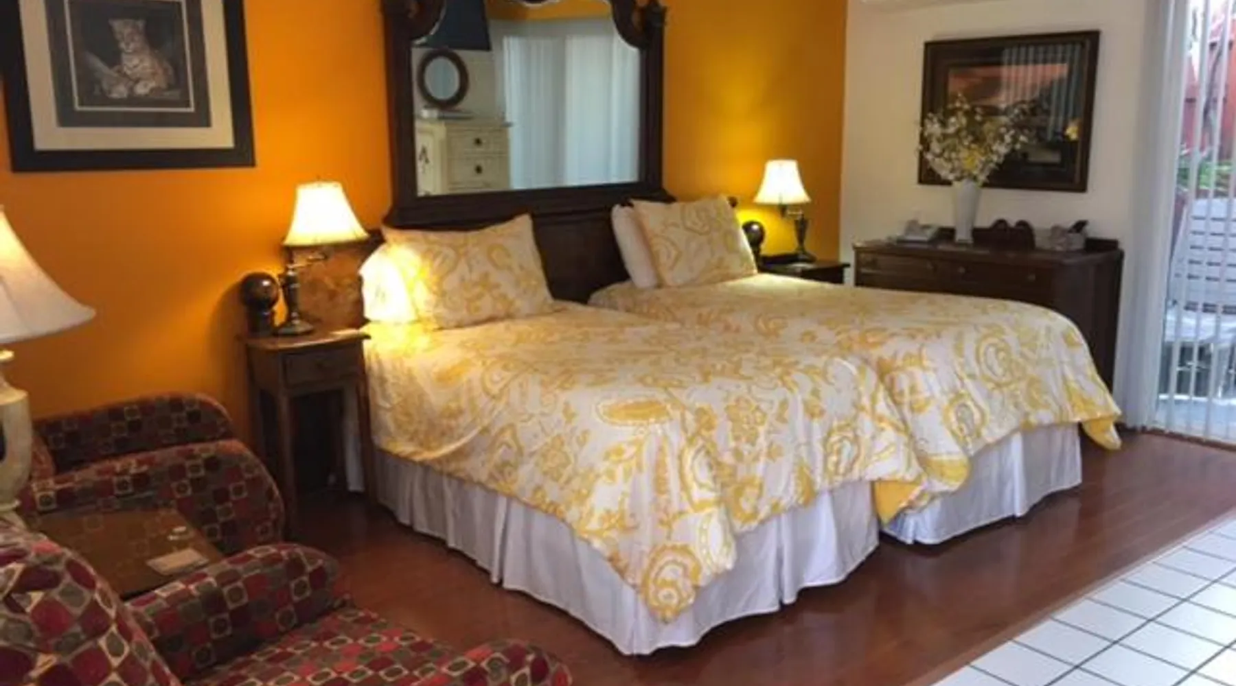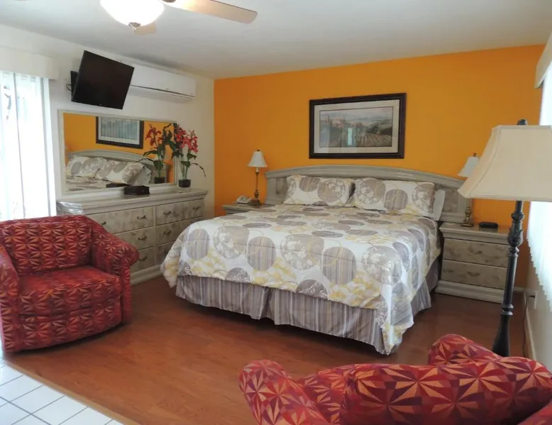 Located in Palm Desert town center, this quaint inn offers guests an outdoor, solar heated salt water pool and hot tub and rooms with private patios and lounge chairs. Palm Springs International Airport is 25 minutes’ drive away. Free Wi-Fi, a flat-screen TV and tea and coffee-making facilities are offered in all rooms at the Casa Larrea Inn. Select rooms feature full kitchens. All of the temperature-controlled rooms at this inn feature their own unique décor. Guests can relax in the courtyard at the Palm Desert Casa Larrea Inn where there are BBQ facilities surrounded by fruit trees. Free on-site parking is available to guests. Shopping, art galleries and restaurants are within walking distance and numerous golf courses are just a drive away. The Palm Desert Living Desert Zoo and Botanical Gardens are 5 minutes’ drive away from the inn and the College of the Desert is 2 miles away. Room features a kitchen, a patio and a flat-screen TV.