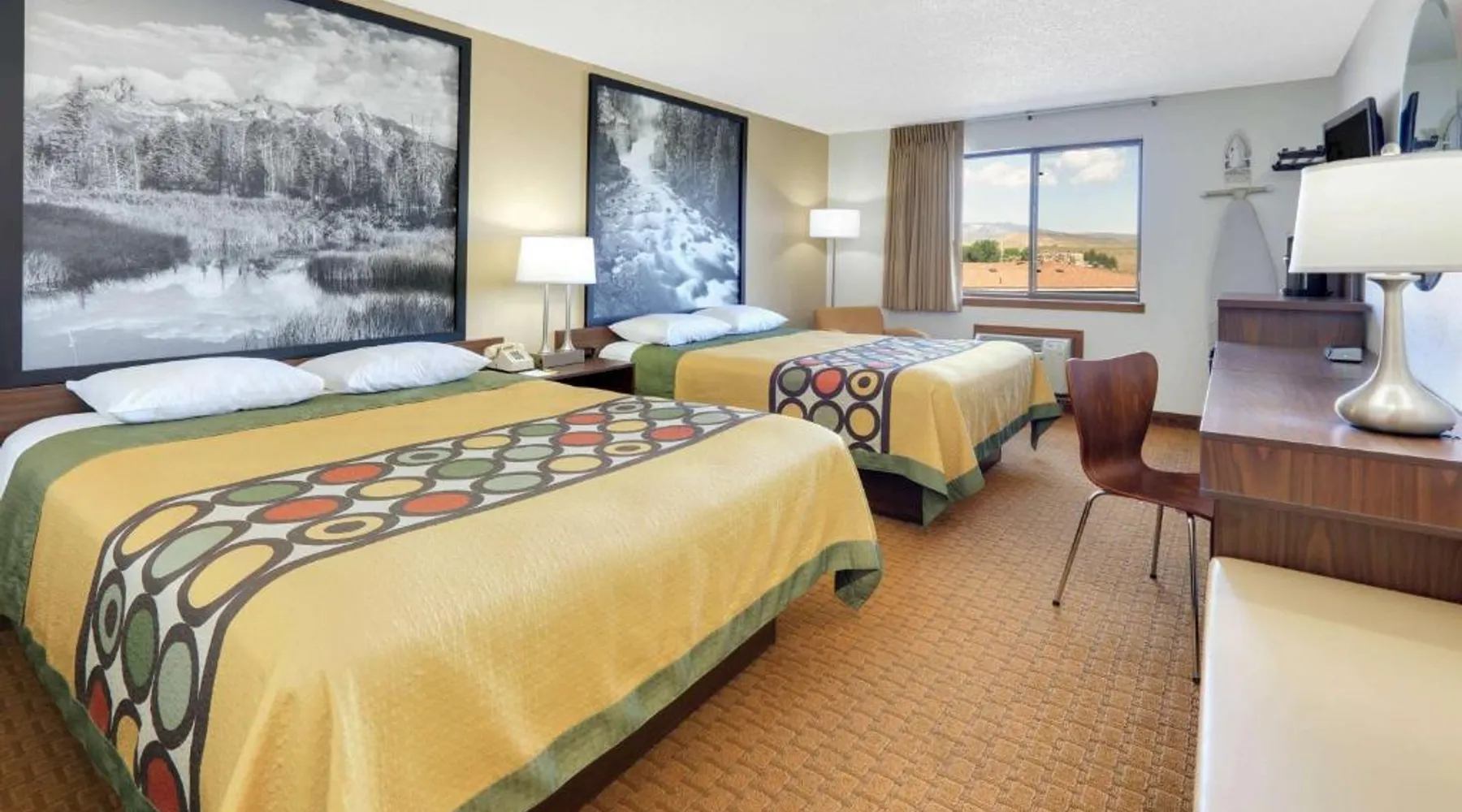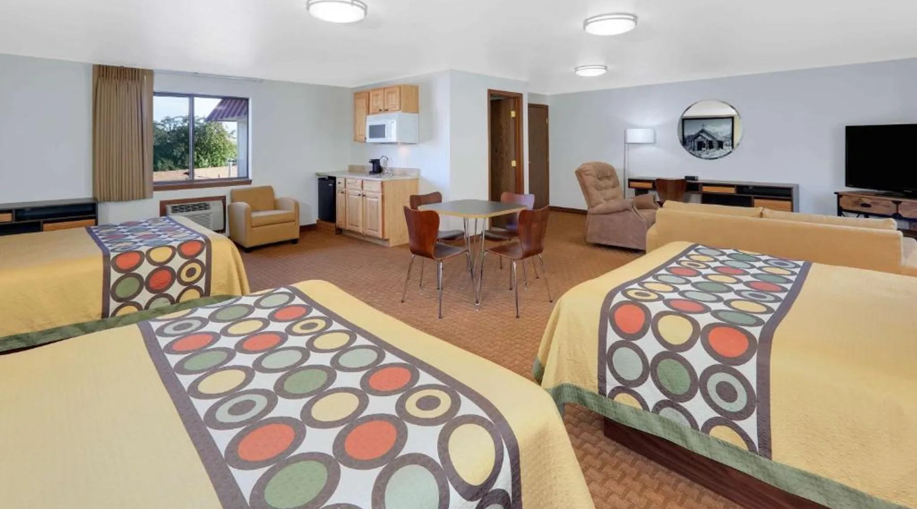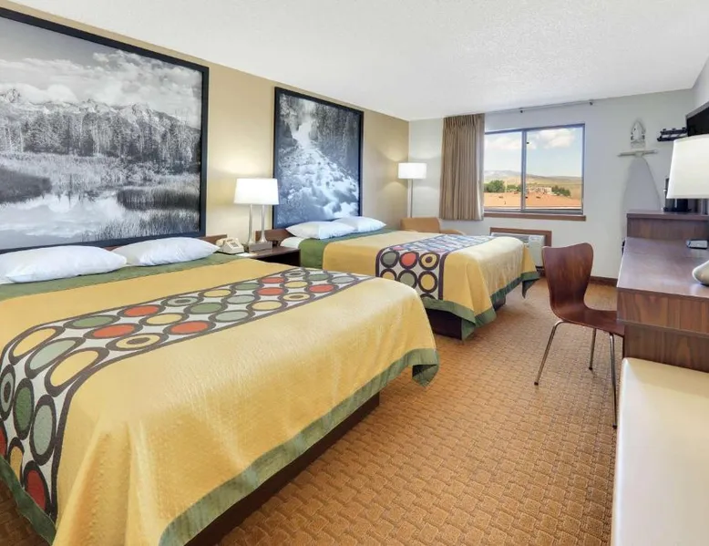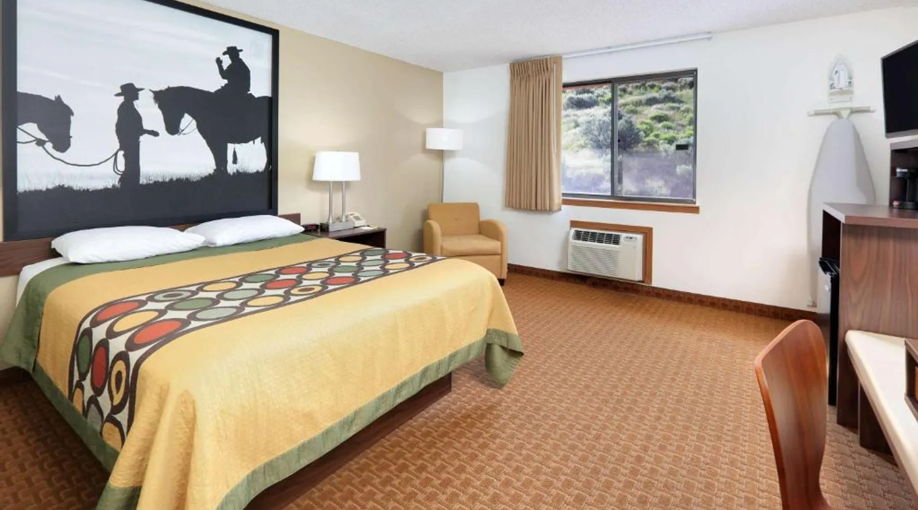 Comfortable Accommodations: Super 8 by Wyndham Cody in Cody offers family rooms with air-conditioning, private bathrooms, and mountain views. Each room includes a tea and coffee maker, refrigerator, work desk, and free toiletries. Essential Facilities: Guests enjoy free WiFi, a lounge, 24-hour front desk, daily housekeeping, business area, outdoor seating, and free on-site parking. Additional amenities include a sofa bed, walk-in shower, and seating area. Convenient Location: Located 2.5 mi from Yellowstone Regional Airport, the hotel is highly rated for room cleanliness, attentive staff, and its convenient location. Featuring free toiletries, this suite includes a private bathroom with a bath, a shower and a hairdryer. The air-conditioned suite features a flat-screen TV with cable channels, a tea and coffee maker, a safe deposit box, a carpeted floor as well as mountain views. The unit has 1 bed.