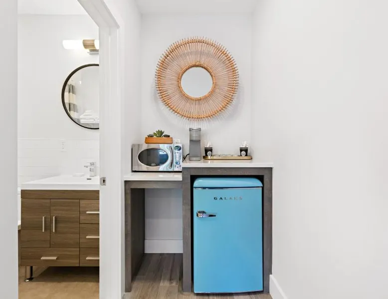 Located on the Manasquan Inlet in Point Pleasant Beach, Casa del Mar offers rooms with a patio or terrace where guests can relax with a cup of coffee. Free WiFi is available throughout the property. A flat-screen cable TV is provided in each room at the property. Guests are also offered a seating area, a microwave, a refrigerator and a granite bathroom with free toiletries. The beach and boardwalk at Point Pleasant are just 5 minutes’ walk from Casa del Mar. Jenkinson’s Aquarium is 0.6 mi away. This room with 1 queen bed has a small refrigerator, microwave and coffee maker.