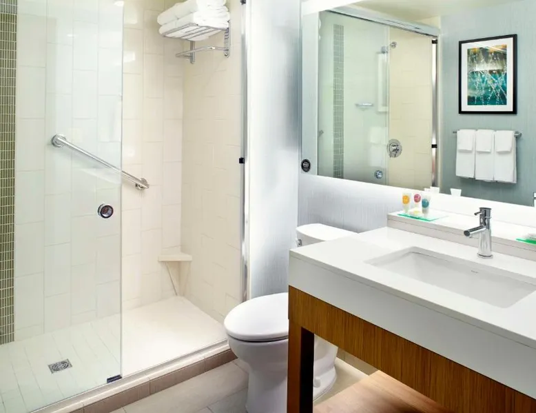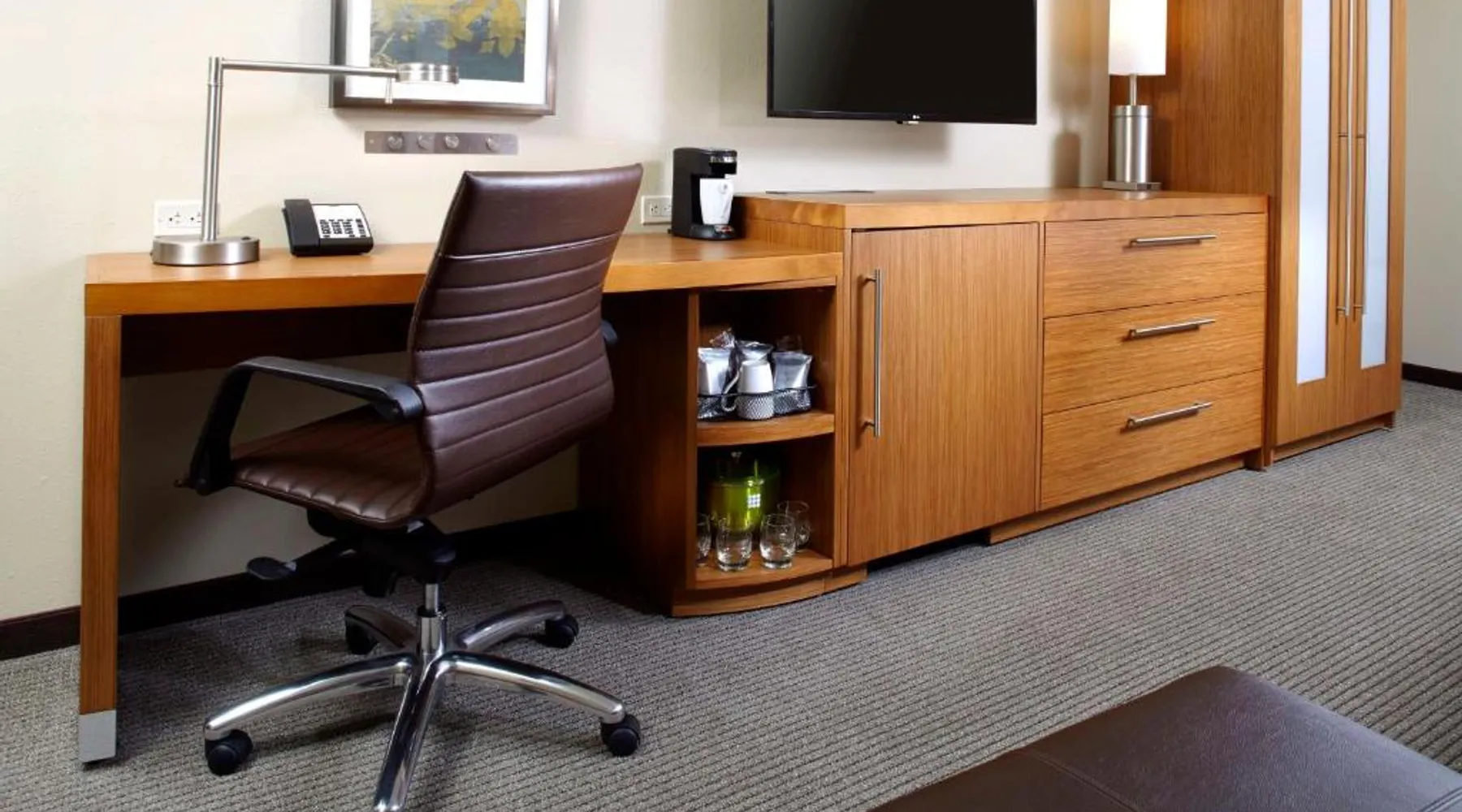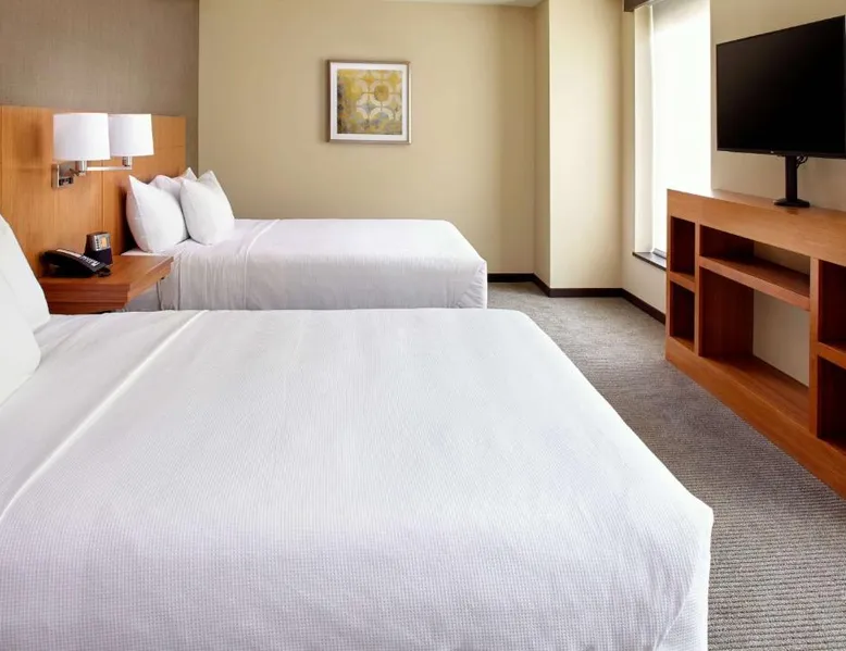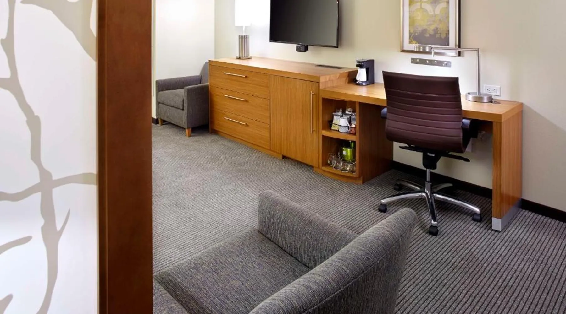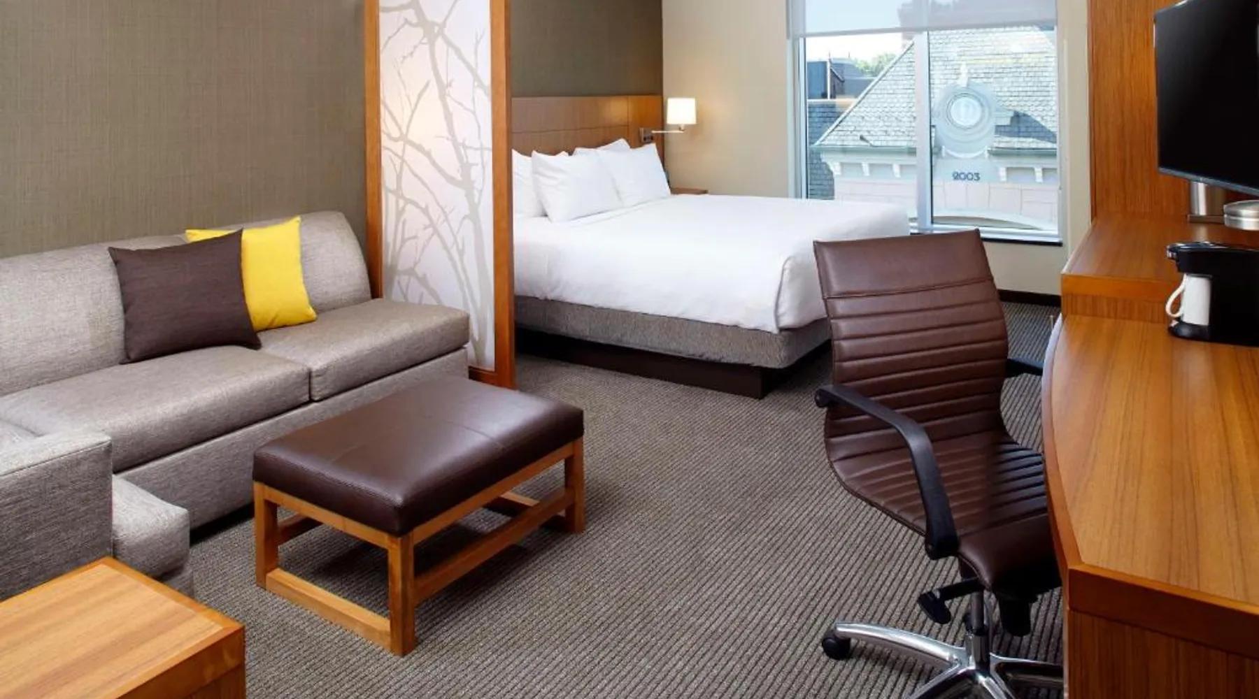 Comfortable Accommodations: Hyatt Place Cleveland/Lyndhurst/Legacy Village in Lyndhurst offers family rooms with air-conditioning, private bathrooms, and modern amenities. Each room includes a tea and coffee maker, hypoallergenic bedding, and free WiFi. Dining and Leisure: The family-friendly restaurant serves American cuisine, complemented by a bar. Guests can also enjoy an indoor swimming pool, fitness center, and lounge. Free on-site parking is available. Prime Location: Located a few steps from Contessa Gallery and a 17-minute walk to Beachwood Place Mall, the hotel is near attractions such as Cleveland Cinemas and Canterbury Golf Club. Guests appreciate the convenient location and nearby shops. This room includes a separate living area and a sofa bed.