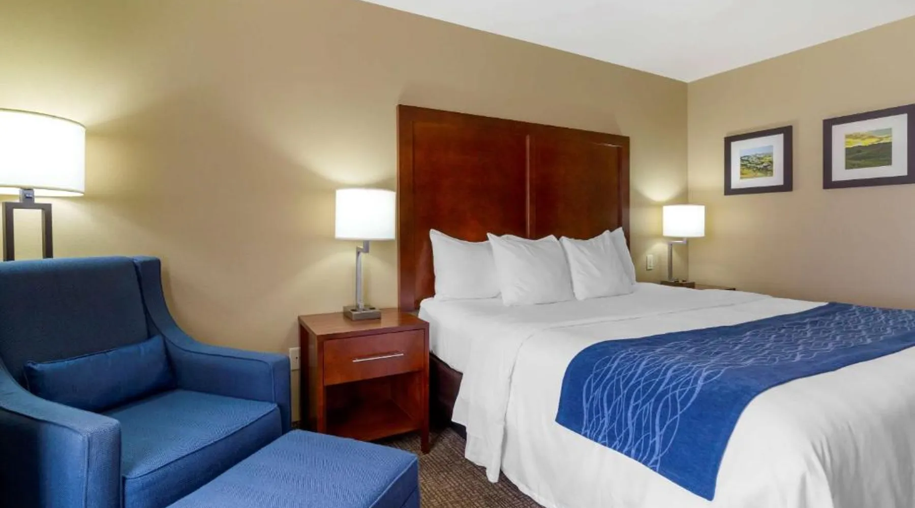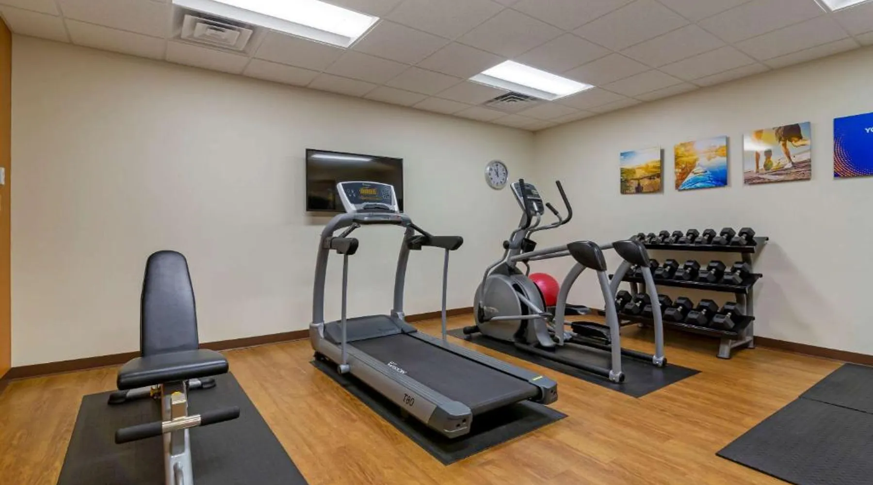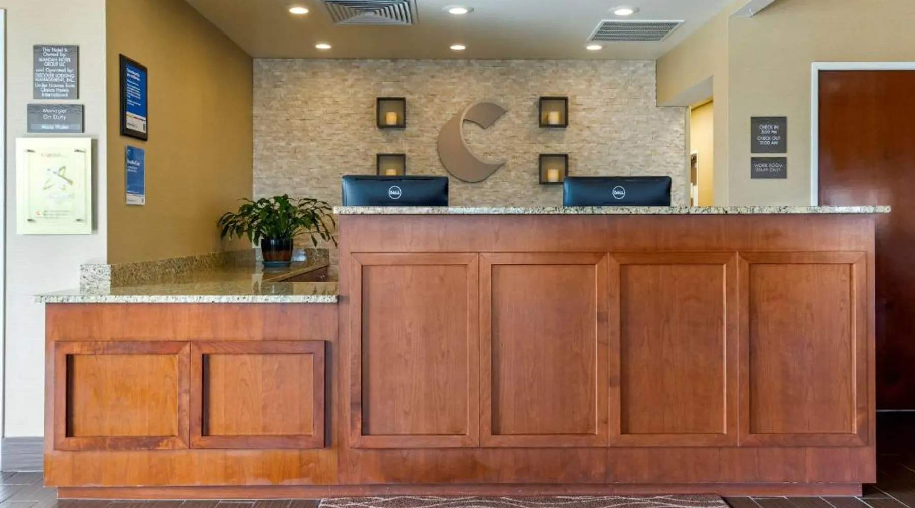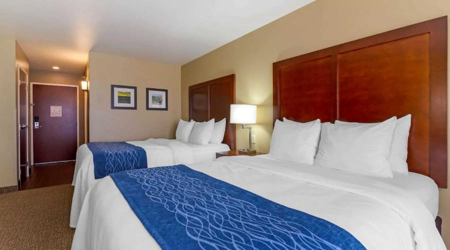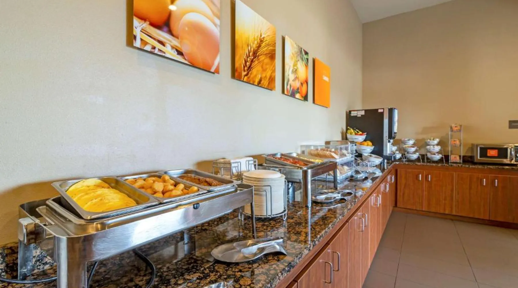 Comfortable Accommodations: Comfort Inn & Suites Mandan in Mandan offers family rooms with air-conditioning, private bathrooms, and modern amenities. Each room includes a work desk, refrigerator, microwave, TV, and free WiFi. Leisure Facilities: Guests can enjoy a fitness center, indoor swimming pool, and hot tub. Additional facilities include a lounge, outdoor fireplace, and outdoor seating area. Dining Options: A complimentary American buffet breakfast is served daily, featuring warm dishes, fresh pastries, fruits, and juice. Convenient Location: Located 9.9 mi from Bismarck Municipal Airport, the hotel is near attractions such as North Dakota State Capitol (8.7 mi), Bismarck State College (6.2 mi), and Dakota Zoo (6.8 mi). Free on-site private parking is available. A seating area with a work desk, a flat-screen cable TV and an private bathroom are featured in this air-conditioned room. A microwave, a small refrigerator and coffee-making facilities are also included.