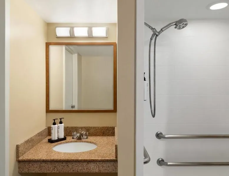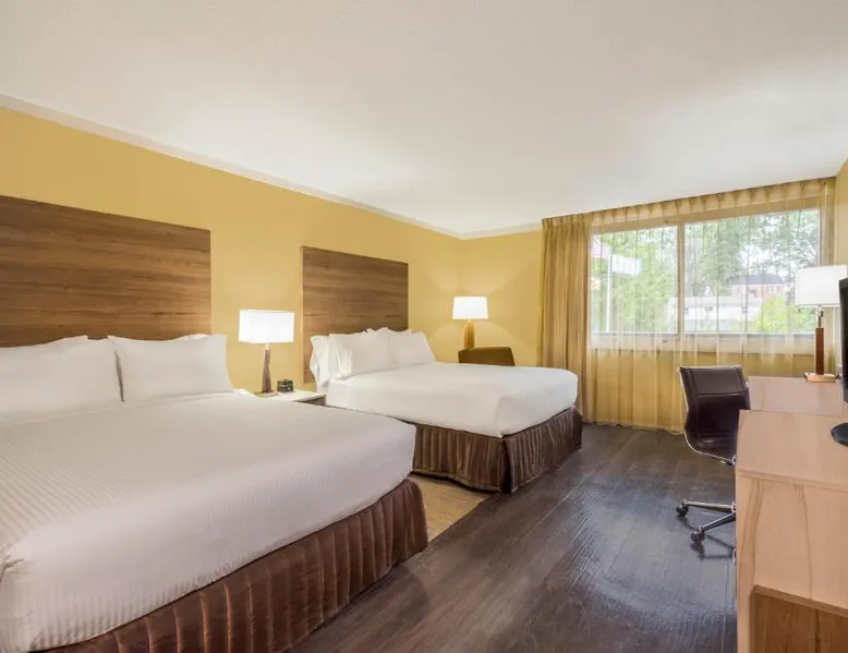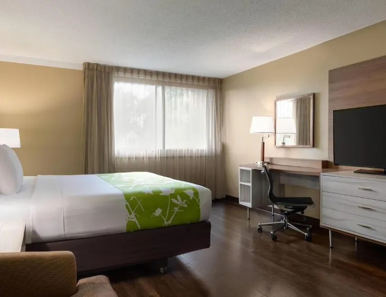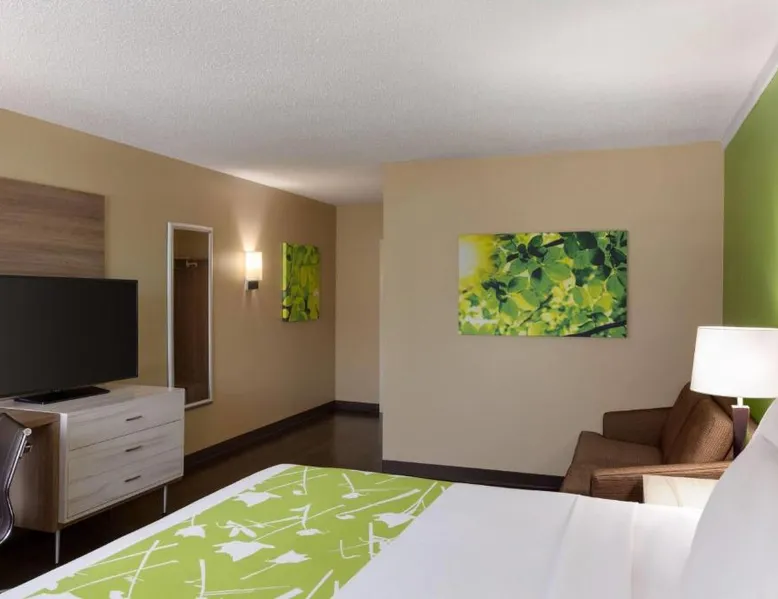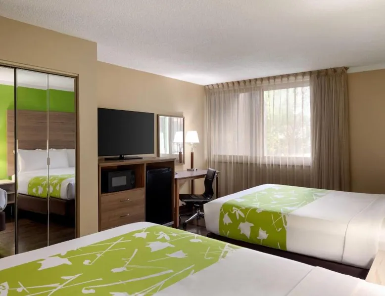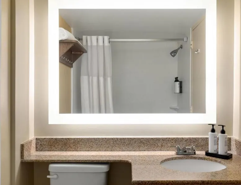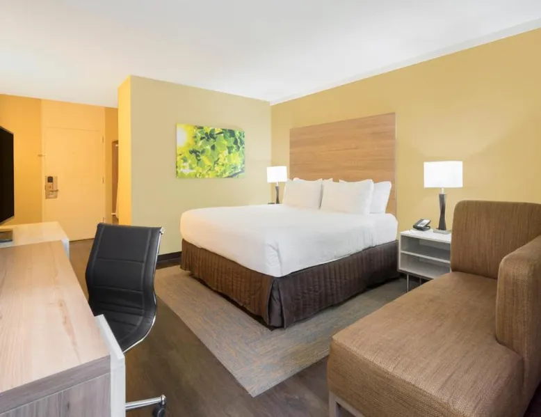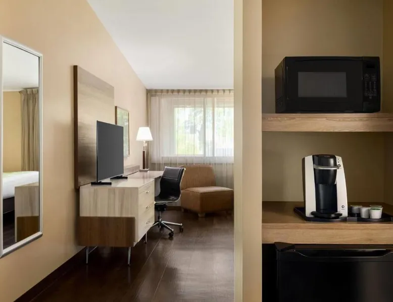 Located along the Baltimore/Washington Parkway, this hotel offers free Wi-Fi and air-conditioned rooms with cable TV. A work desk and a seating area are in Wyndham Garden Washington DC North rooms. Each room comes with hardwood floors and white linens. Toiletries and a hairdryer are in the private bathroom. A gym is available at the Wyndham Garden Washington DC North. Guests can also make use of the business center. There is a full American breakfast buffet available daily. Wyndham Garden Washington DC North is just 2.75 miles from Washington DC. Six Flags is an 8-mile drive away. This room features wood floors, seating area, a mini microwave and refrigerator.