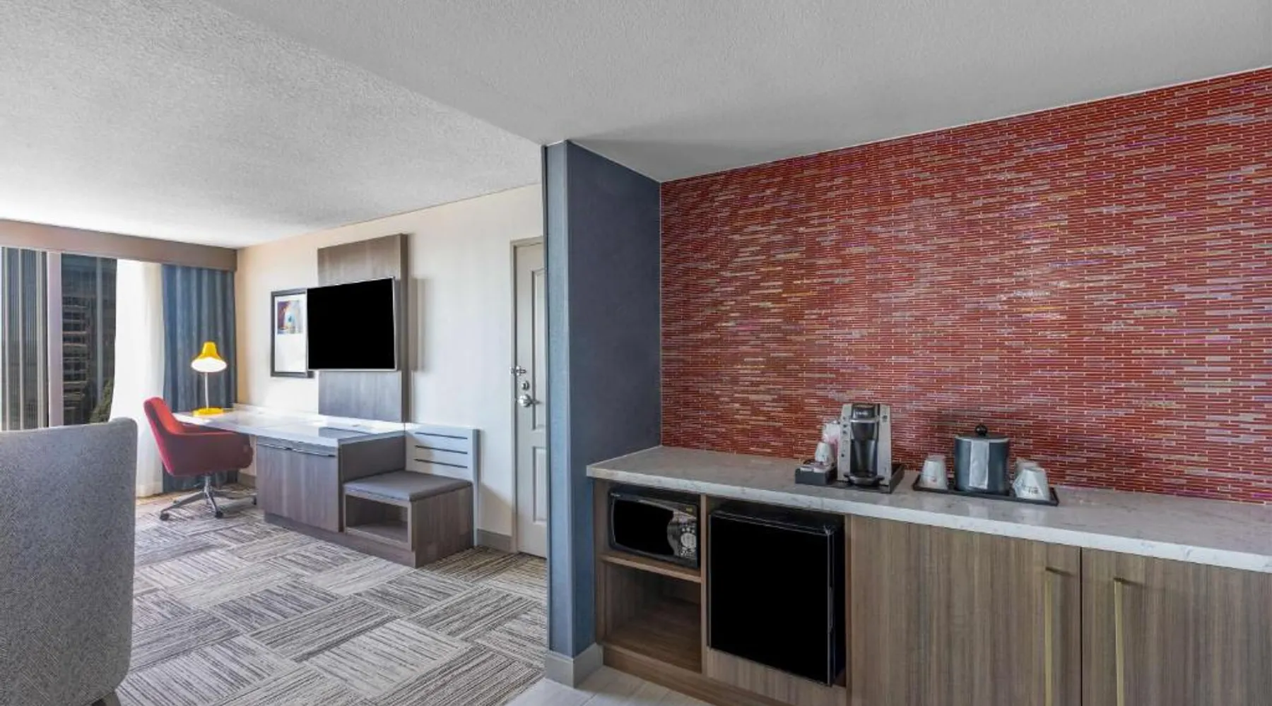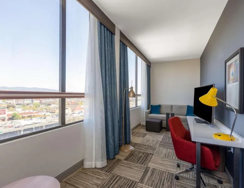 Hilton Garden Inn San Francisco/Oakland Bay Bridge is located just off I-80 and I-580. It features an on-site restaurant and lounge, and a modern fitness center. The warmly decorated rooms offer free WiFi access, a flat-screen TV, a microwave, and a refrigerator. A 24-hour front desk, business center, and ATM are available. The on-site Great American Grill serves traditional American dishes for breakfast, lunch, and dinner. The Pavilion Lounge offers drinks and appetizers. An on-site convenience mart, the Pavilion Pantry, sells snacks and microwaveable meals. Bay Street shopping and dining is just 0.5 mi from Hilton Garden Inn San Francisco. Claremont Country Club is 5 mi away. Oakland International Airport is 12 mi away. Featuring mountain views and a flat-screen TV with cable, this room is equipped with tea and coffee-making facilities, a fridge and microwave.