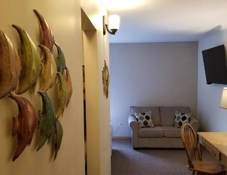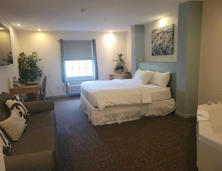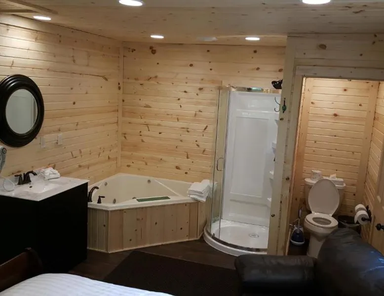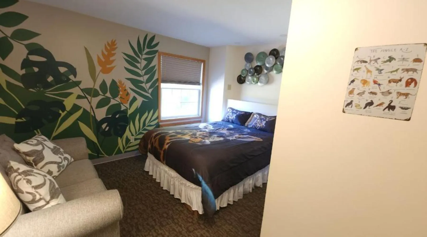 Comfortable Accommodations: Brook Pointe Resort in Syracuse offers family rooms with private bathrooms, air-conditioning, and free WiFi. Each room includes a work desk, dining table, and TV, ensuring a pleasant stay. Leisure Facilities: Guests can enjoy a fitness center, indoor swimming pool, and a beautiful garden. Additional amenities include an outdoor fireplace, outdoor seating area, and a games room, providing ample opportunities for relaxation and entertainment. Convenient Location: Located 45 mi from South Bend Regional Airport and 26 mi from the Midwest Museum of American Art, the hotel offers easy access to local attractions. Free on-site parking and a 24-hour front desk enhance the guest experience. Guest Services: The property staff and service support are highly praised for their attentiveness and excellent service. Guests appreciate the convenient location, room cleanliness, and the variety of leisure facilities available. This uniquely decorated room features a TV, a seating area, and a work desk. A spa bath is also included.