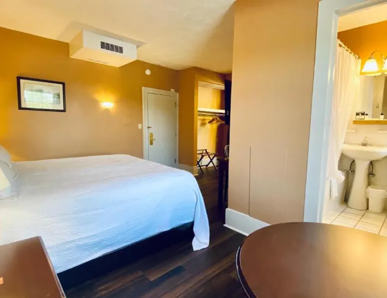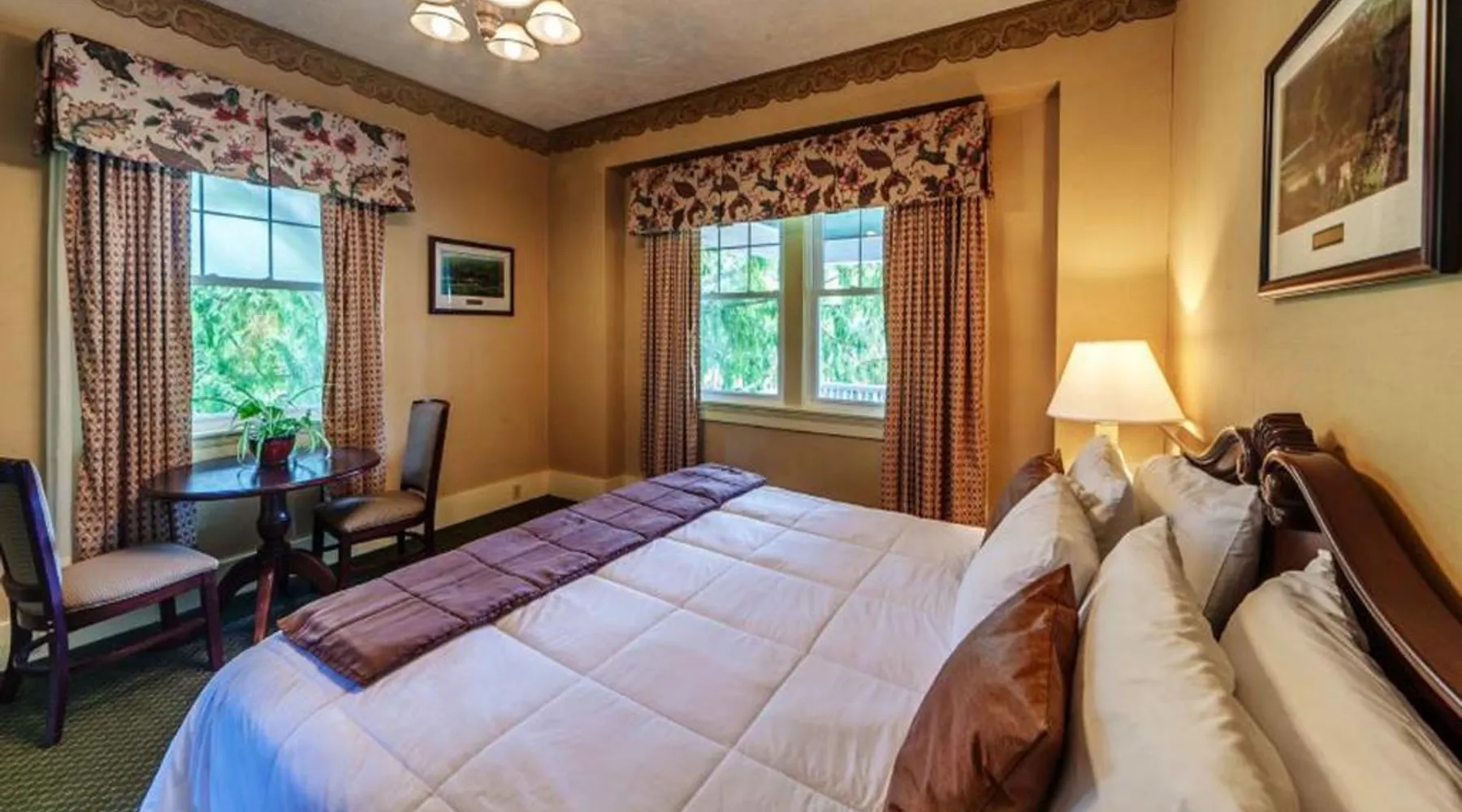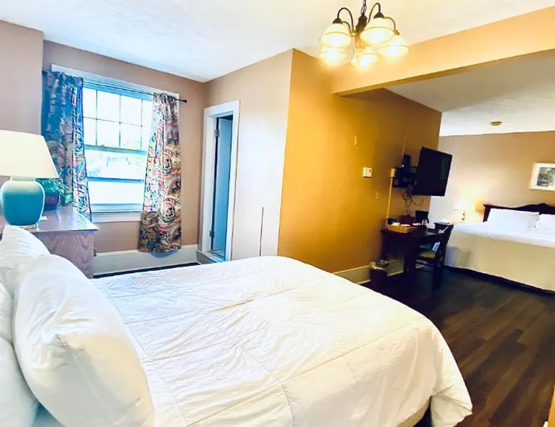 Located in the Poconos Mountains and located on the banks of the Delaware River, The Shawnee Inn and Golf Resort offers free WiFi, an indoor pool, and rooms equipped with plush bedding. Offering Direct TV, rooms feature dark wood furnishing and a work desk. An private bathroom is also included at Shawnee Inn. Guests can enjoy 27 holes of golf on an island golf course. Private guided hikes, brewery tours and camp fires are available for a surcharge. Canoeing, rafting and kayaking are also available on the Delaware River for a surcharge. River Room Restaurant and Bar and The Gem and Keystone Brewpub each offers seasonal cuisine and a selection of beers that are brewed on-site. Guests can workout in the fitness center or use the business center that offers fax and photocopying services. Shawnee Inn and Golf Resort is 3 miles from Shawnee Mountain Ski Area. East Stroudsburg University of Pennsylvania is 10 minutes’ drive and Mount Airy Casino Resort is 18 miles away. Overlooking the golf course, this room features a refrigerator, a microwave and a TV with DIRECTV satellite channels. Please note, this room is not located in the main building. Located 200 yards from the Main Inn.
