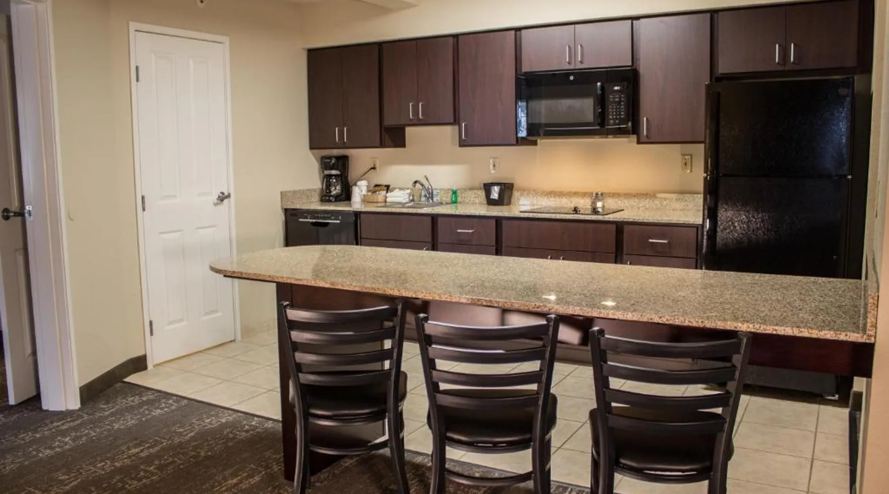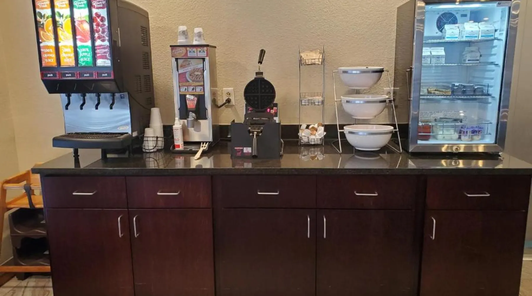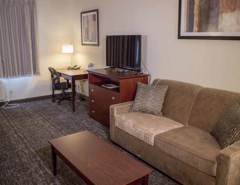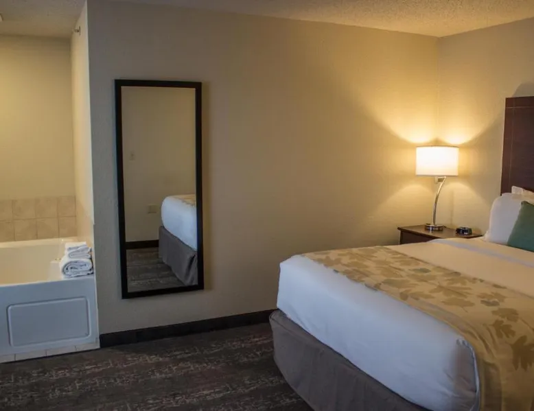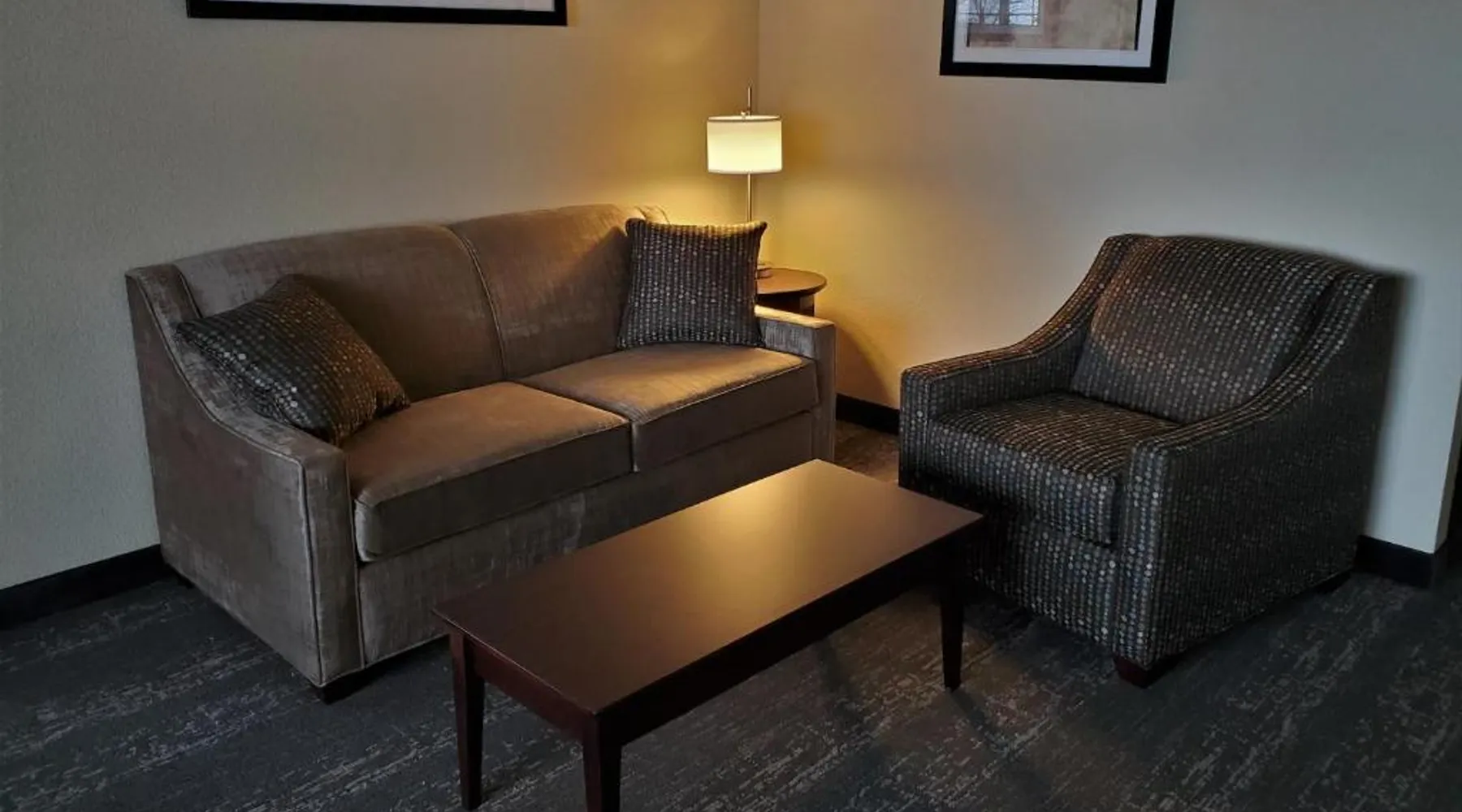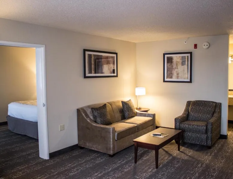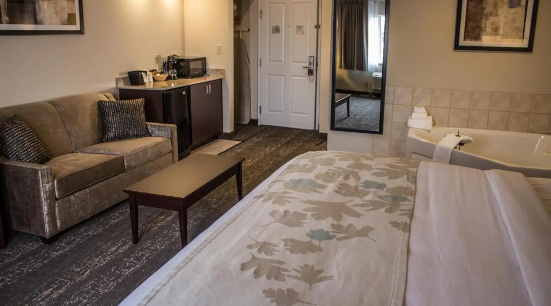 Comfortable Accommodations: Cobblestone Suites - Oshkosh in Oshkosh offers comfortable rooms with air-conditioning, kitchenettes, and free WiFi. Each room includes a tea and coffee maker, refrigerator, microwave, and free toiletries. Facilities and Services: Guests can enjoy a fitness center, bar, and swimming pool. Additional amenities include a elevator, 24-hour front desk, minimarket, business area, outdoor seating, picnic area, and games room. Free on-site private parking is available. Dining Options: A continental buffet breakfast is served daily, featuring warm dishes, fresh pastries, fruits, and juice. Location and Attractions: Located 20 mi from Outagamie County Regional Airport, the hotel is near EAA AirVenture Museum (1.9 mi), University of Wisconsin-Oshkosh (4.3 mi), and Oshkosh Public Museum (5 mi). The well-fitted kitchenette features a stovetop, a refrigerator, a microwave and a tea and coffee maker. The quadruple room offers air conditioning. The unit offers 2 beds.