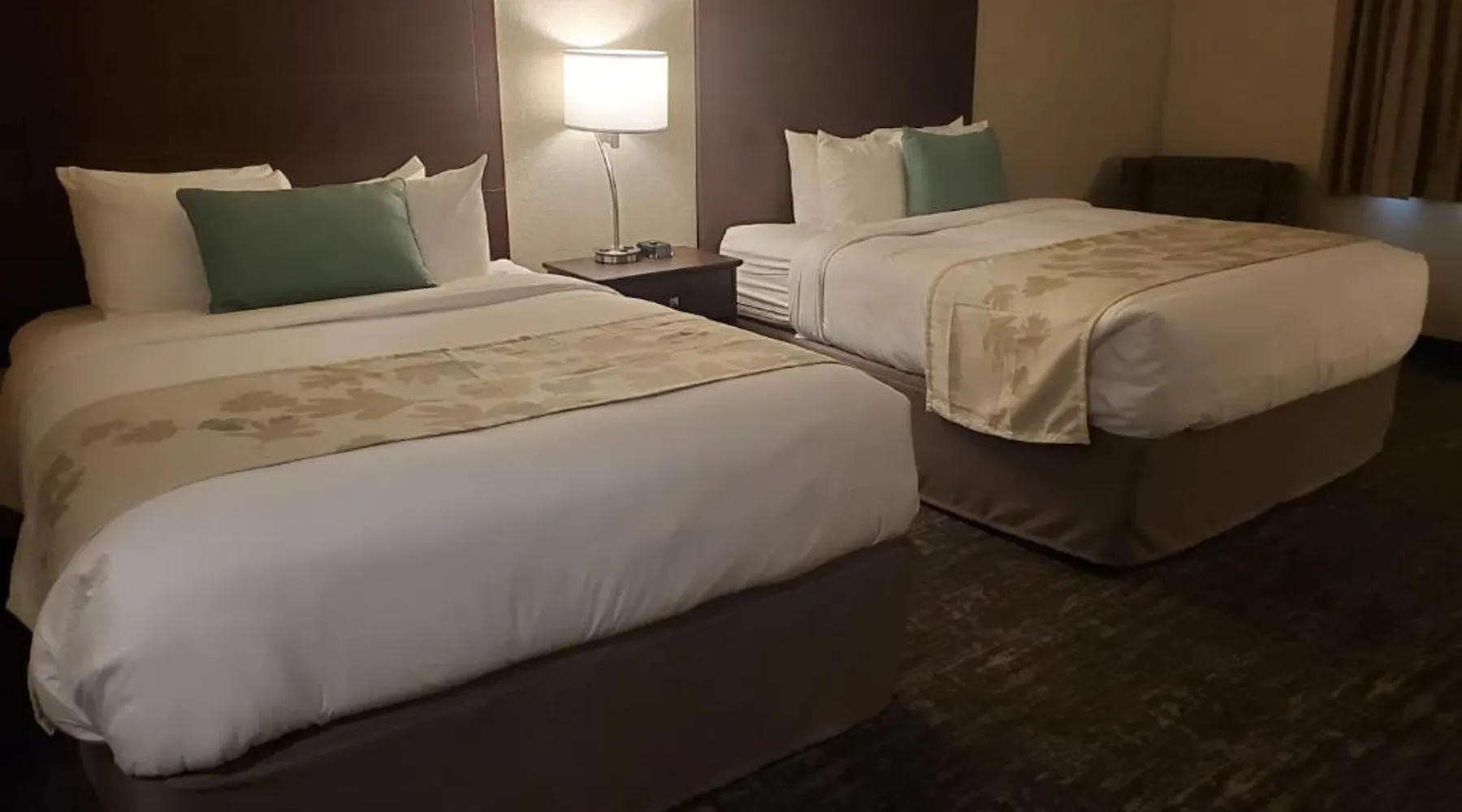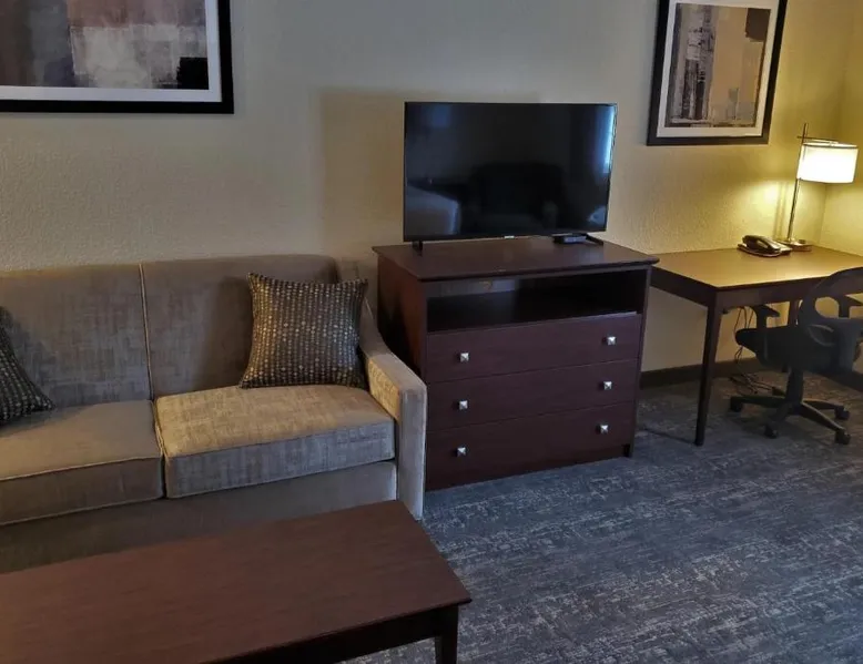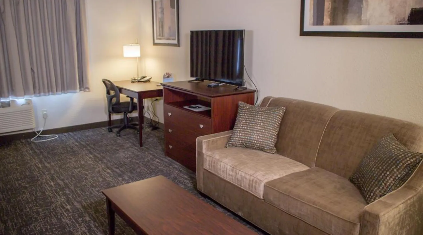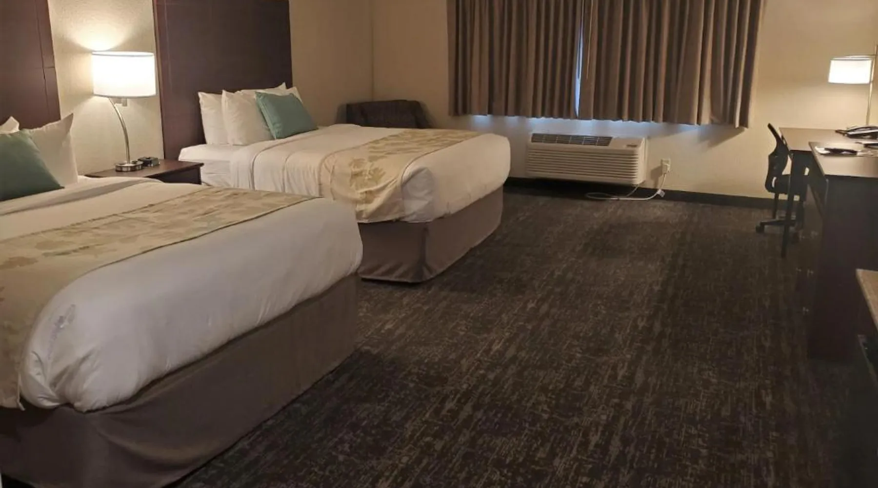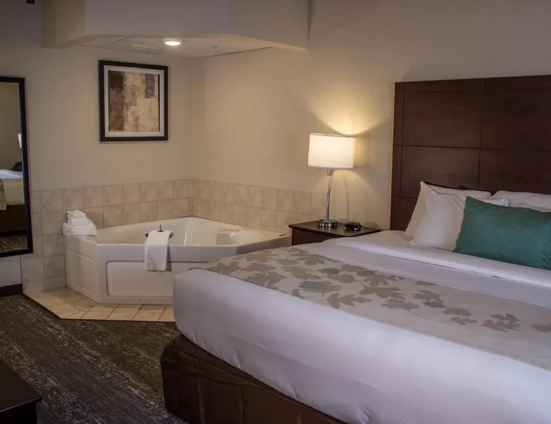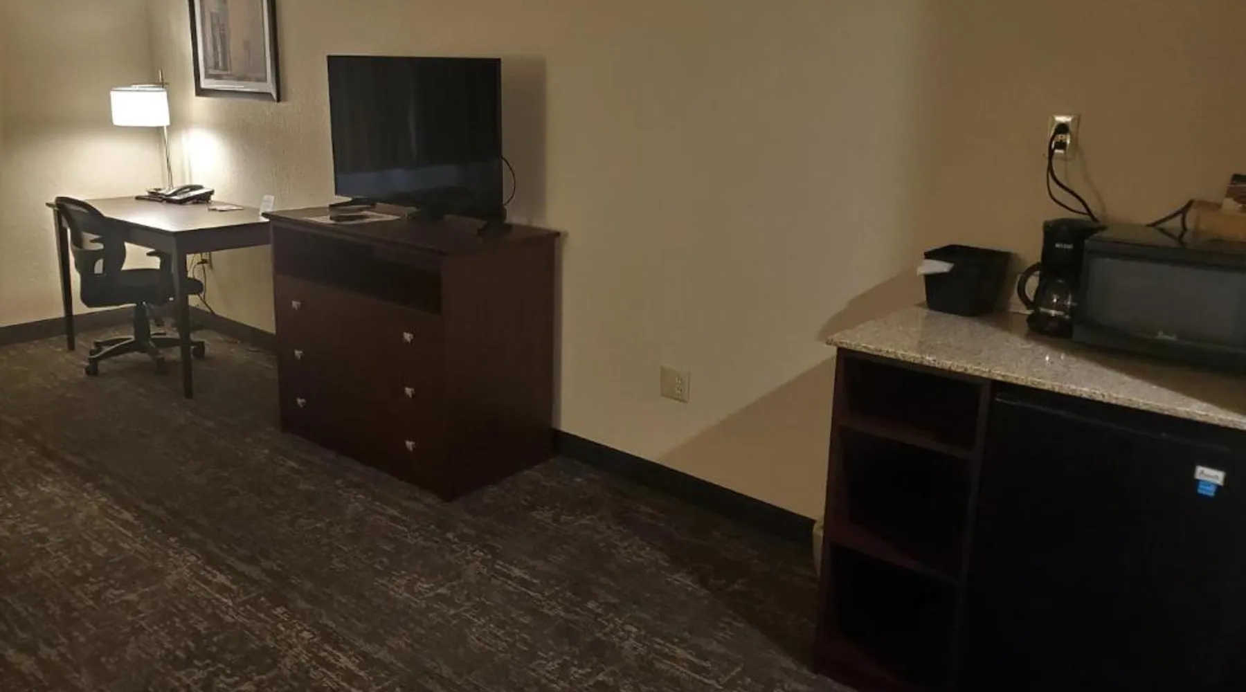 Comfortable Accommodations: Cobblestone Suites - Oshkosh in Oshkosh offers comfortable rooms with air-conditioning, kitchenettes, and free WiFi. Each room includes a tea and coffee maker, refrigerator, microwave, and free toiletries. Facilities and Services: Guests can enjoy a fitness center, bar, and swimming pool. Additional amenities include a elevator, 24-hour front desk, minimarket, business area, outdoor seating, picnic area, and games room. Free on-site private parking is available. Dining Options: A continental buffet breakfast is served daily, featuring warm dishes, fresh pastries, fruits, and juice. Location and Attractions: Located 20 mi from Outagamie County Regional Airport, the hotel is near EAA AirVenture Museum (1.9 mi), University of Wisconsin-Oshkosh (4.3 mi), and Oshkosh Public Museum (5 mi). The well-fitted kitchenette features a stovetop, a refrigerator, a microwave and a tea and coffee maker. The quadruple room offers air conditioning. The unit offers 2 beds.