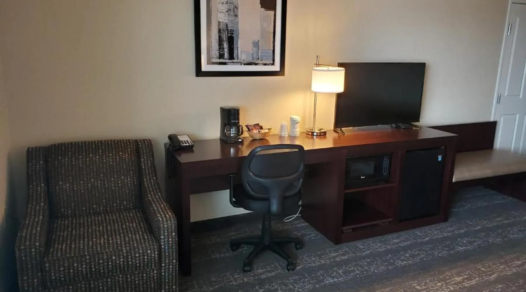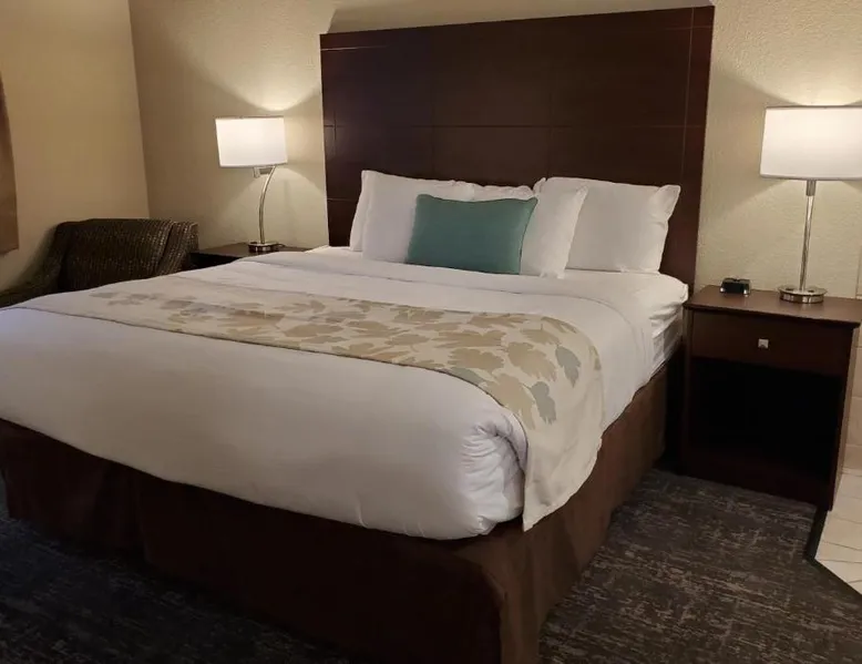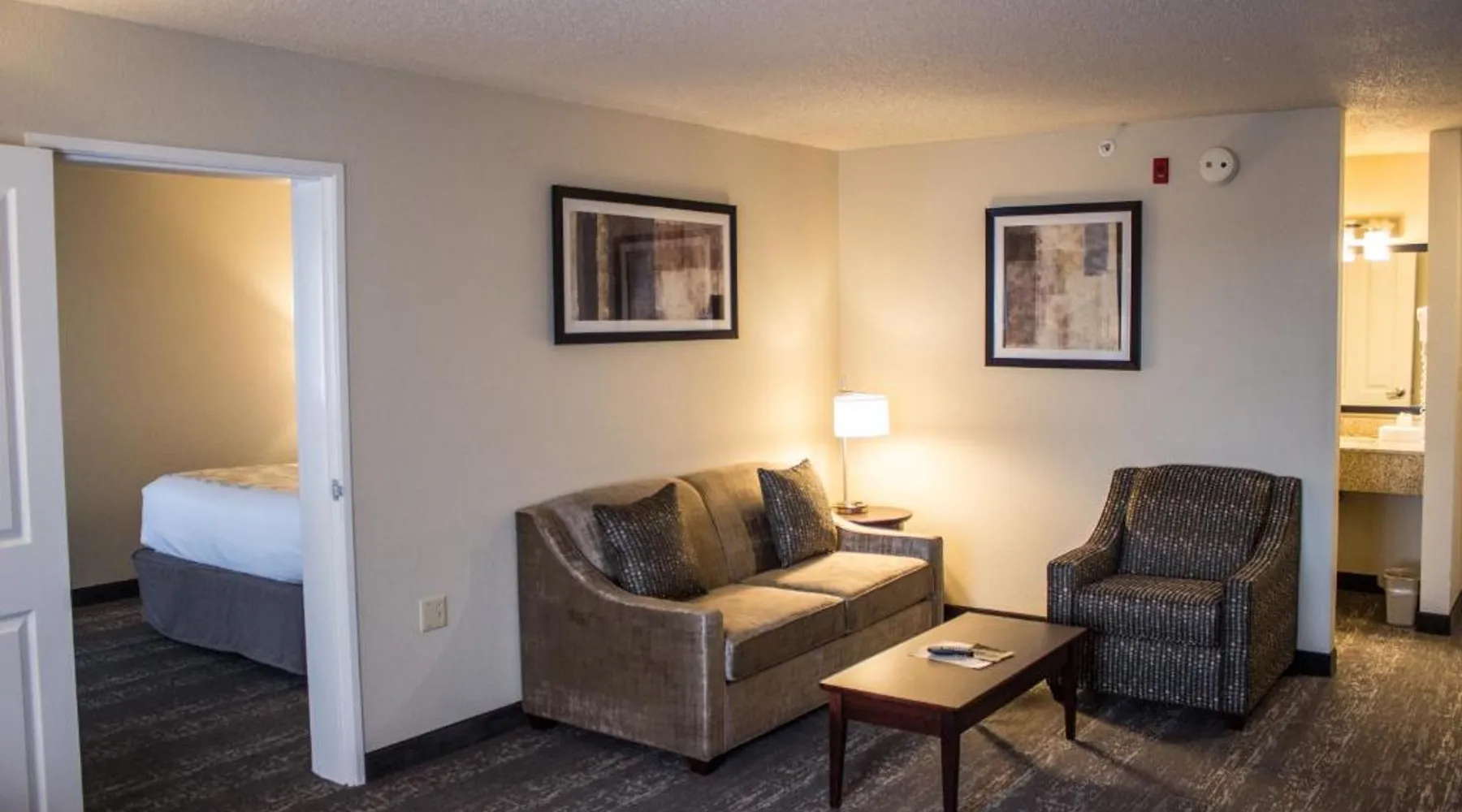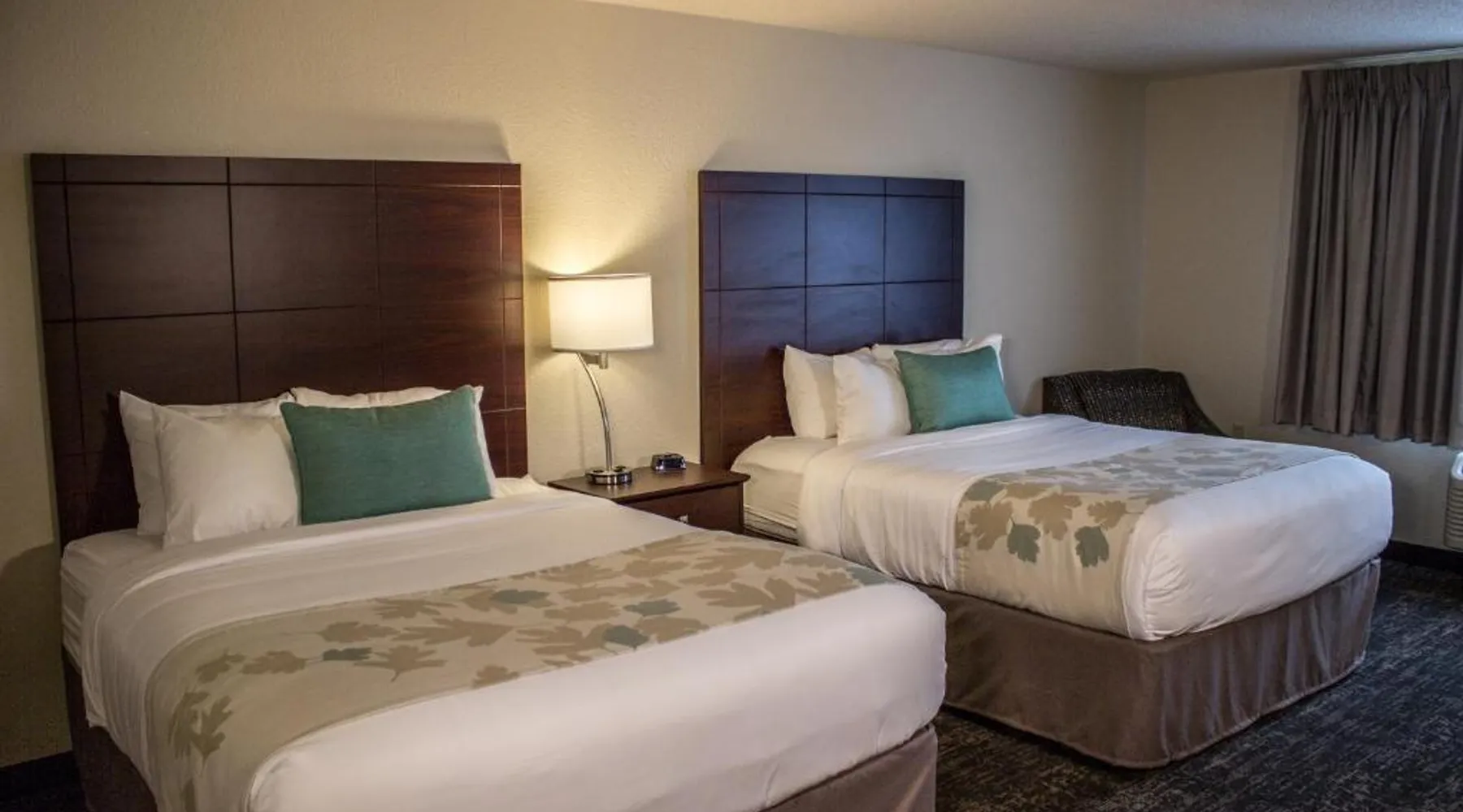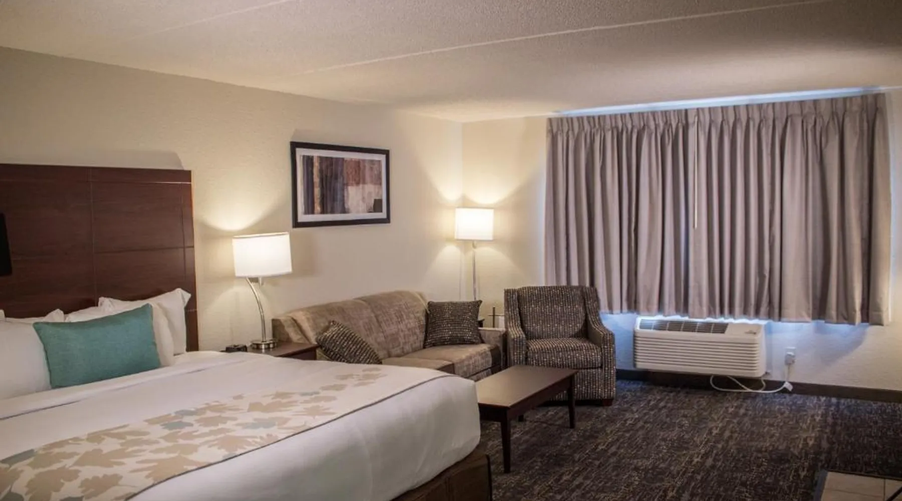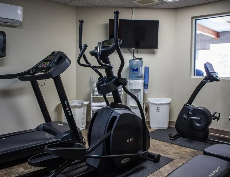 Comfortable Accommodations: Cobblestone Suites - Oshkosh in Oshkosh offers comfortable rooms with air-conditioning, kitchenettes, and free WiFi. Each room includes a tea and coffee maker, refrigerator, microwave, and free toiletries. Facilities and Services: Guests can enjoy a fitness center, bar, and swimming pool. Additional amenities include a elevator, 24-hour front desk, minimarket, business area, outdoor seating, picnic area, and games room. Free on-site private parking is available. Dining Options: A continental buffet breakfast is served daily, featuring warm dishes, fresh pastries, fruits, and juice. Location and Attractions: Located 20 mi from Outagamie County Regional Airport, the hotel is near EAA AirVenture Museum (1.9 mi), University of Wisconsin-Oshkosh (4.3 mi), and Oshkosh Public Museum (5 mi). The well-fitted kitchenette features a stovetop, a refrigerator, a microwave and a tea and coffee maker. The quadruple room offers air conditioning. The unit offers 2 beds.