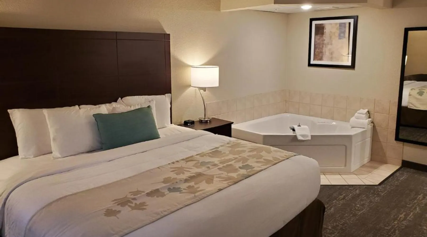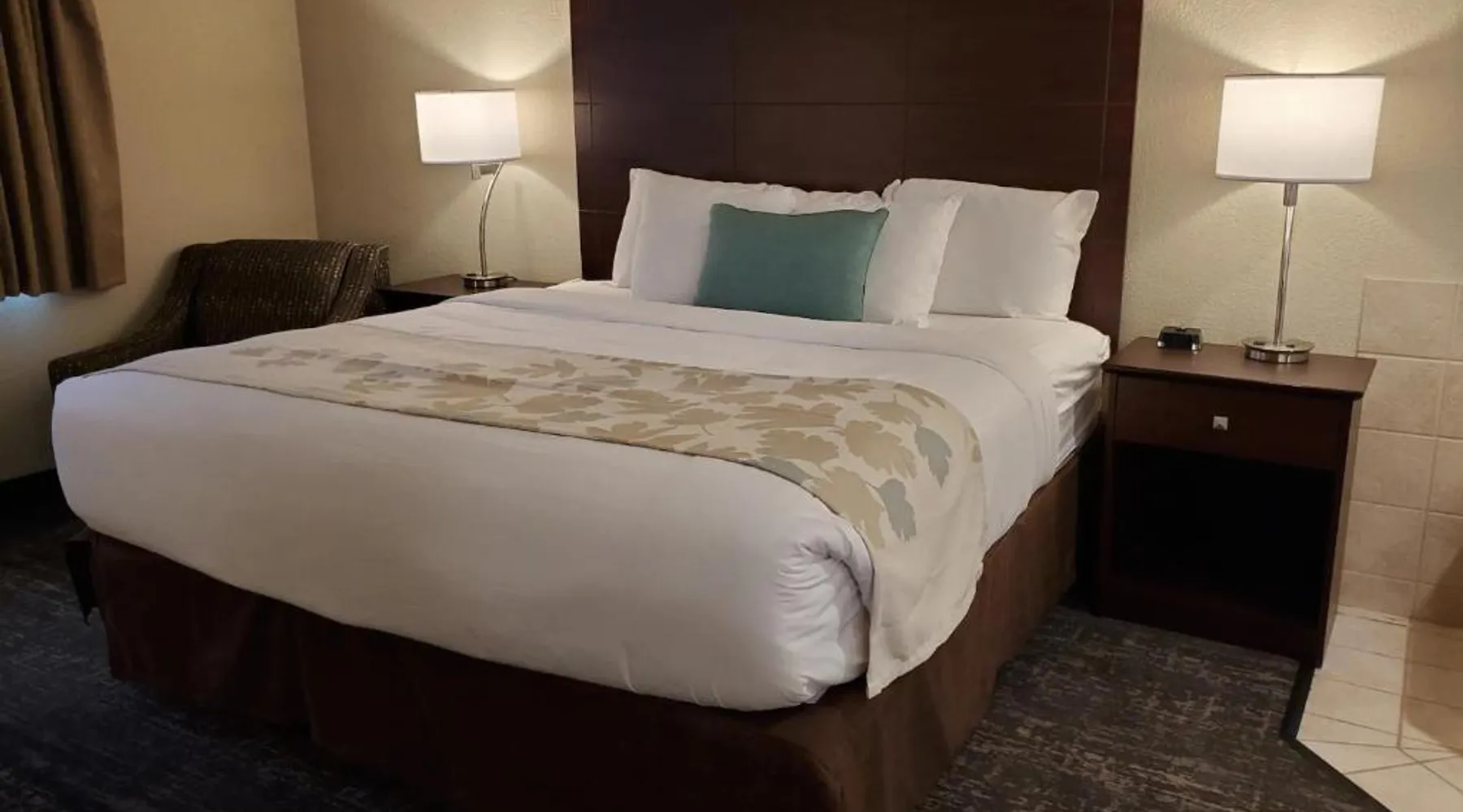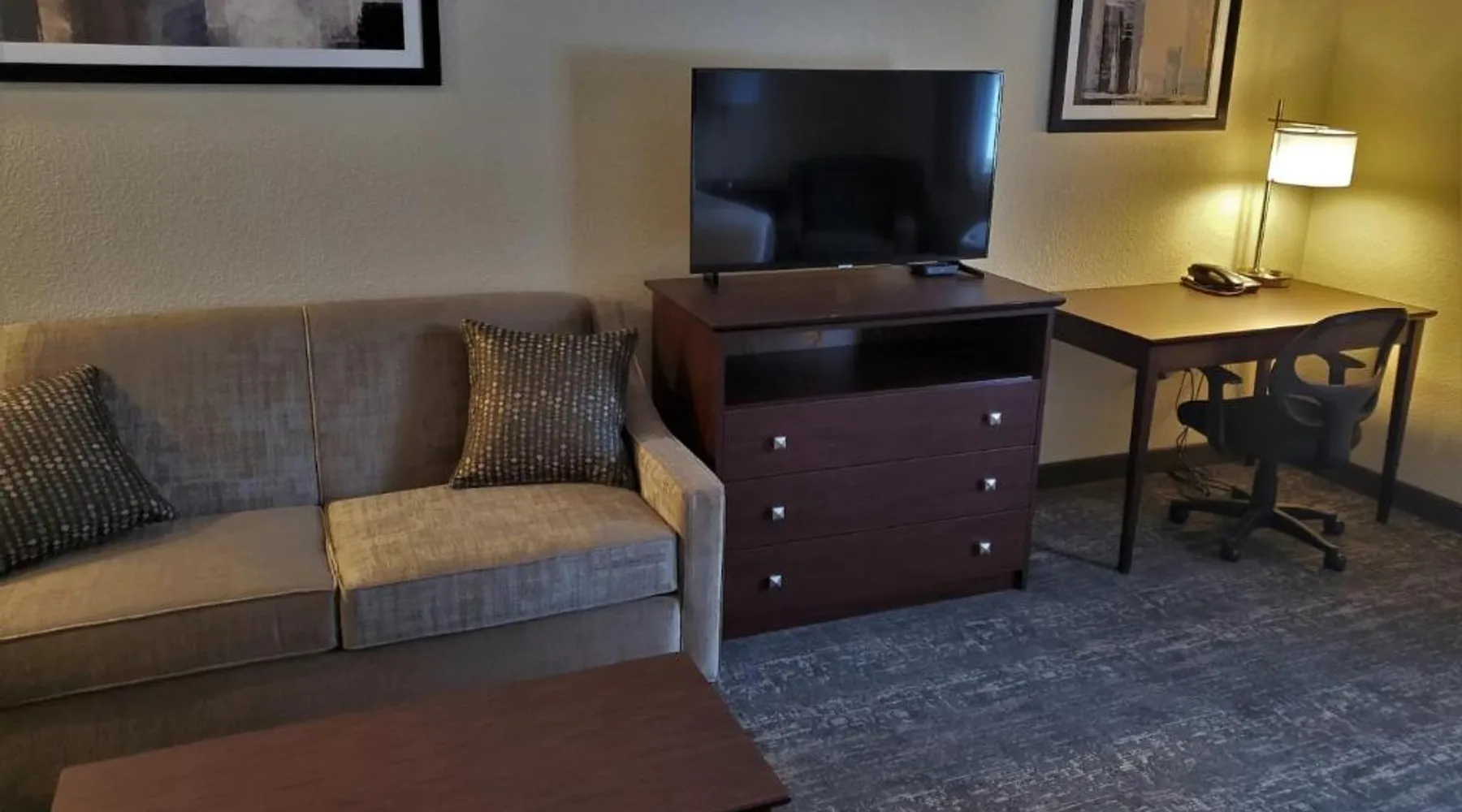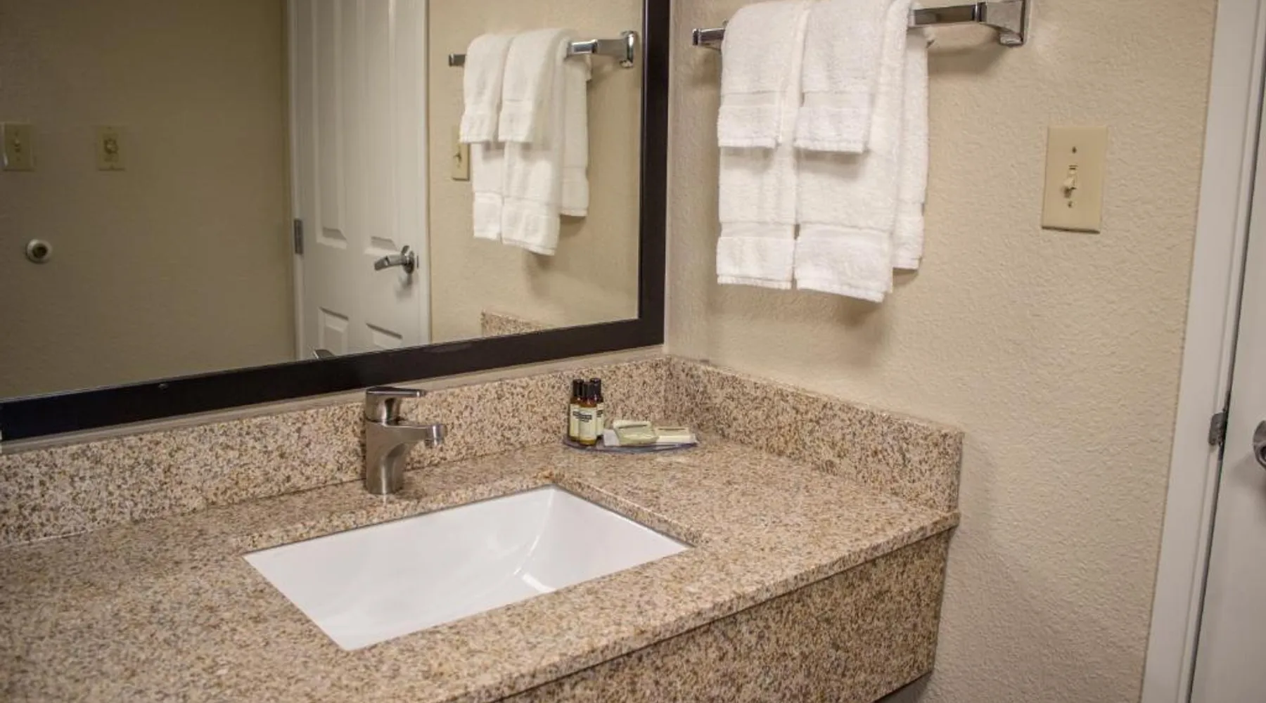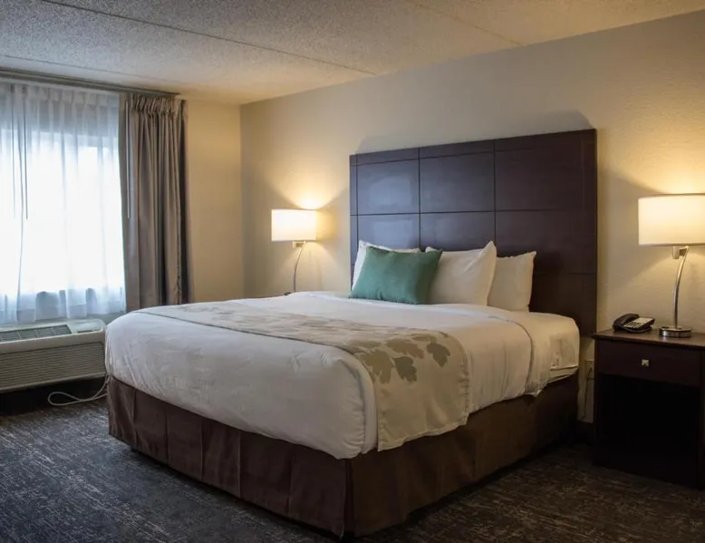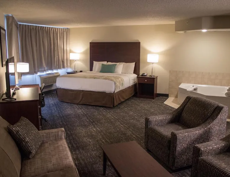 Comfortable Accommodations: Cobblestone Suites - Oshkosh in Oshkosh offers comfortable rooms with air-conditioning, kitchenettes, and free WiFi. Each room includes a tea and coffee maker, refrigerator, microwave, and free toiletries. Facilities and Services: Guests can enjoy a fitness center, bar, and swimming pool. Additional amenities include a elevator, 24-hour front desk, minimarket, business area, outdoor seating, picnic area, and games room. Free on-site private parking is available. Dining Options: A continental buffet breakfast is served daily, featuring warm dishes, fresh pastries, fruits, and juice. Location and Attractions: Located 20 mi from Outagamie County Regional Airport, the hotel is near EAA AirVenture Museum (1.9 mi), University of Wisconsin-Oshkosh (4.3 mi), and Oshkosh Public Museum (5 mi). The well-fitted kitchenette features a stovetop, a refrigerator, a microwave and a tea and coffee maker. The quadruple room offers air conditioning. The unit offers 2 beds.