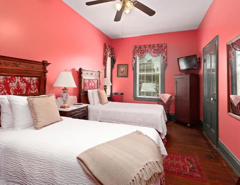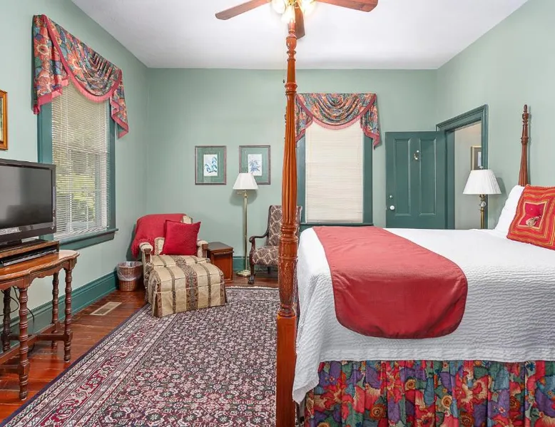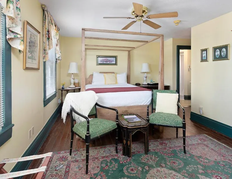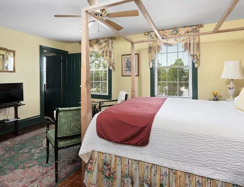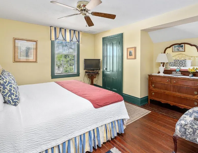 Historic Setting: Spencer House Inn in Saint Marys offers a 4-star bed and breakfast experience within a historic building. Guests enjoy a garden and terrace, complemented by free WiFi throughout the property. Comfortable Accommodations: Rooms feature air-conditioning, private bathrooms, and parquet floors. Additional amenities include balconies with garden or river views, walk-in showers, and work desks. Exceptional Service: The property provides private check-in and check-out, a lounge, and concierge service. Guests appreciate the attentive staff and excellent breakfast offerings. Local Attractions: Located 28 mi from Jacksonville International Airport, the inn is near Catty Shack Ranch Wildlife Sanctuary (29 mi) and Amelia Island Historic District (30 mi). Hiking and cycling activities are available. A flat-screen TV with a DVD player is featured in this air-conditioned, deluxe room. An private bathroom is also included.