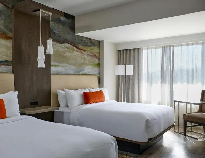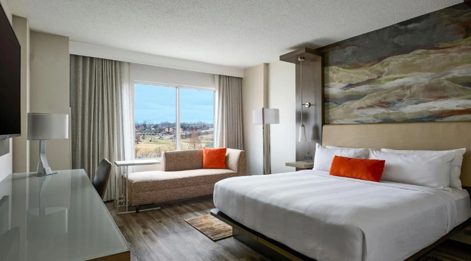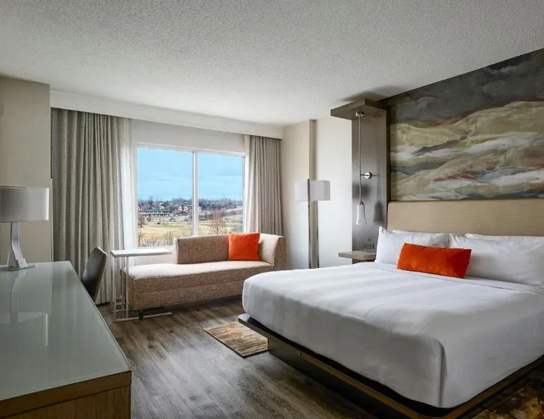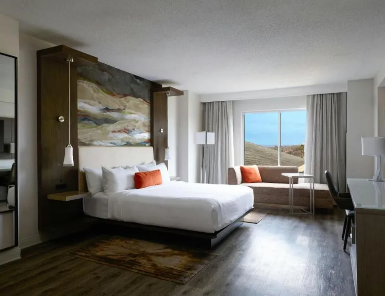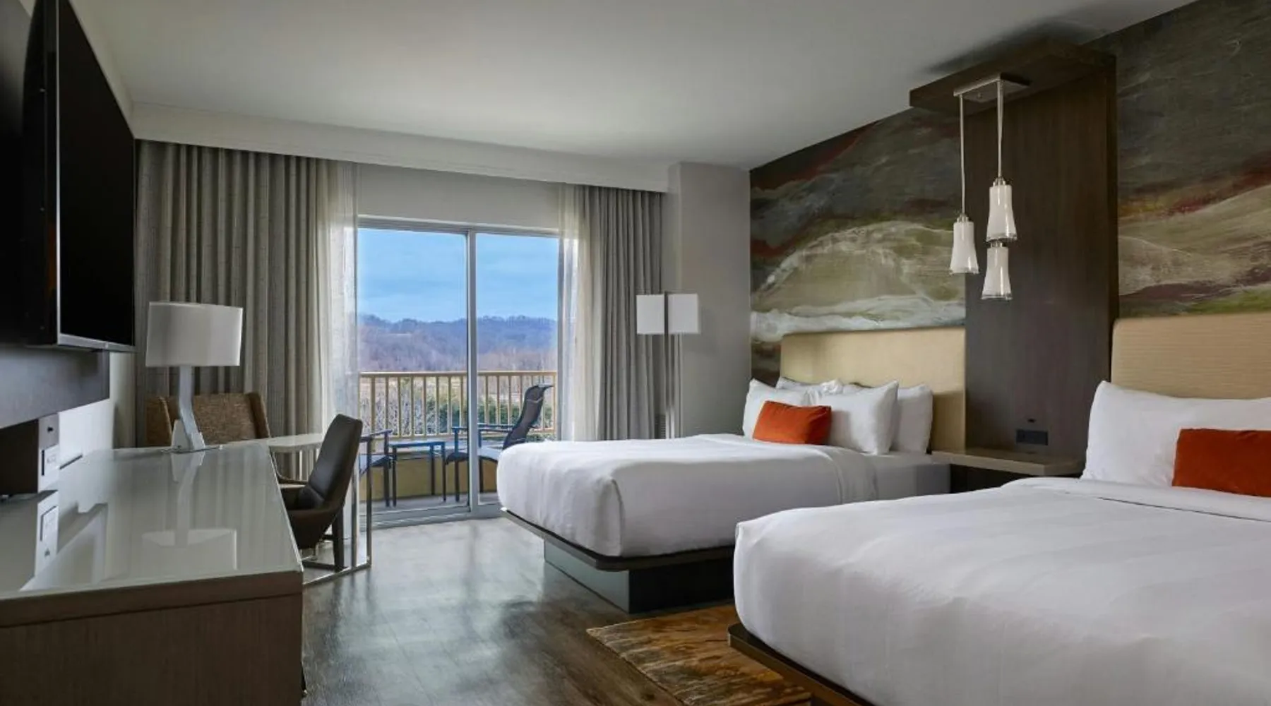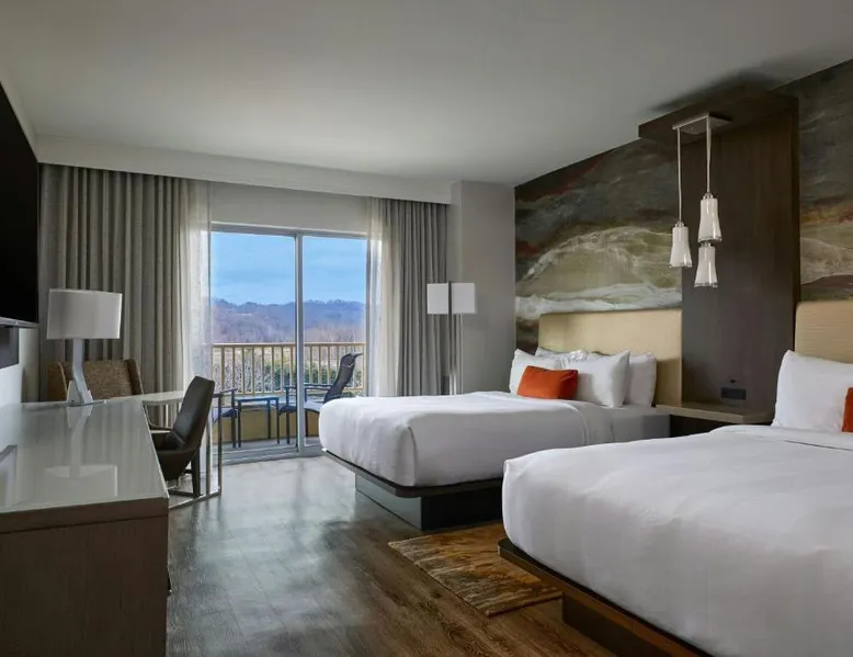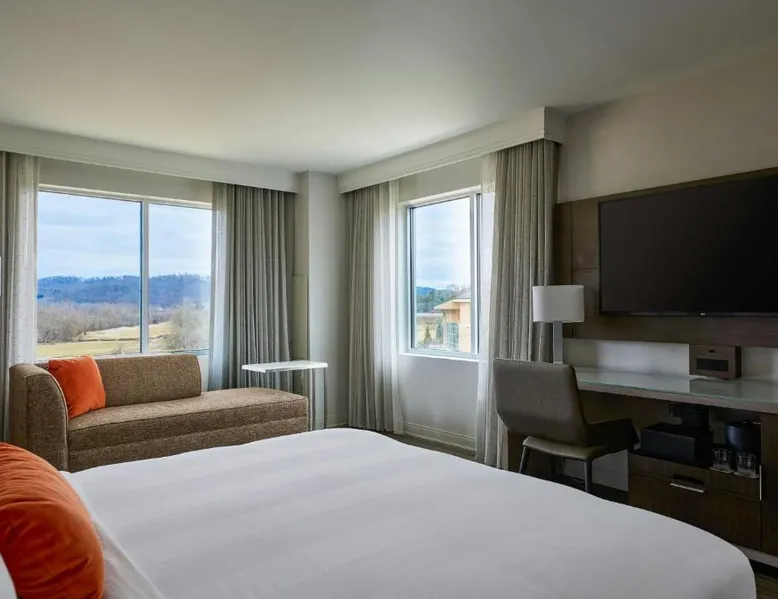This hotel is 25 minutes from Tri-Cities Regional Airport and downtown Johnson City, Tennessee. It features an on-site restaurant, indoor pool and hot tub. A shuttle to the airport is available. MeadowView Marriott Conference Resort and Convention Center guest rooms include a flat-screen TV, refrigerator and coffee maker. They are furnished with a work table and seating area. A hairdryer and ironing facilities are also provided. The facilities of this Kingsport hotel include a gym and business center. Safety deposit boxes, laundry services and concierge services are available. The Bays Mountain Park and Planetarium is 20 minutes from MeadowView Marriott Conference Resort and Convention Center. This room features a flat-screen cable TV, a refrigerator, and tea- and coffee-making facilities.