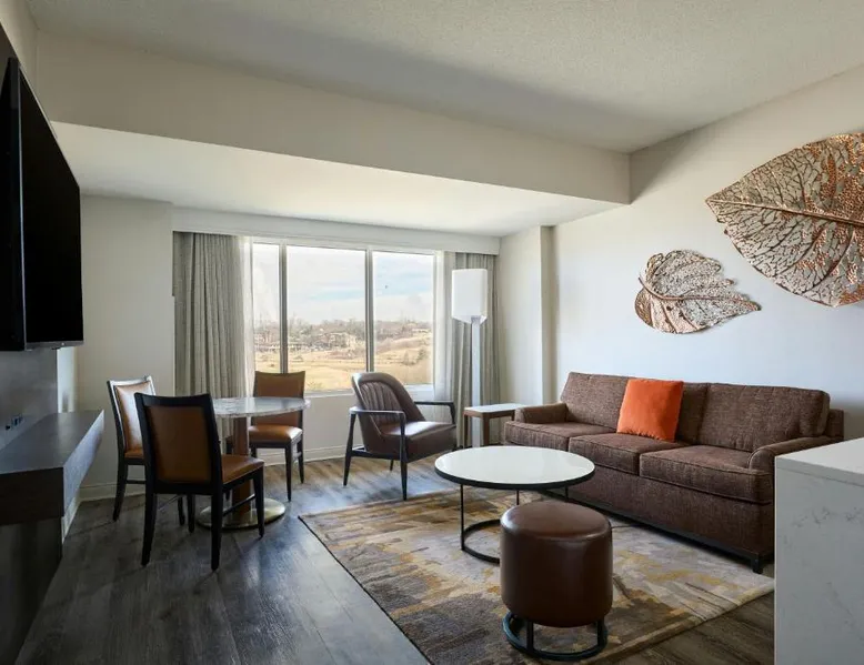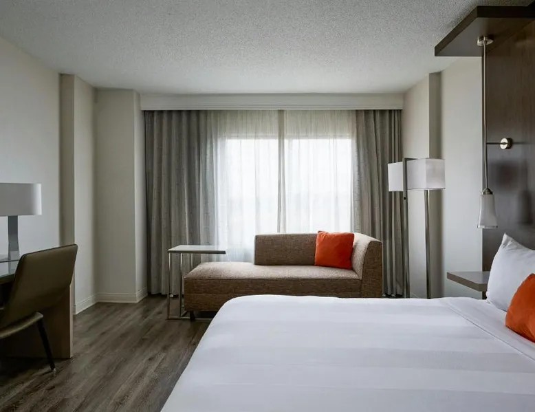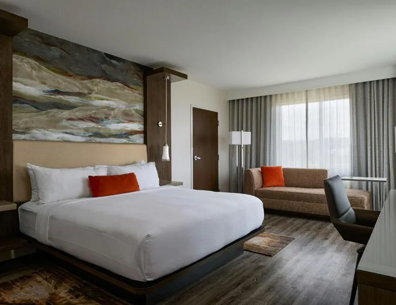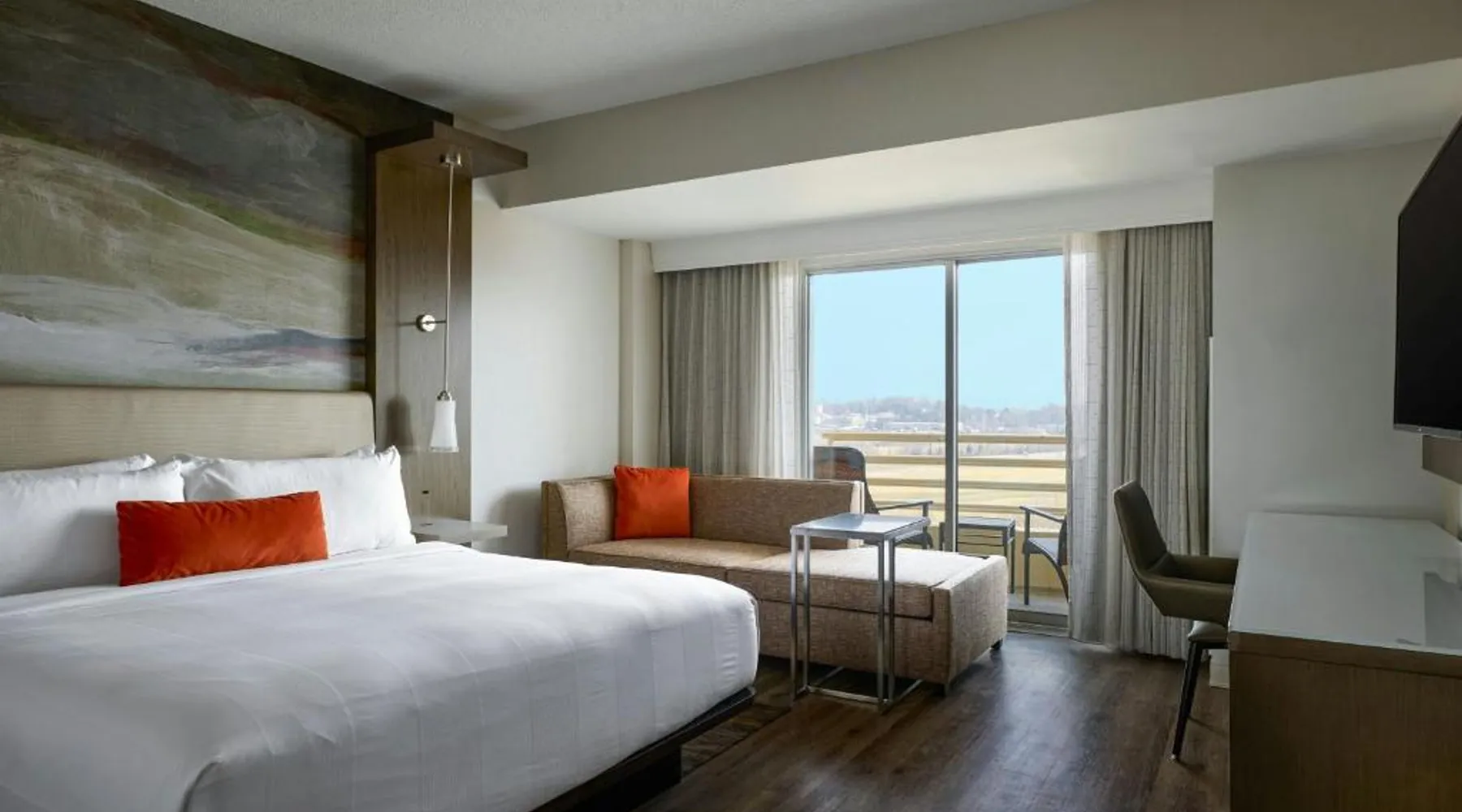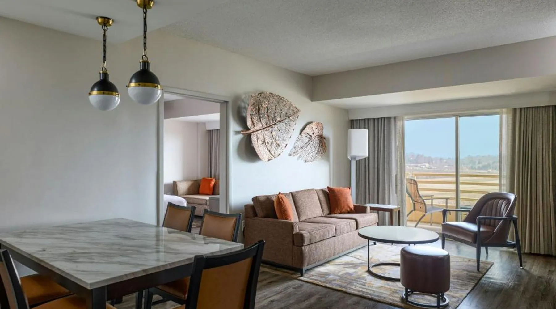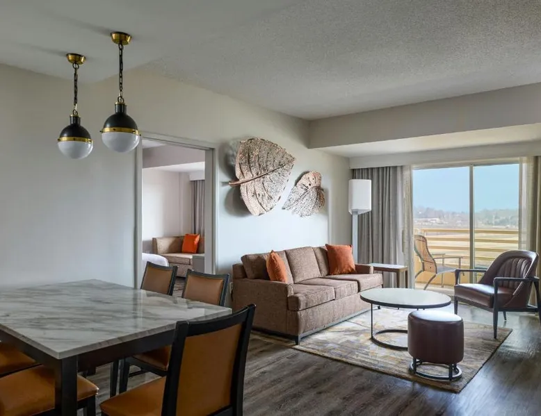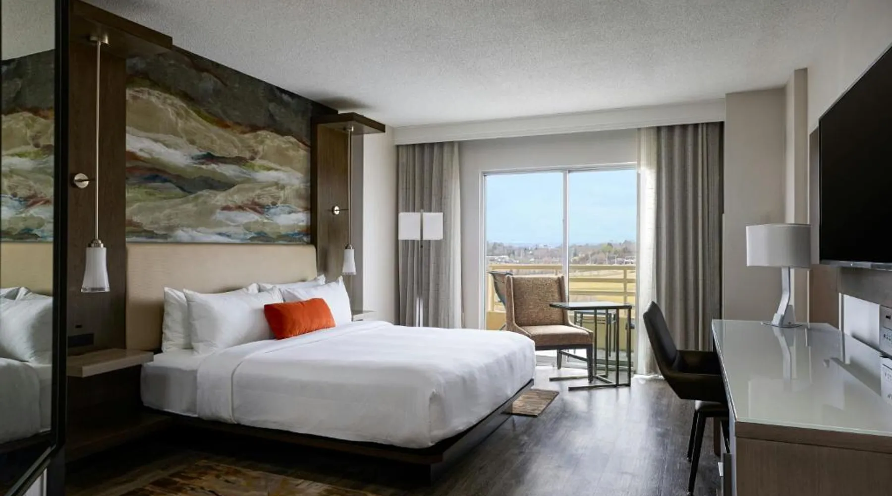 This hotel is 25 minutes from Tri-Cities Regional Airport and downtown Johnson City, Tennessee. It features an on-site restaurant, indoor pool and hot tub. A shuttle to the airport is available. MeadowView Marriott Conference Resort and Convention Center guest rooms include a flat-screen TV, refrigerator and coffee maker. They are furnished with a work table and seating area. A hairdryer and ironing facilities are also provided. The facilities of this Kingsport hotel include a gym and business center. Safety deposit boxes, laundry services and concierge services are available. The Bays Mountain Park and Planetarium is 20 minutes from MeadowView Marriott Conference Resort and Convention Center. This room features a flat-screen cable TV, a refrigerator, and tea- and coffee-making facilities.