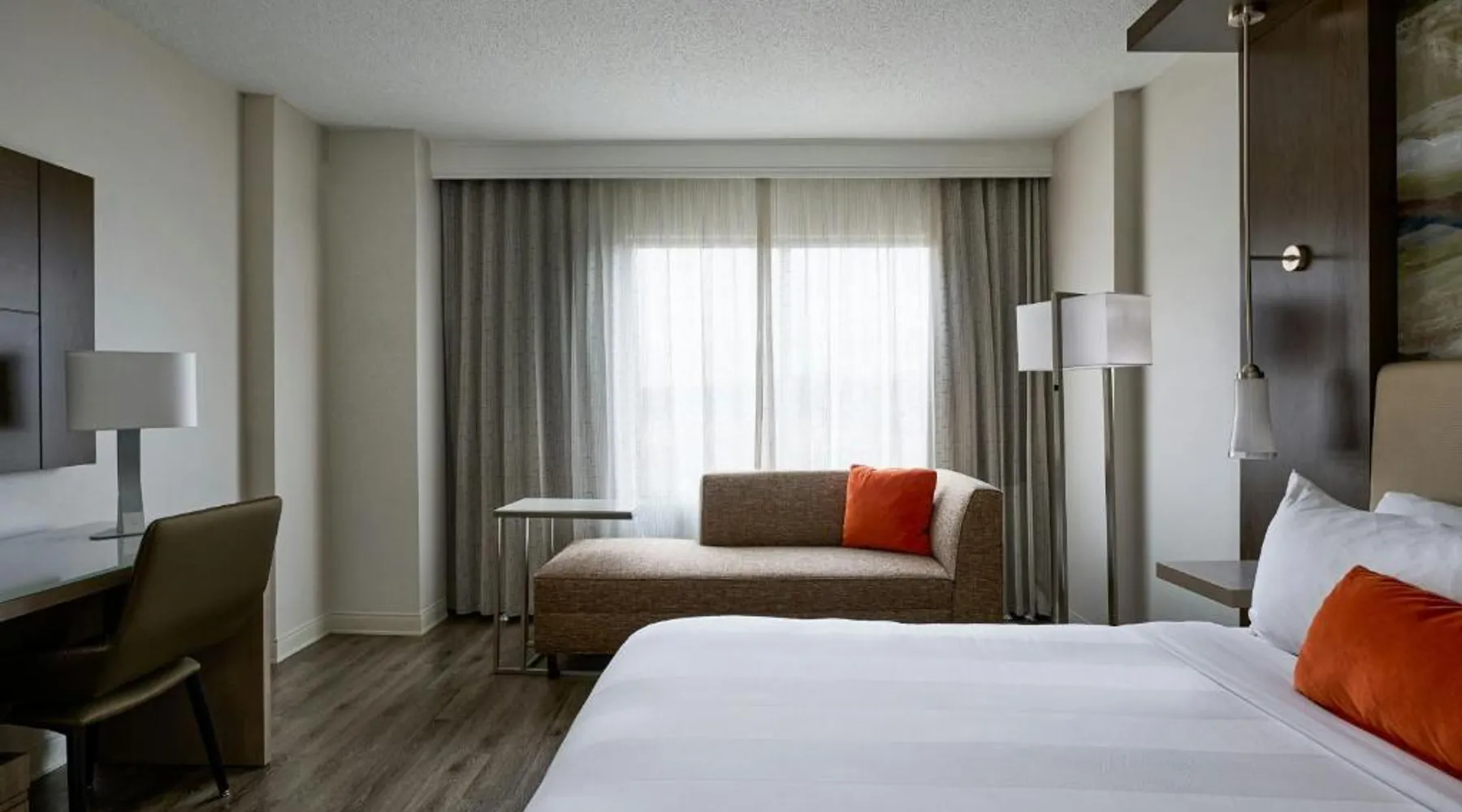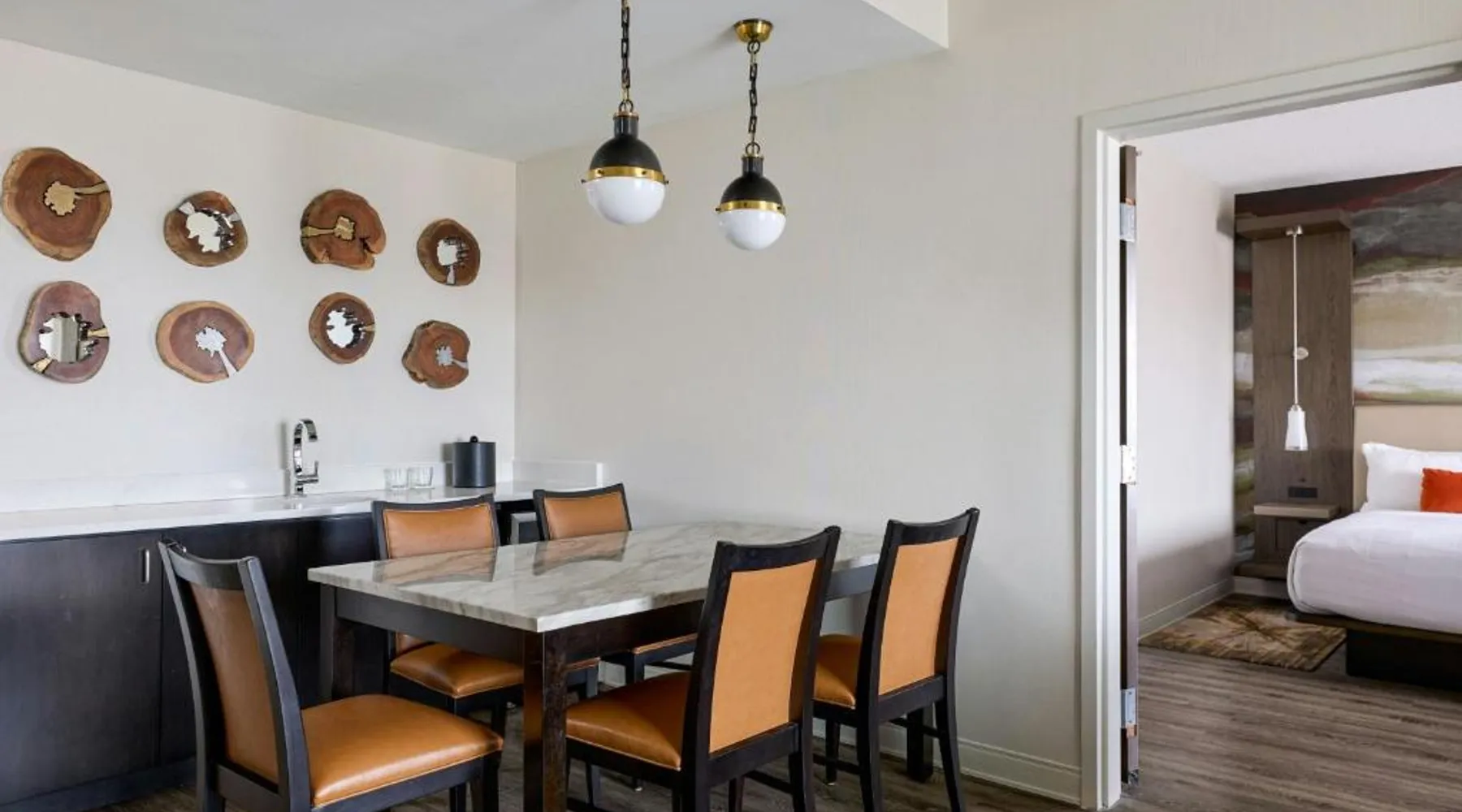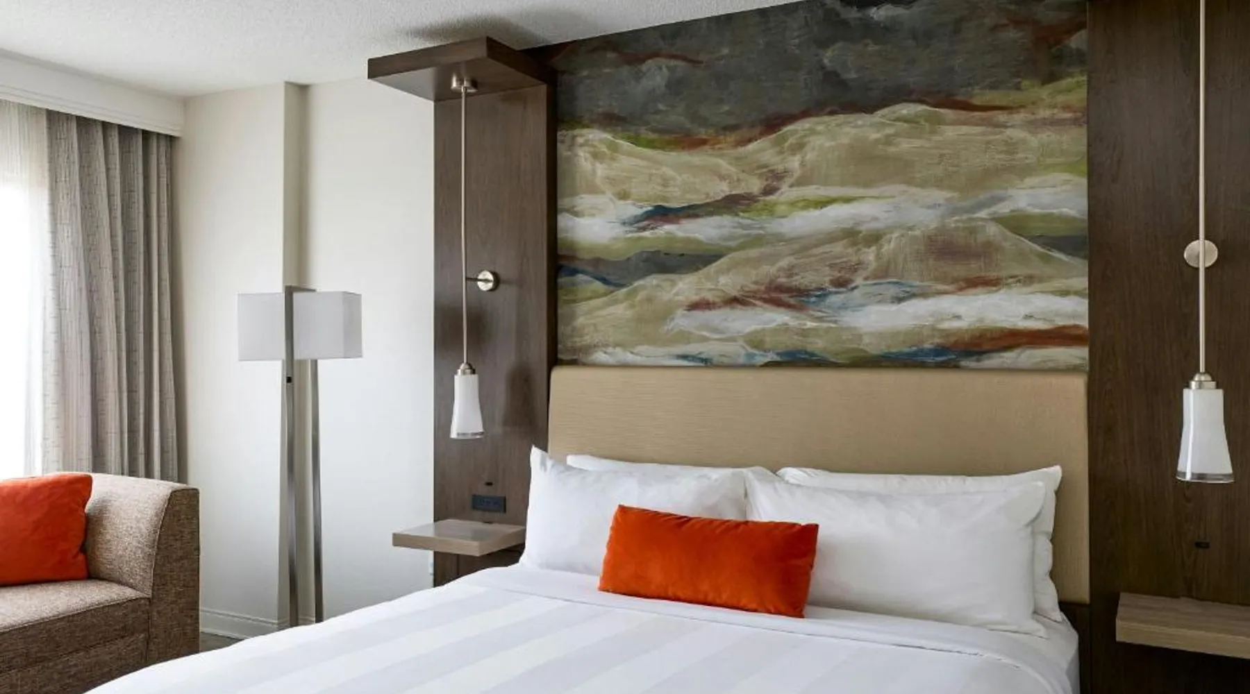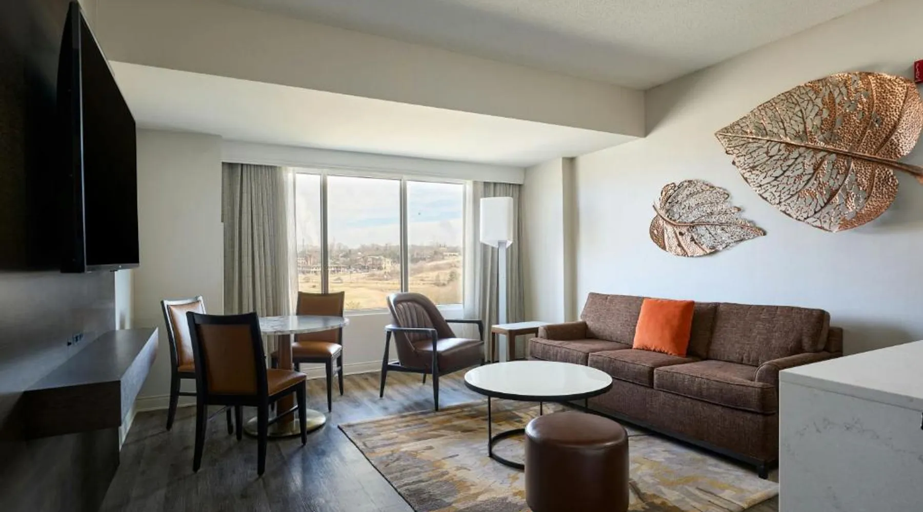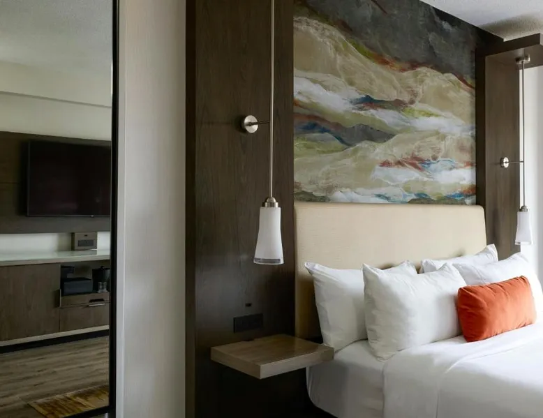 This hotel is 25 minutes from Tri-Cities Regional Airport and downtown Johnson City, Tennessee. It features an on-site restaurant, indoor pool and hot tub. A shuttle to the airport is available. MeadowView Marriott Conference Resort and Convention Center guest rooms include a flat-screen TV, refrigerator and coffee maker. They are furnished with a work table and seating area. A hairdryer and ironing facilities are also provided. The facilities of this Kingsport hotel include a gym and business center. Safety deposit boxes, laundry services and concierge services are available. The Bays Mountain Park and Planetarium is 20 minutes from MeadowView Marriott Conference Resort and Convention Center. This room features a flat-screen cable TV, a refrigerator, and tea- and coffee-making facilities.