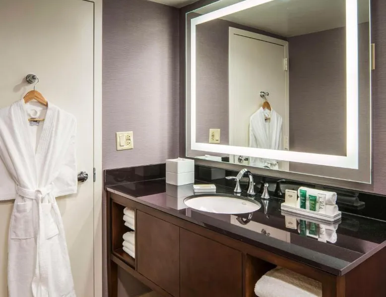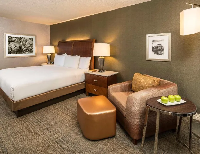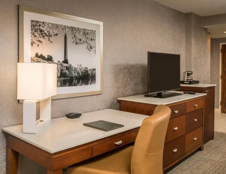 This Rockville, Maryland hotel is conveniently located close to motorway I-495 as well as a metro station is right outside the hotel main door around 164 feet away, and features exceptional rooms along with first-class amenities and services. The Hilton Washington D.C./Rockville Hotel is located within driving distance to some of the area's main attractions. The National Zoo and the White House are nearby. The Twinbrook Metro Station also allows guests to easily discover the surrounding area and sites. The hotel features state-of-the-art meeting and banquet facilities, complete with professional catering services. This room features a flat-screen TV with cable channels, a seating area, and a work desk.