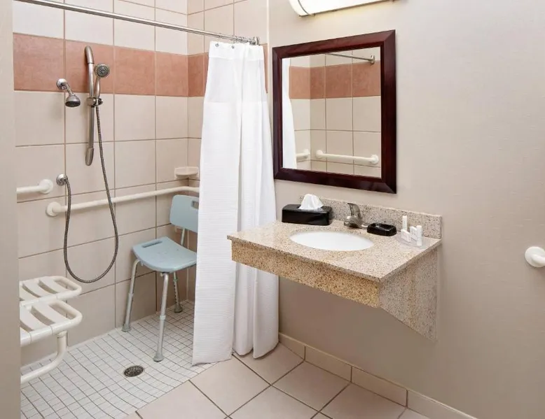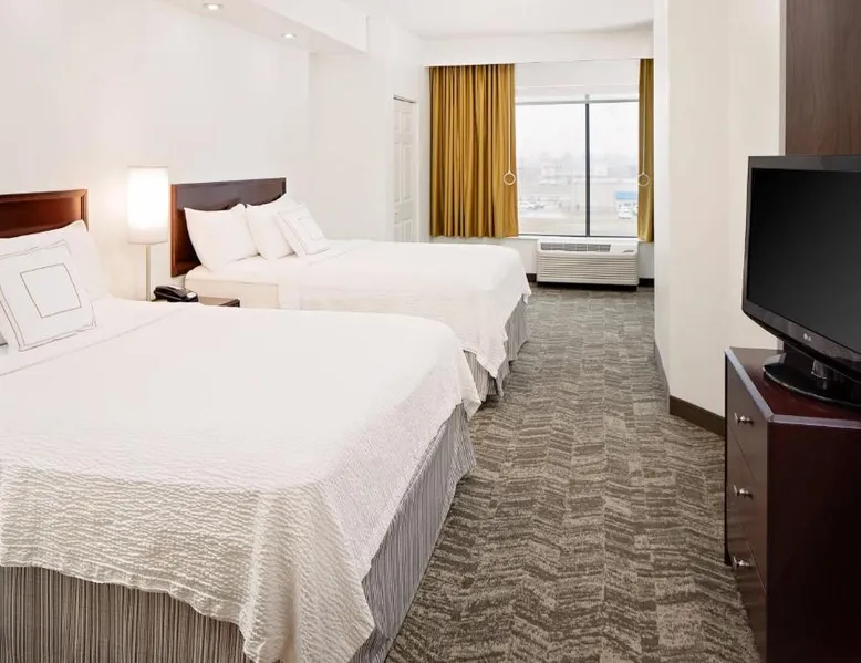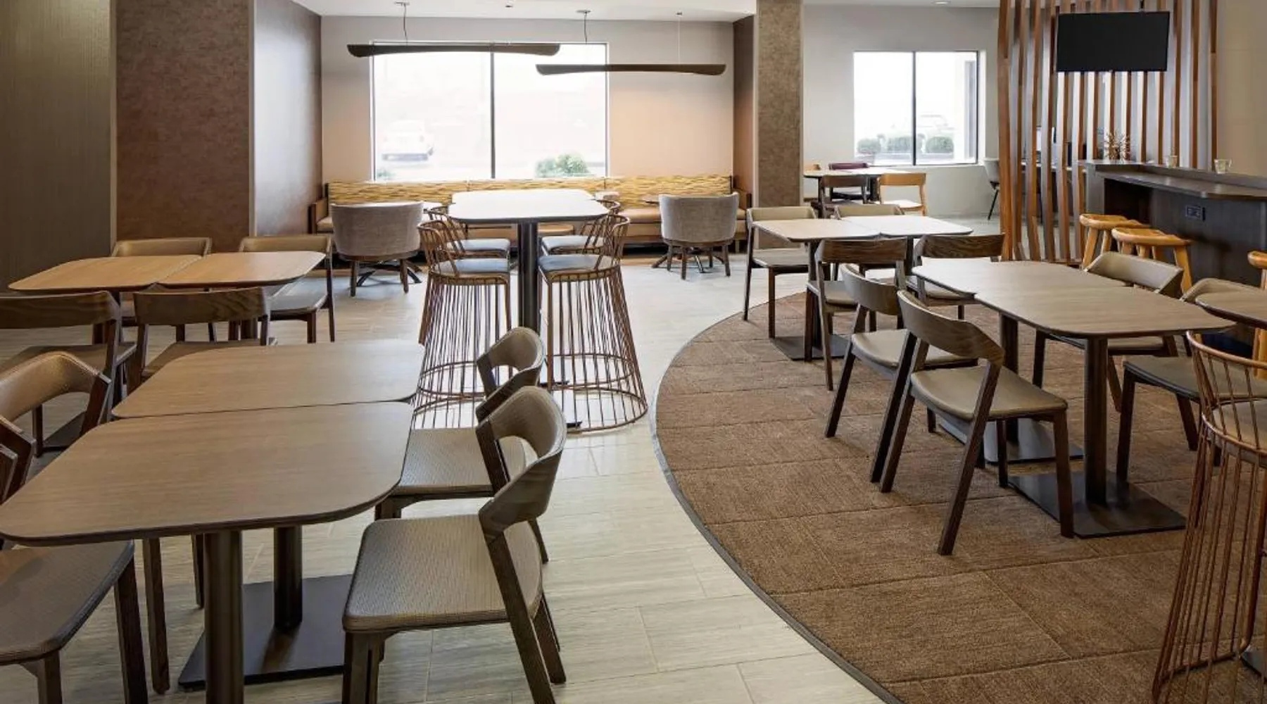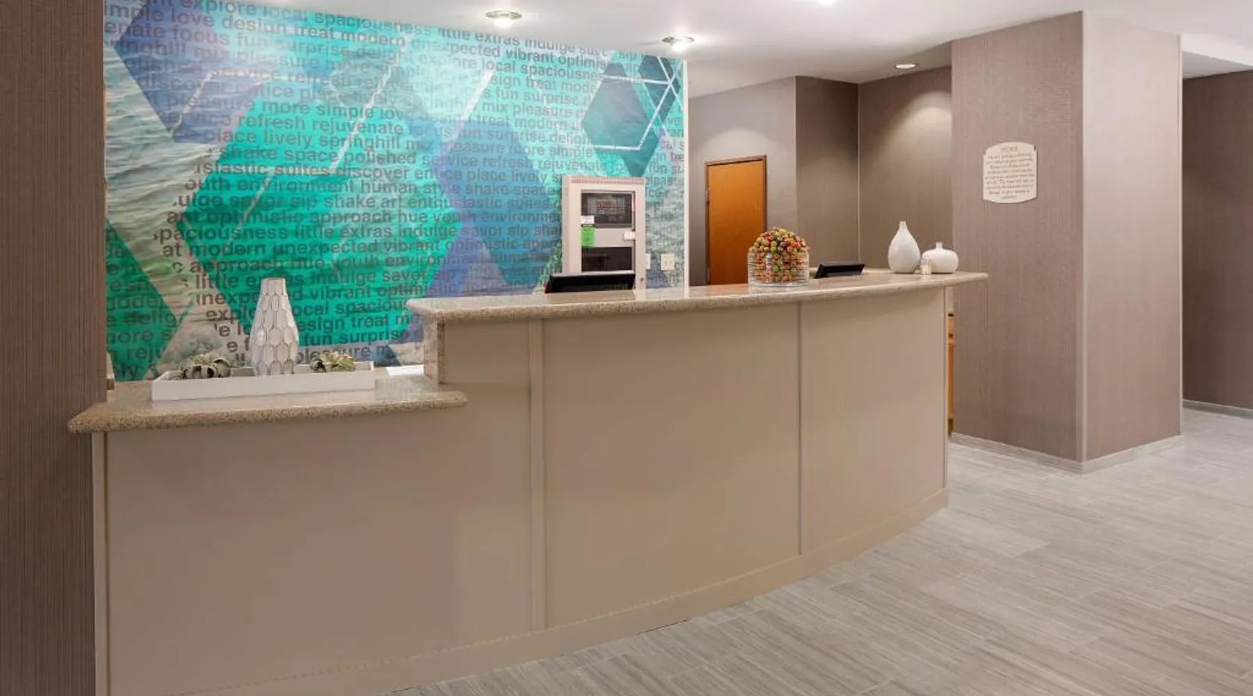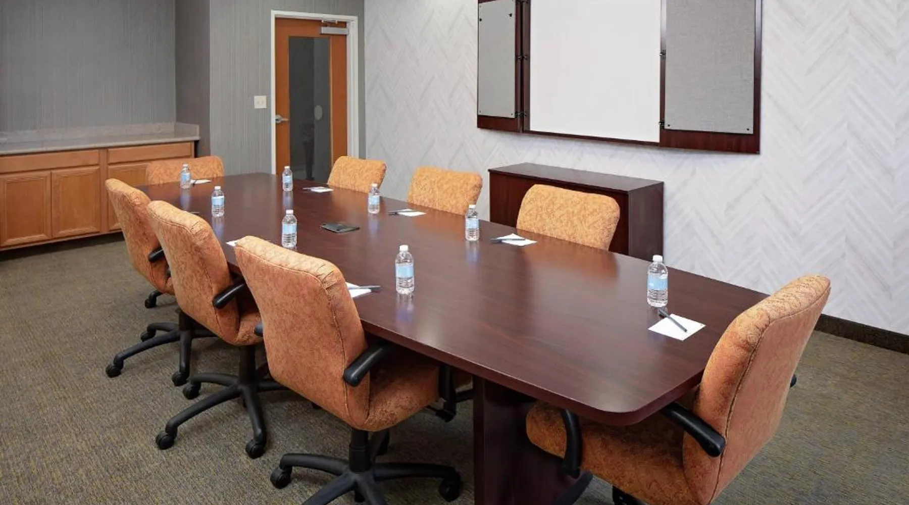 Comfortable Accommodations: SpringHill Suites by Marriott Ardmore in Ardmore offers family rooms with air-conditioning, private bathrooms, and modern amenities. Each room includes a work desk, refrigerator, and TV, ensuring a pleasant stay. Facilities and Services: Guests can enjoy a fitness center, 24-hour front desk, business area, and free on-site parking. The hotel provides a continental breakfast, a dining area, and a mini-bar for added convenience. Guest Satisfaction: Visitors appreciate the room cleanliness, the quality of the breakfast provided by the property, and the attentive staff and service support. A seating area with a flat-screen TV is featured in this room, A dining area, microwave, and refrigerator are provided.